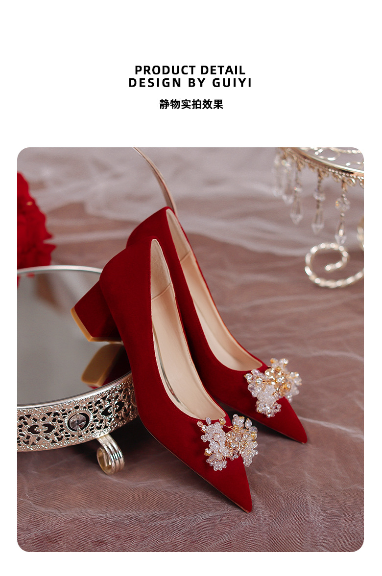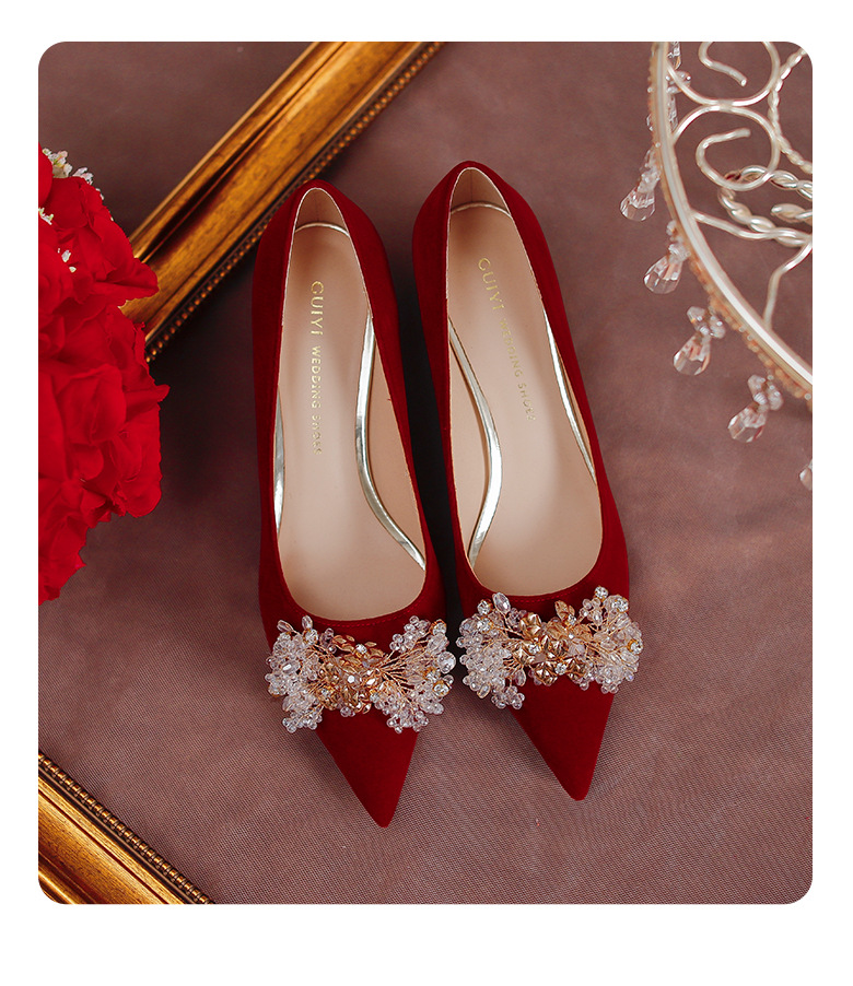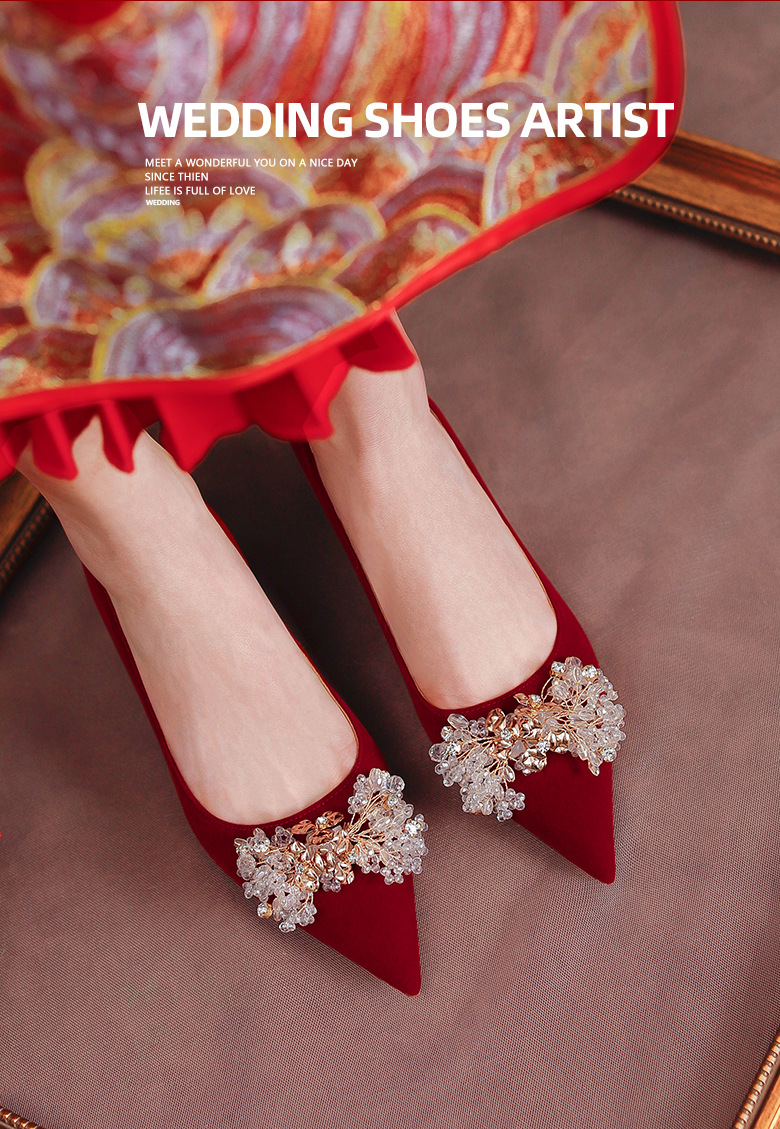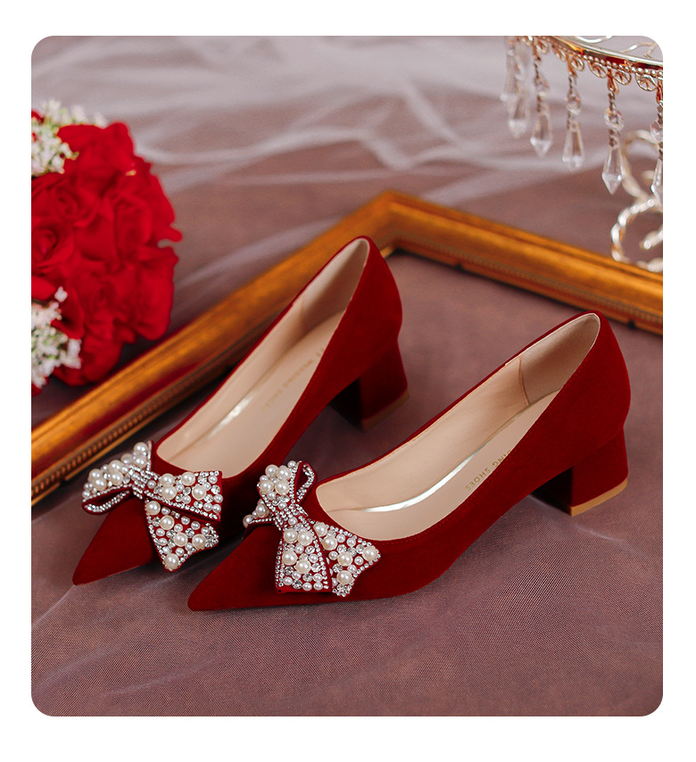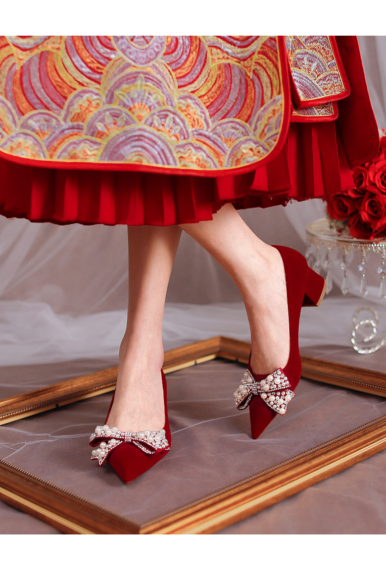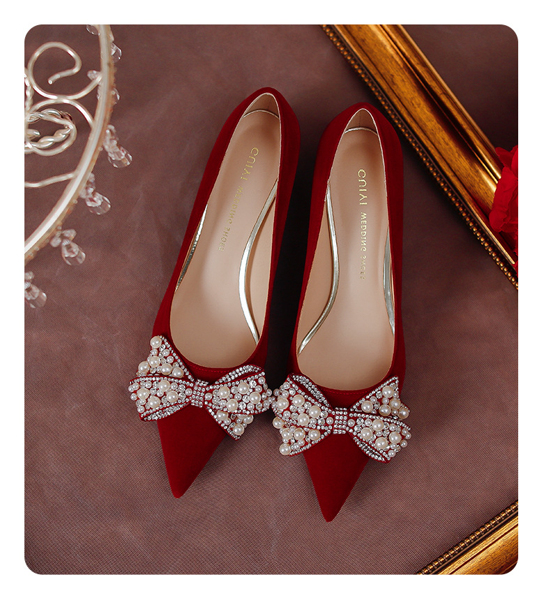 여성용 포인티드 토 하이힐 2025 가을 신상품 대형 사이즈 패셔너블한 얕은 입구의 큐빅 나비 리본 웨딩 슈즈 신부 여성화스토어 가기