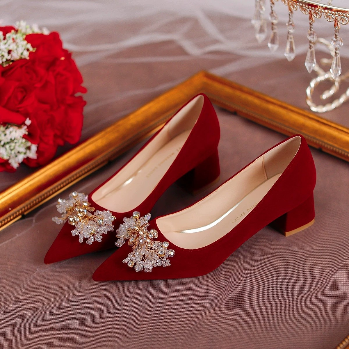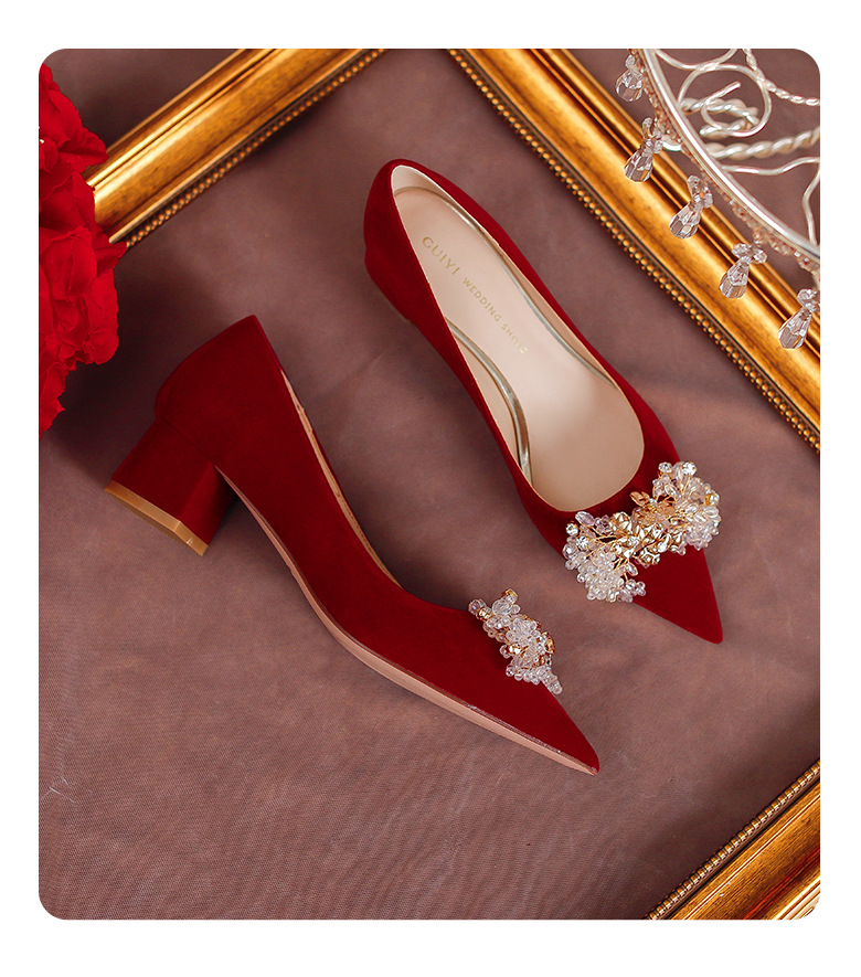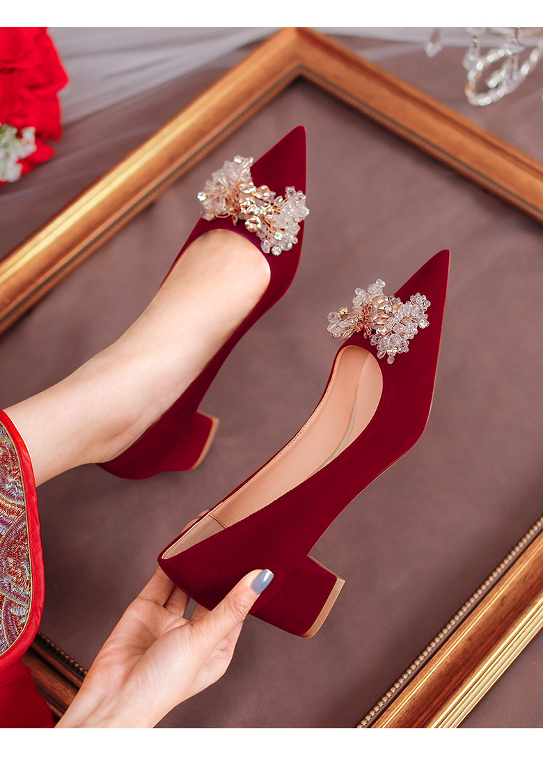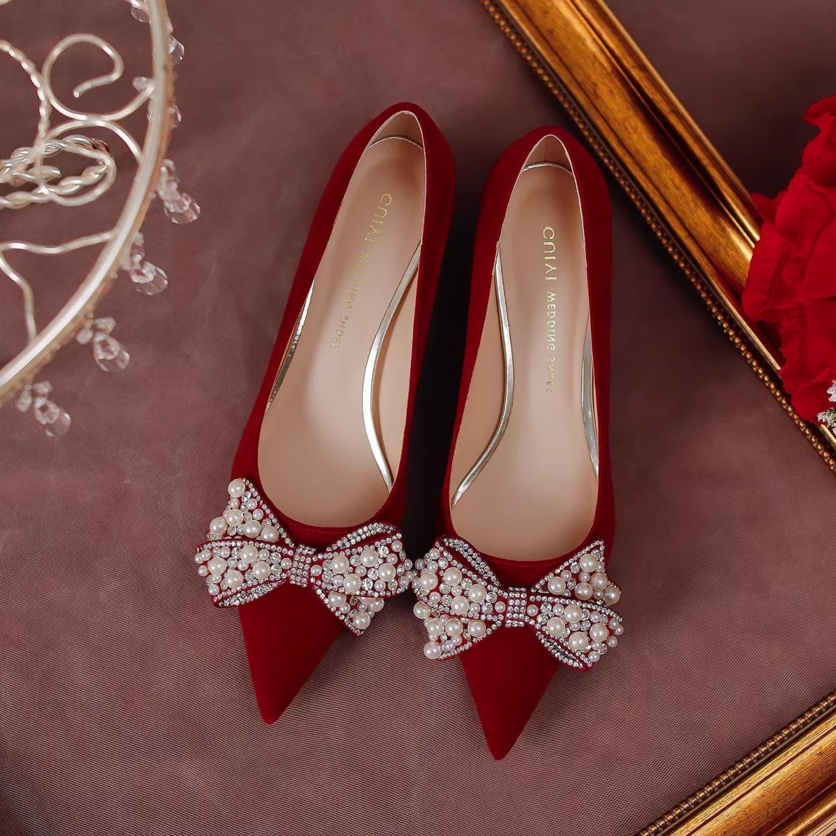 여성용 포인티드 토 하이힐 2025 가을 신상품 대형 사이즈 패셔너블한 얕은 입구의 큐빅 나비 리본 웨딩 슈즈 신부 여성화스토어 가기