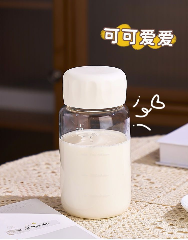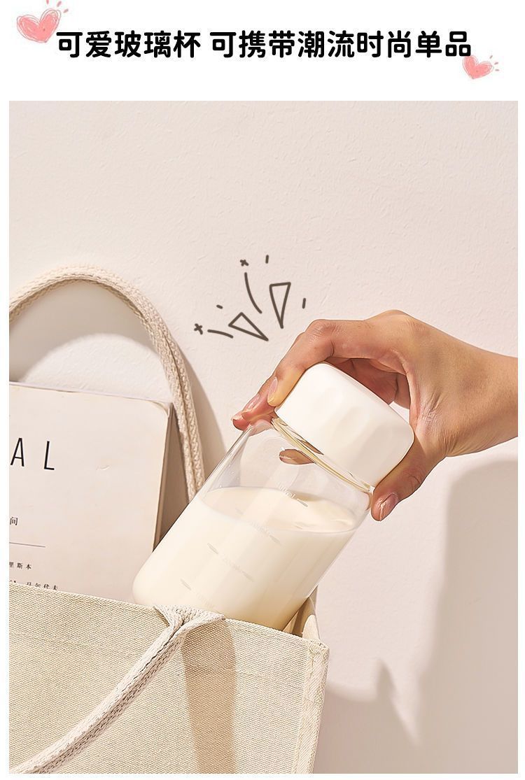 유리 학생 휴대용 우유 컵 고온 방지 높은 붕규산 두유 컵 뚜껑이있는 가정용 밀봉 규모 워터 컵스토어 가기