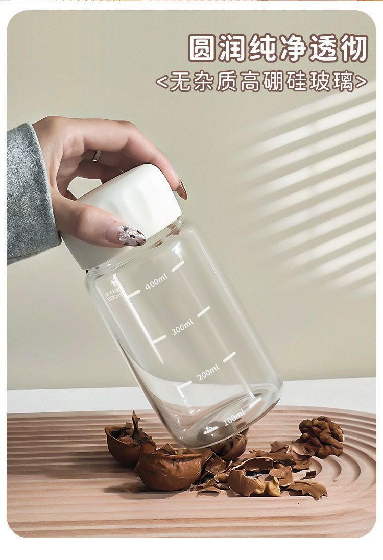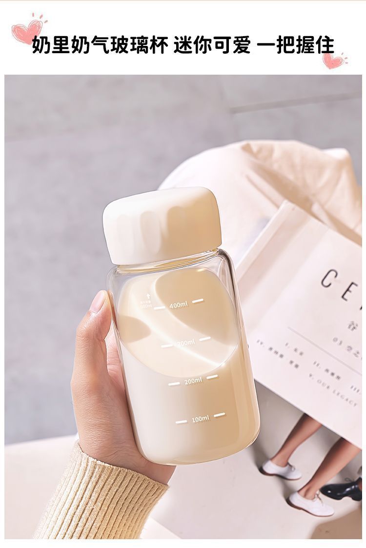 유리 학생 휴대용 우유 컵 고온 방지 높은 붕규산 두유 컵 뚜껑이있는 가정용 밀봉 규모 워터 컵