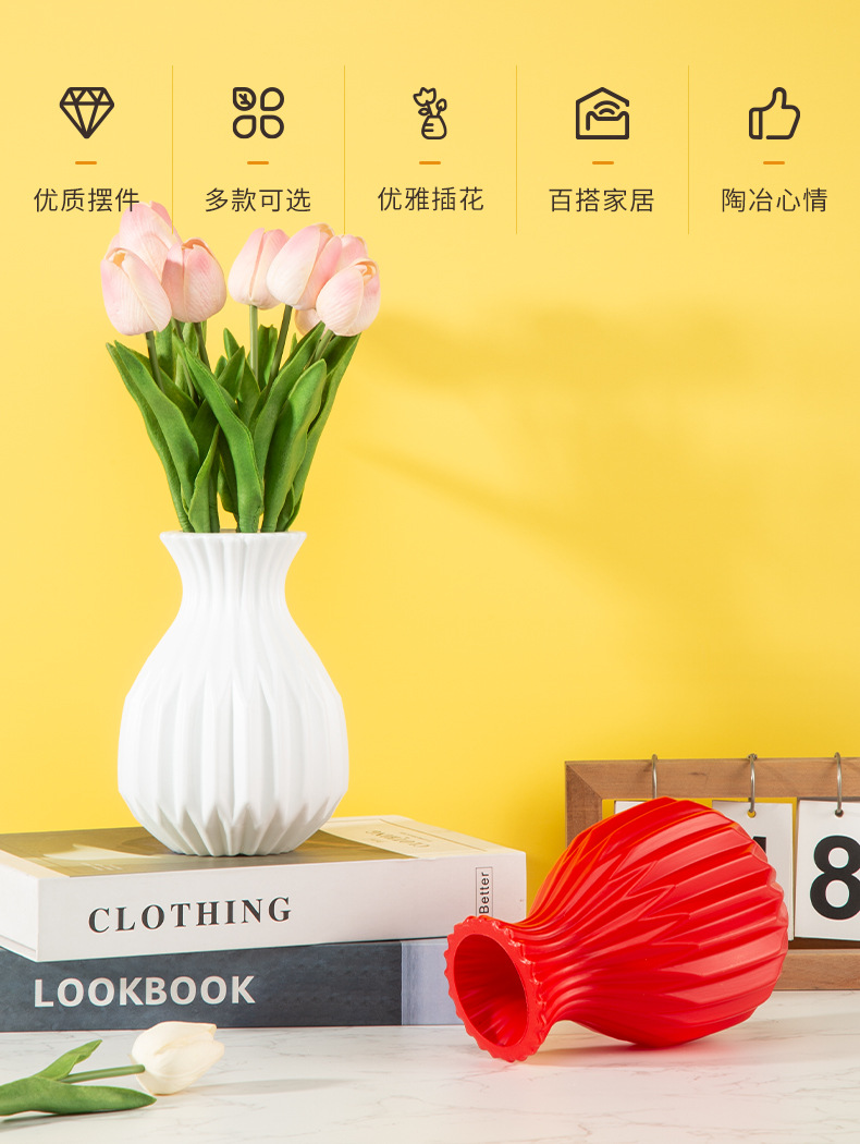 도매 북유럽 스타일 플라스틱 꽃병 꽃병 배치 창조적 인 장식 꽃병 드롭 저항하는 꽃병 플라스틱 장식품 물 저장스토어 가기