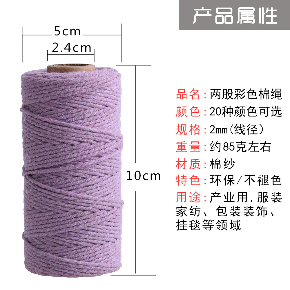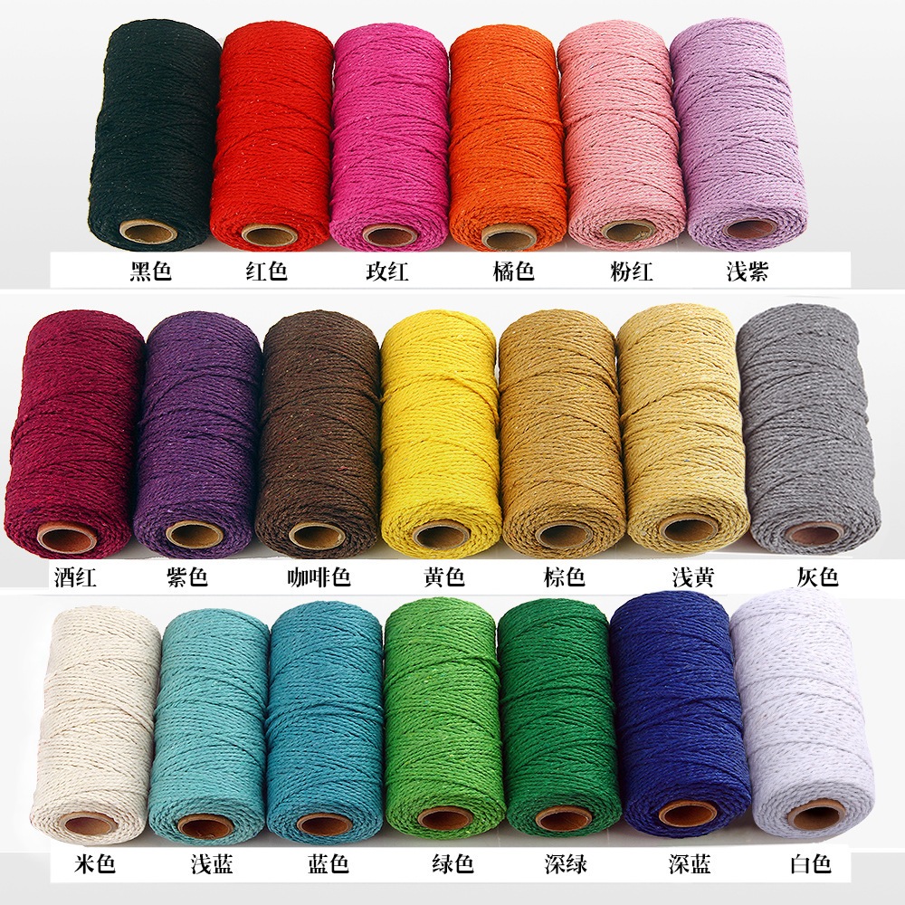 2mm/3mm 컬러 면 로프 3mm 면 실 핑크 끈 손으로 짠 로프 선물 상자 묶음 로프