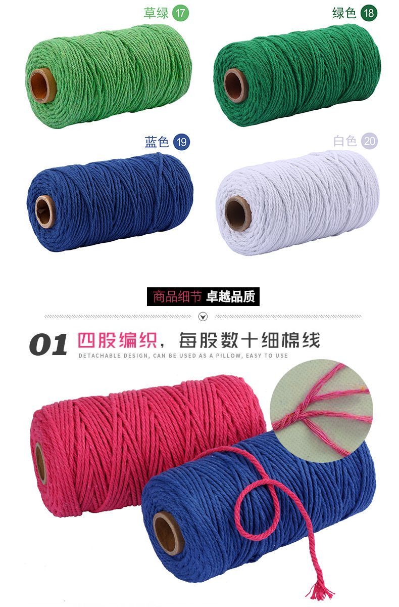 2mm/3mm 컬러 면 로프 3mm 면 실 핑크 끈 손으로 짠 로프 선물 상자 묶음 로프스토어 가기