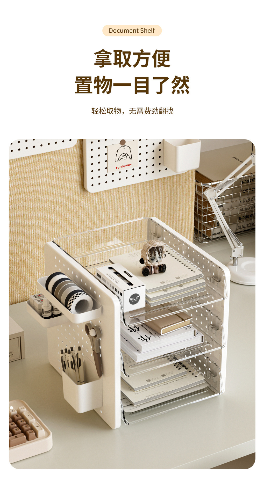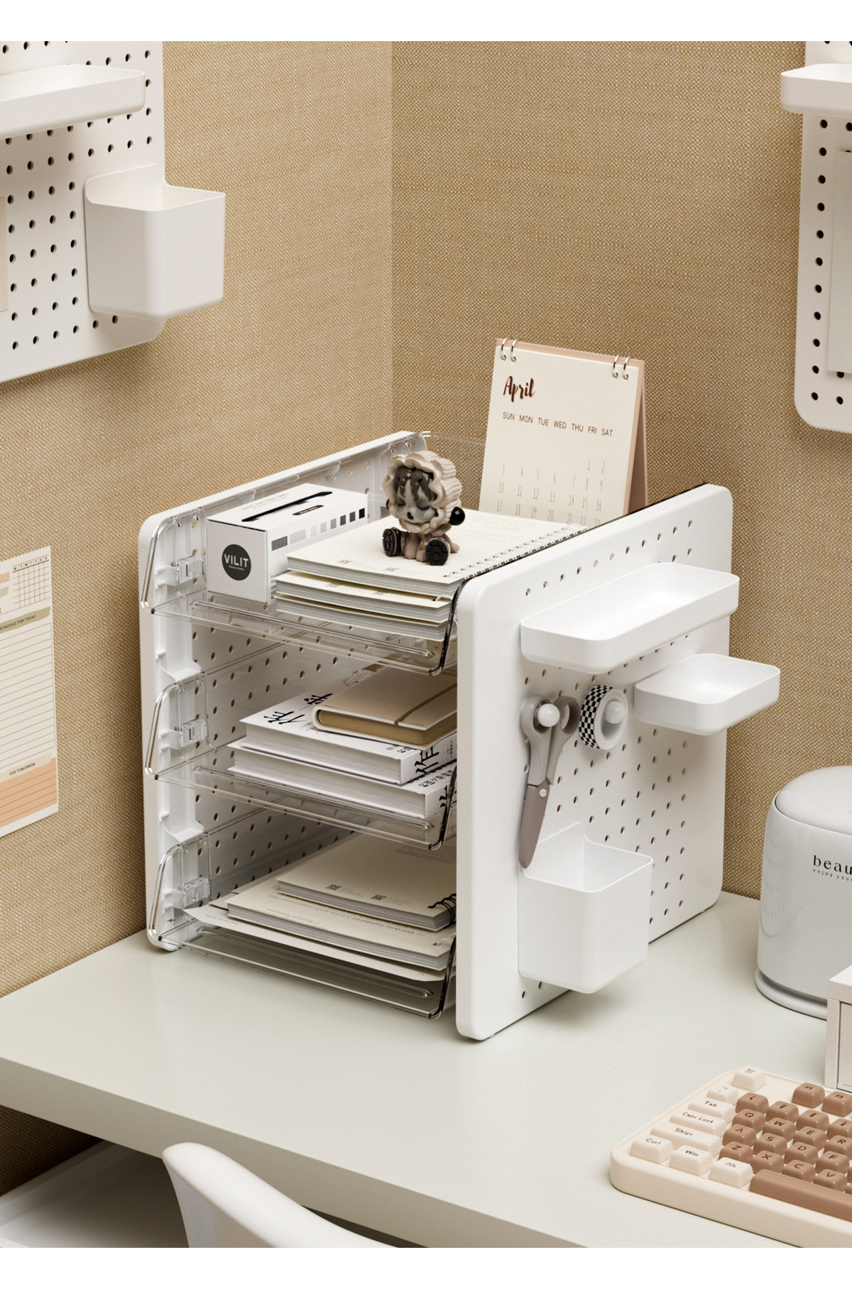 사무실 파일 저장 다중 레이어 저장 선반 학생 기숙사 데스크탑 DIY 저장을위한 구멍 보드스토어 가기