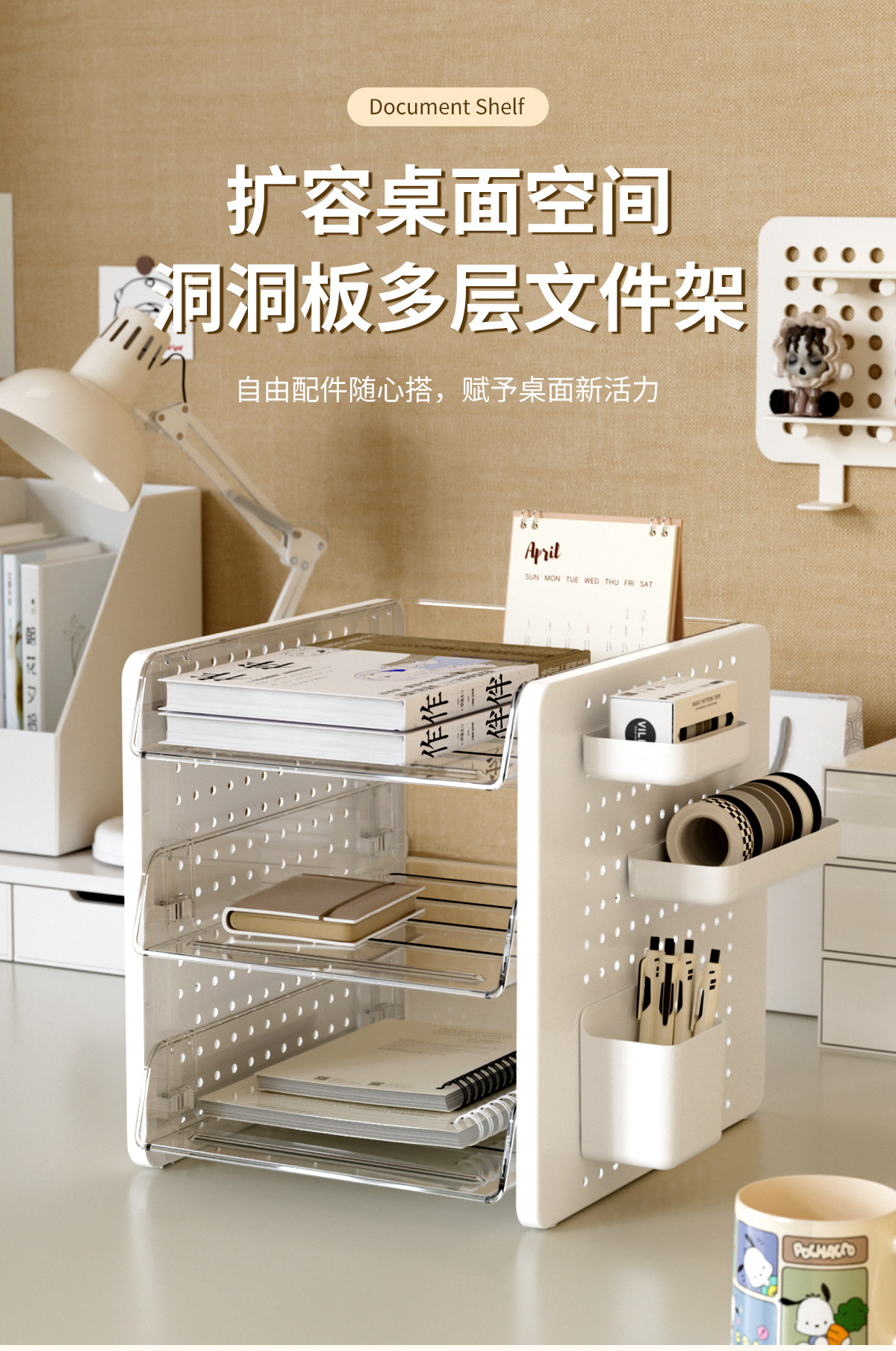 사무실 파일 저장 다중 레이어 저장 선반 학생 기숙사 데스크탑 DIY 저장을위한 구멍 보드