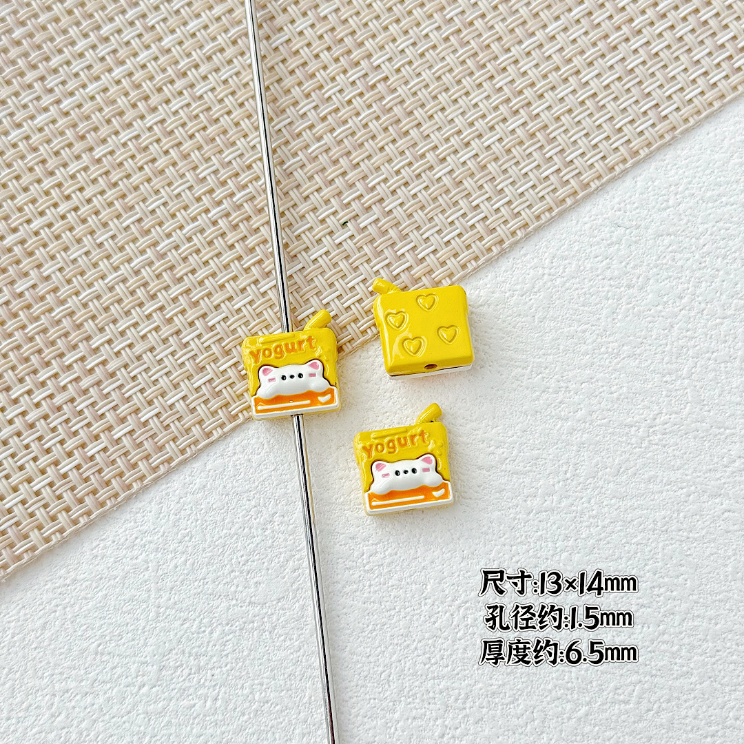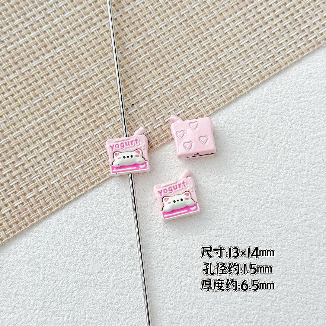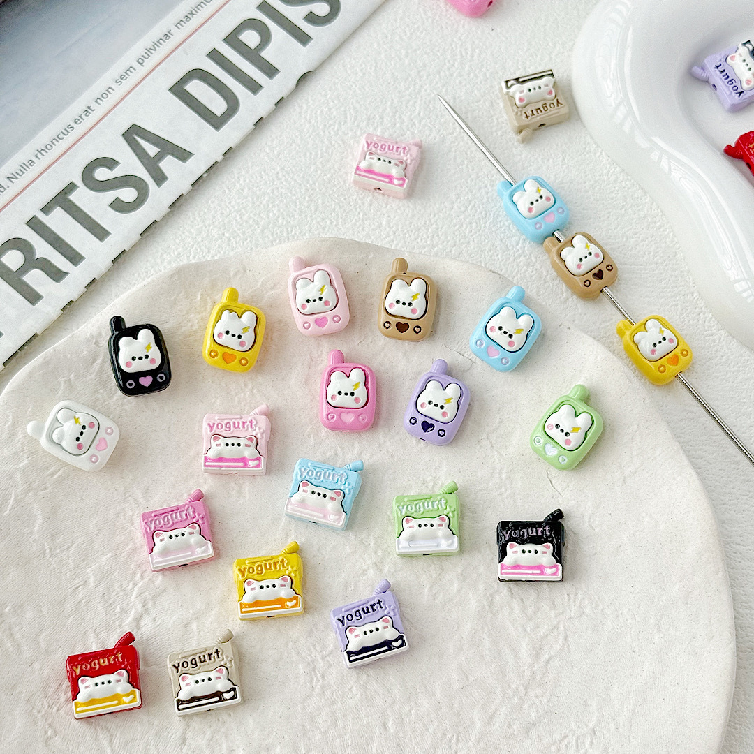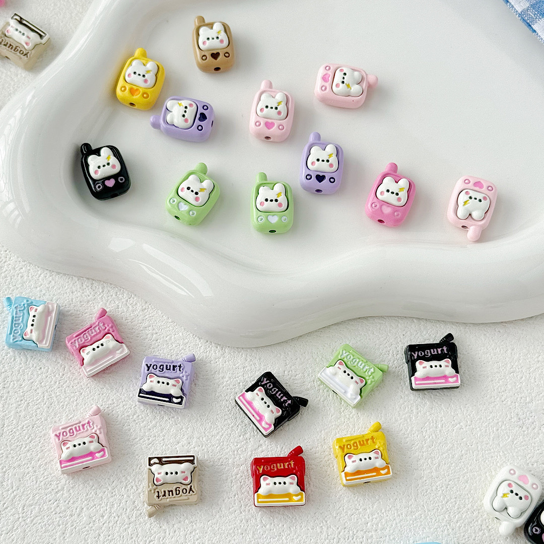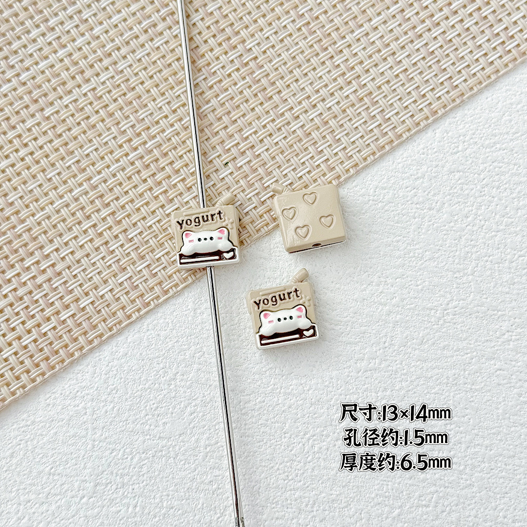 귀여운 바람 토끼 휴대 전화 고양이 요구르트 상자 페인트 합금 diy 구슬 휴대 전화 체인 키 목걸이 헤어 액세서리스토어 가기