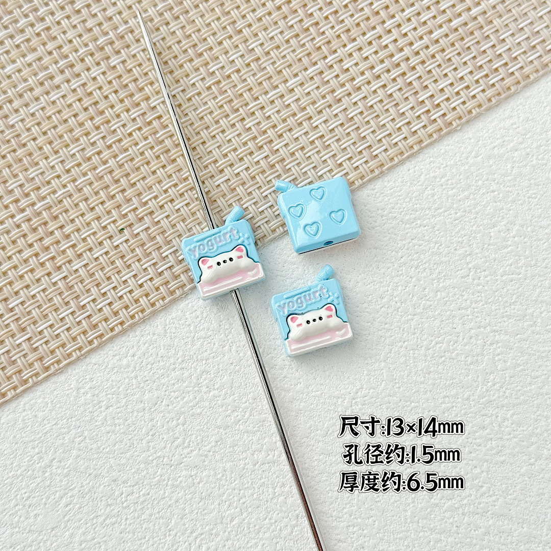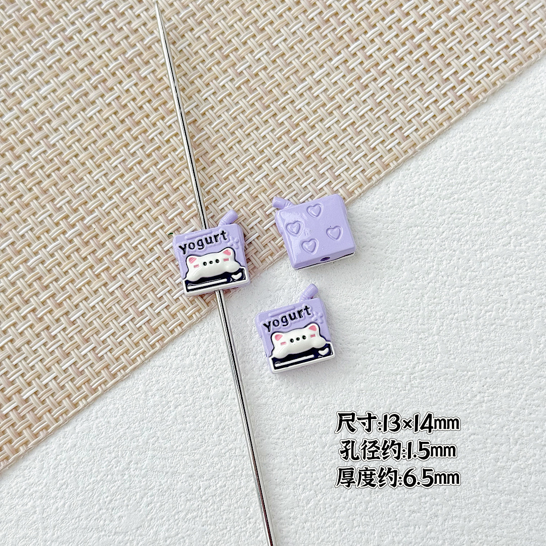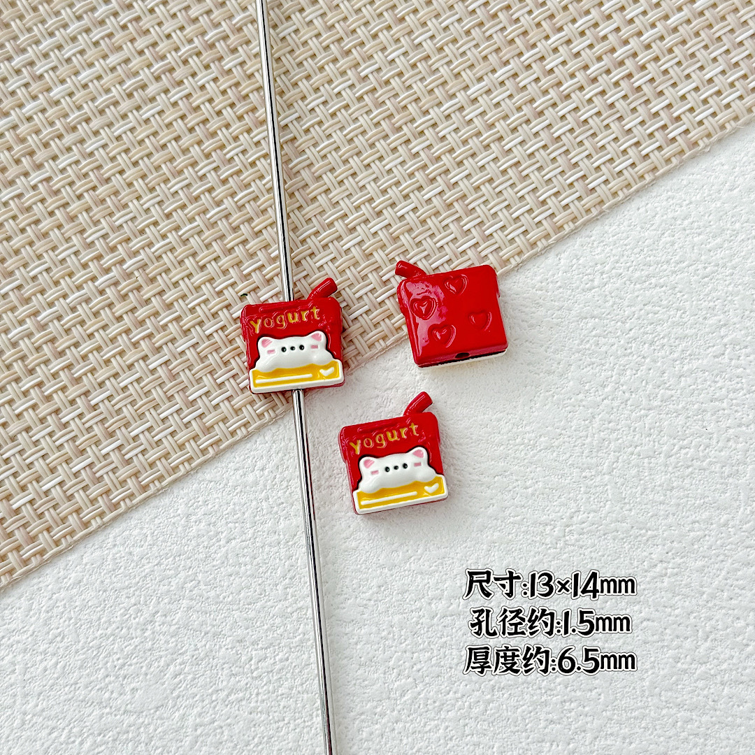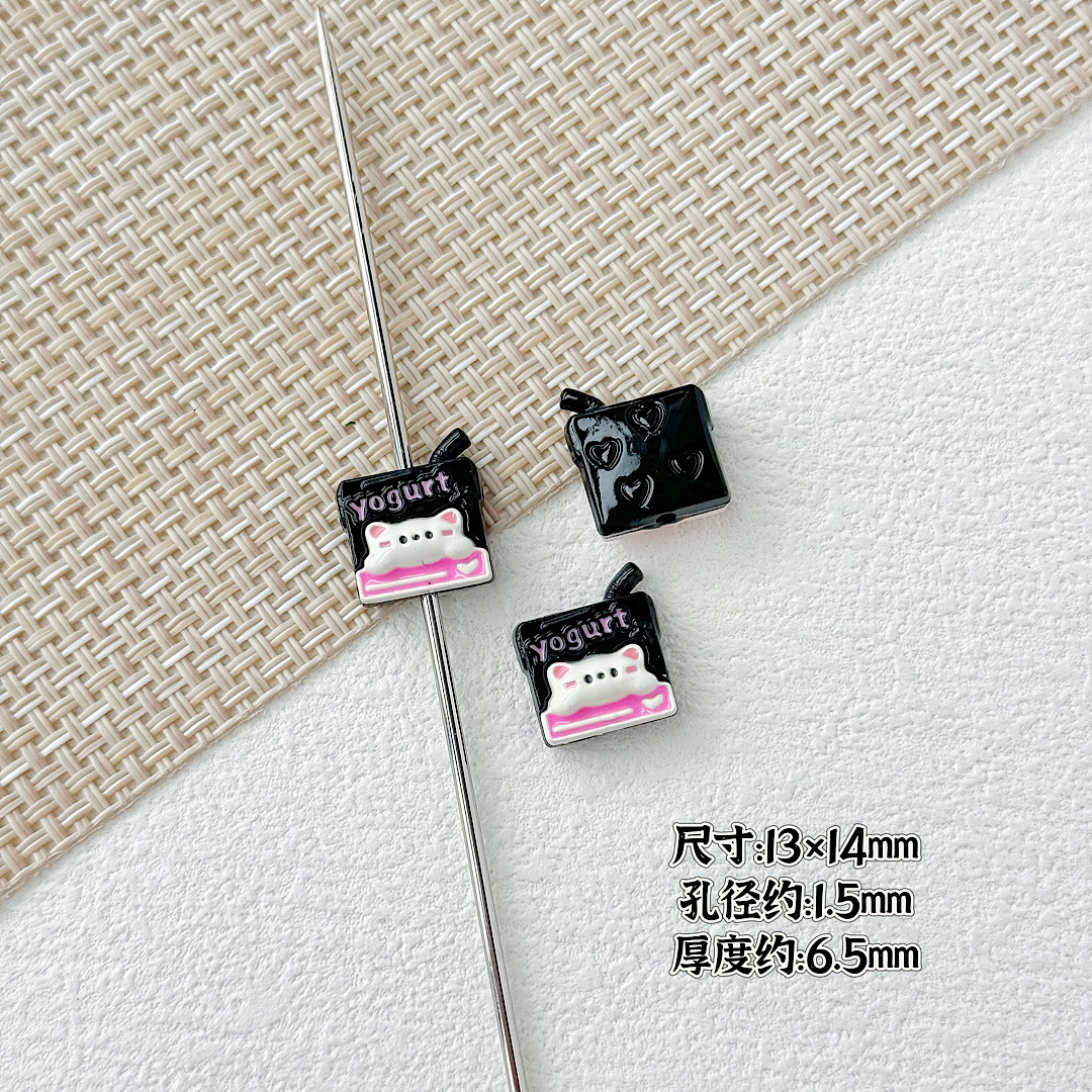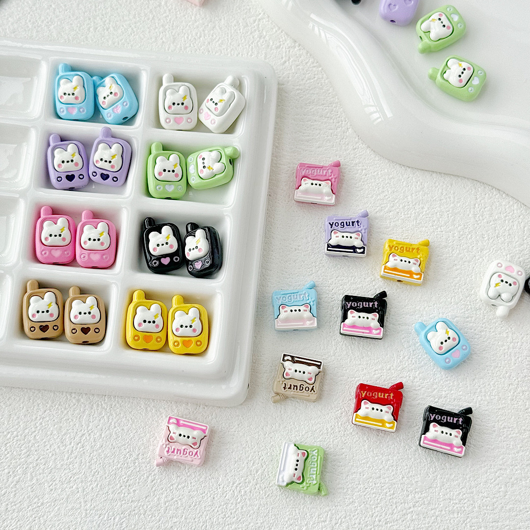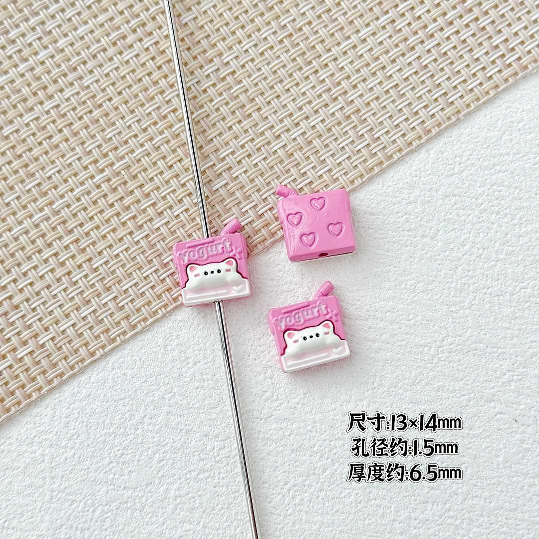 귀여운 바람 토끼 휴대 전화 고양이 요구르트 상자 페인트 합금 diy 구슬 휴대 전화 체인 키 목걸이 헤어 액세서리스토어 가기