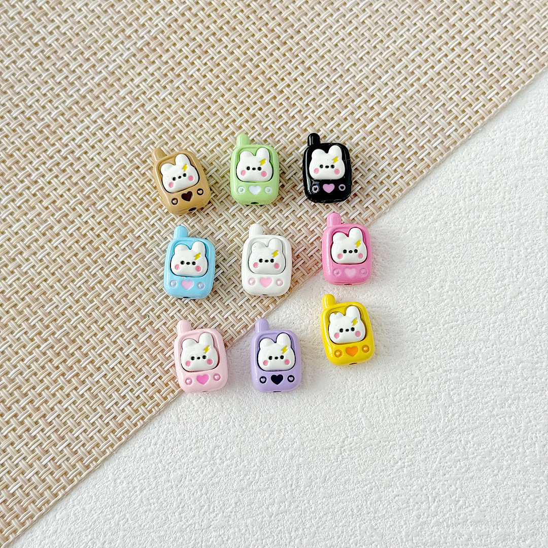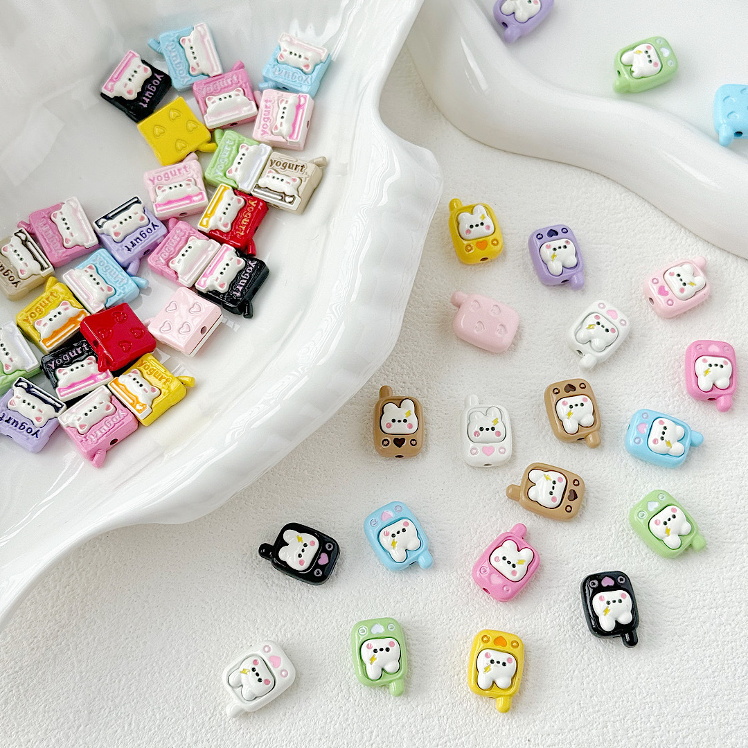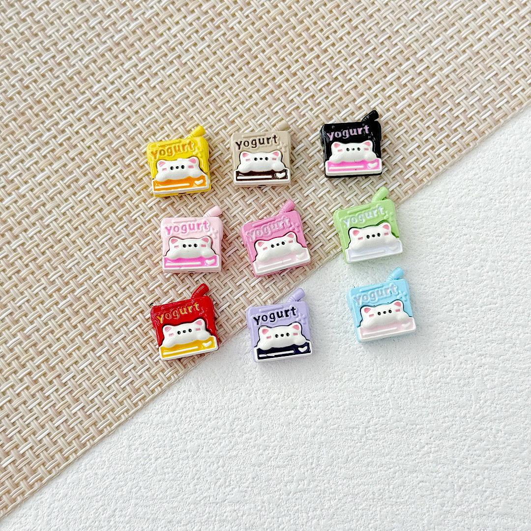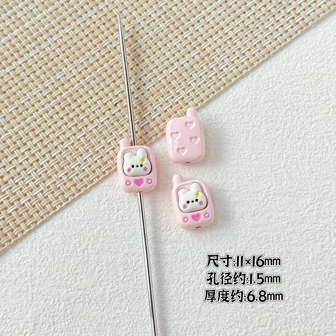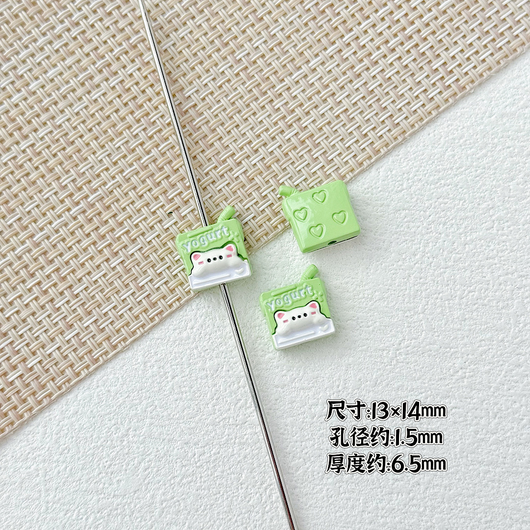 귀여운 바람 토끼 휴대 전화 고양이 요구르트 상자 페인트 합금 diy 구슬 휴대 전화 체인 키 목걸이 헤어 액세서리스토어 가기
