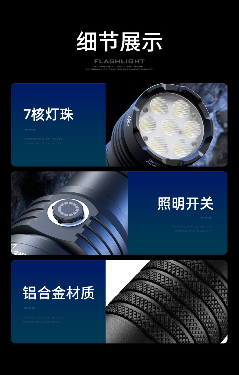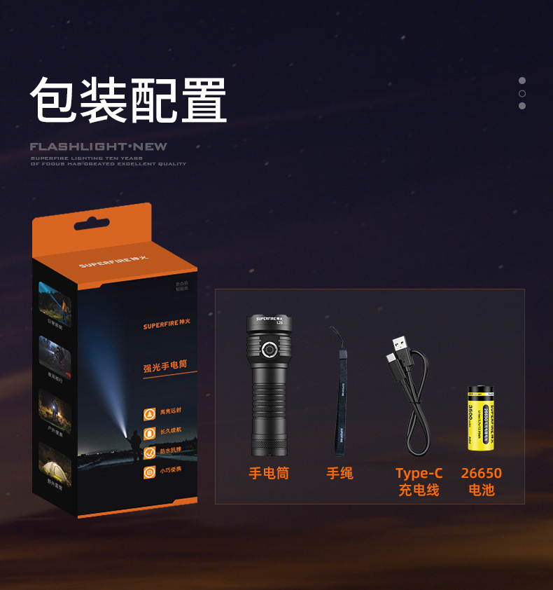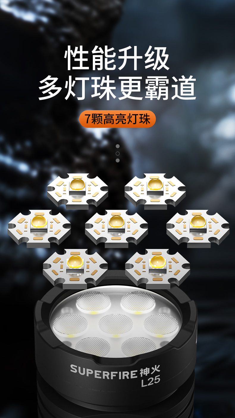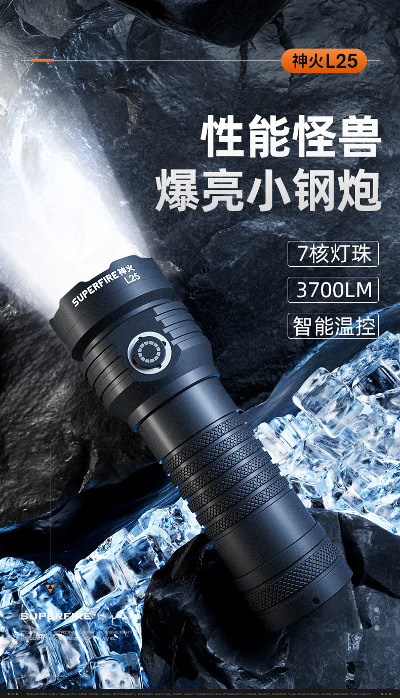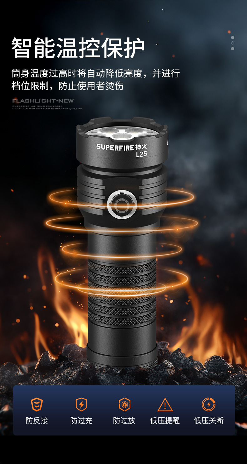 맞춤형 Shenhuo 강한 빛 장거리 손전등 온도 제어 보호 알루미늄 합금 야외 순찰 비상 조명 손전등 L25
