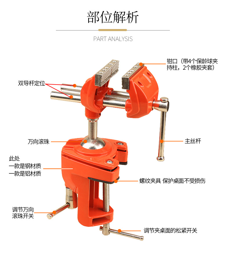 모든 강철 유니버설 테이블 바이스 목공 중장비 벤치 바이스 다기능 미니 벤치 바이스 360 도 회전 테이블 바이스