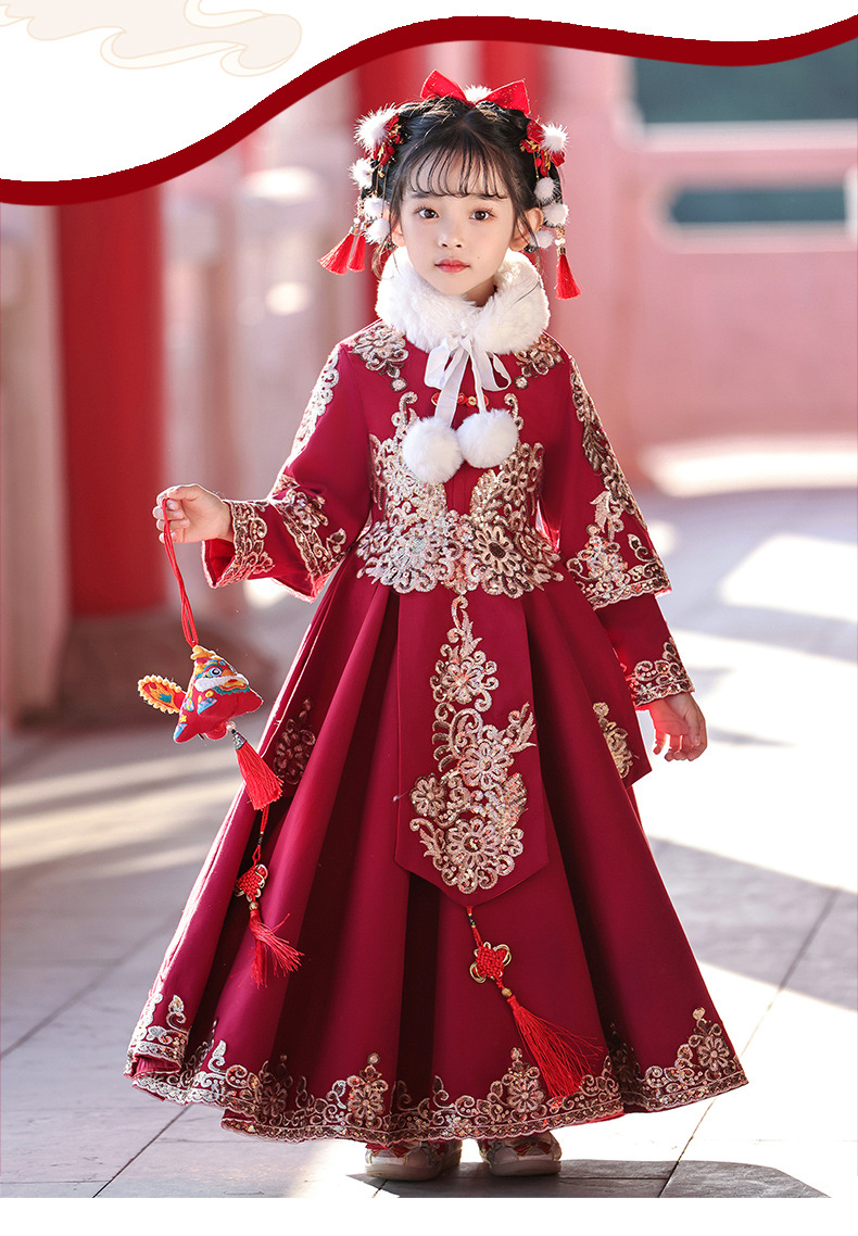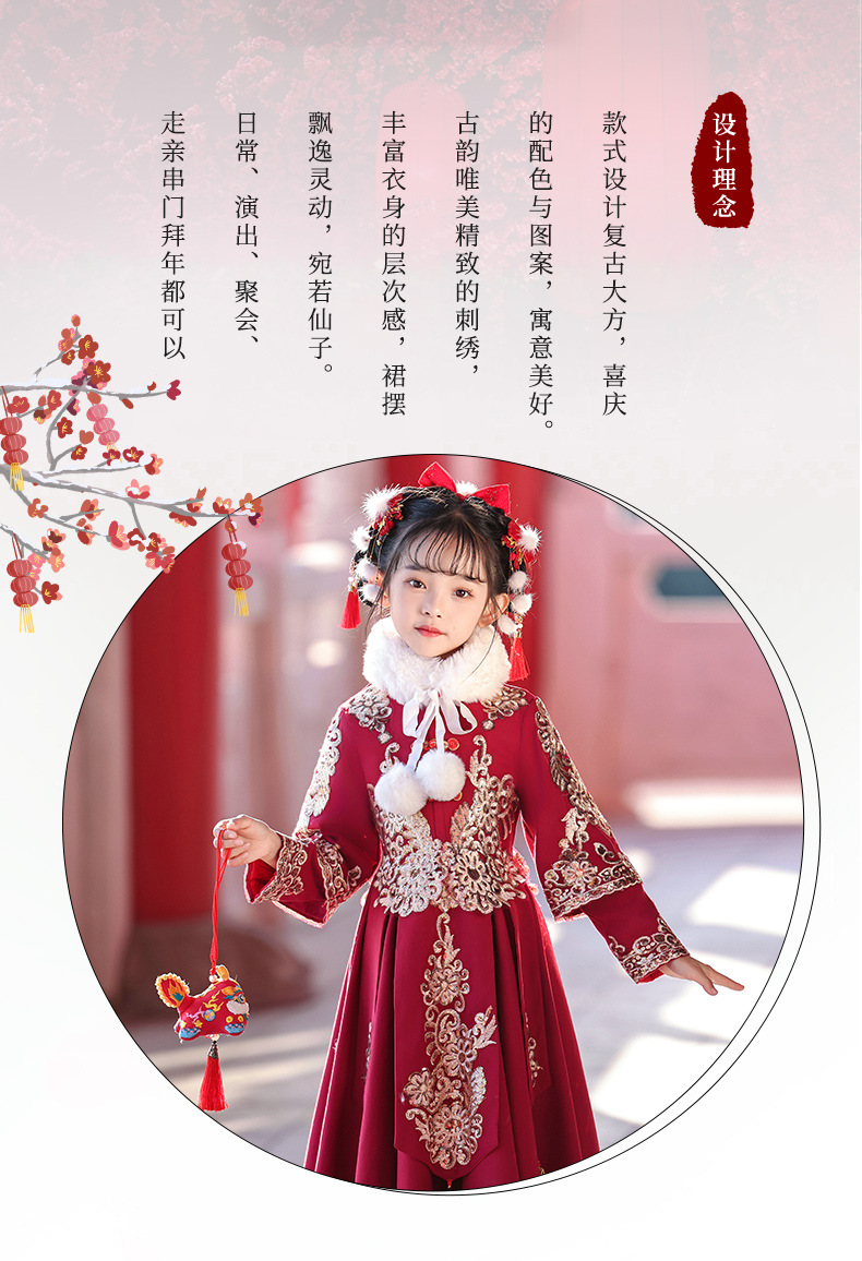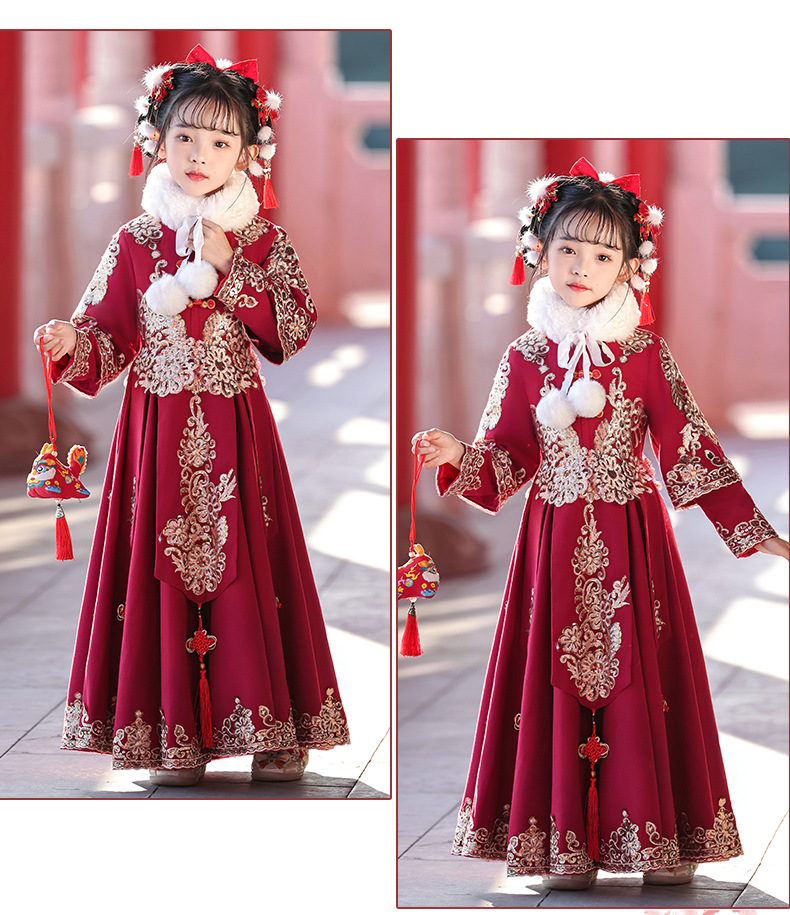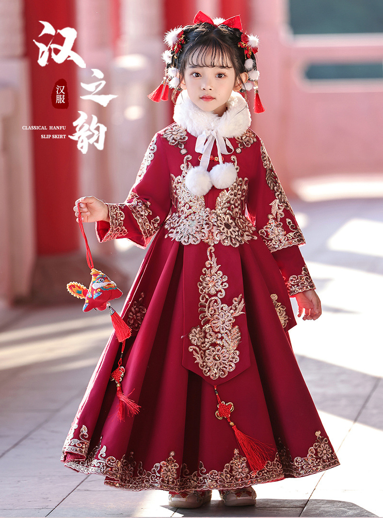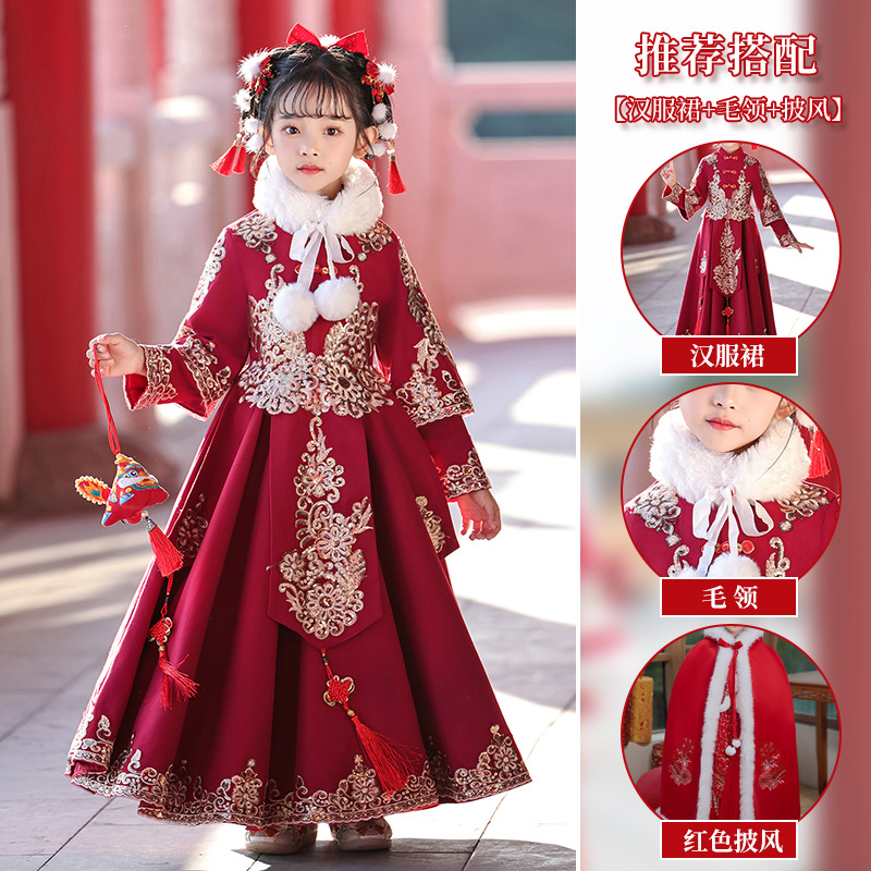 새해 옷 소녀 겨울 옷 기모 새해 축제 붉은 새해 어린이 한푸 2024 새로운 중국 스타일 고대 옷