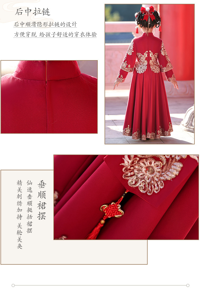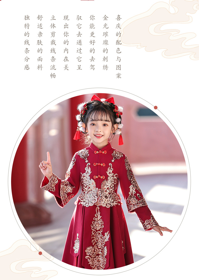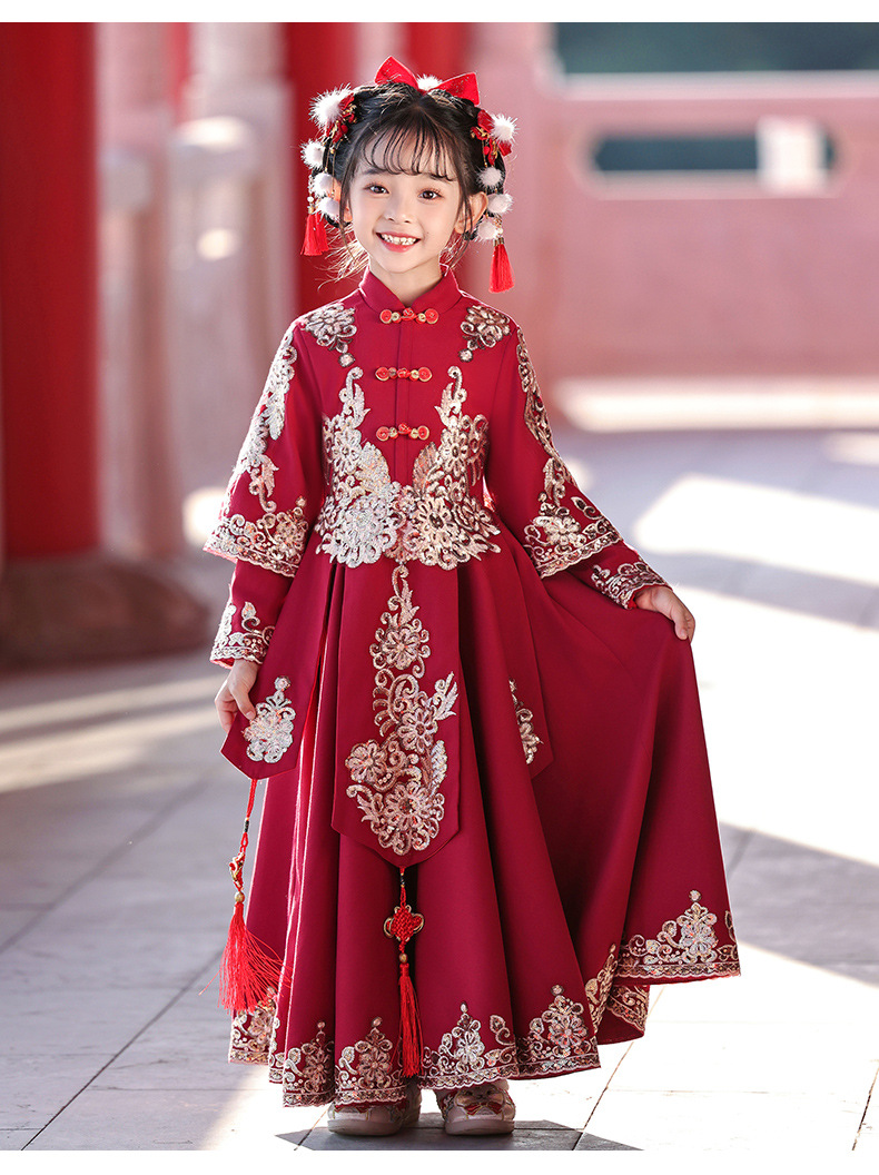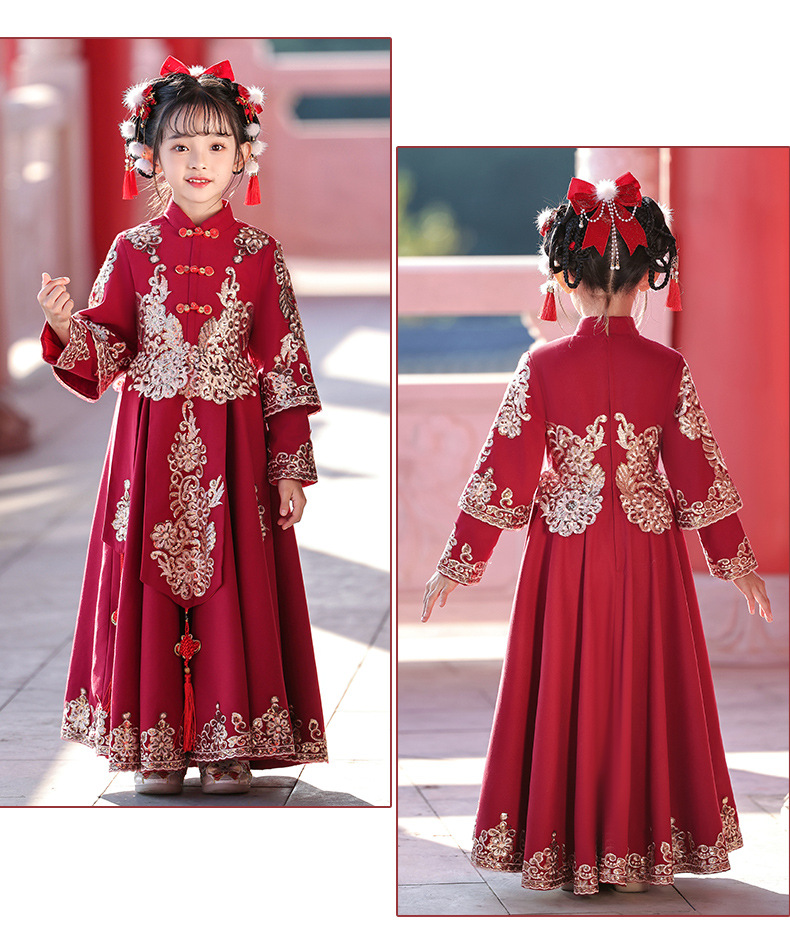 새해 옷 소녀 겨울 옷 기모 새해 축제 붉은 새해 어린이 한푸 2024 새로운 중국 스타일 고대 옷