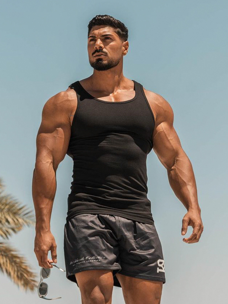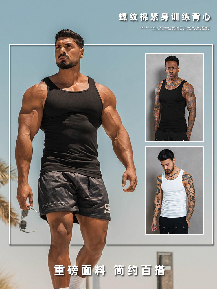 섹스 텐션 타이트 스트레치 조끼 남성용 Combed Cotton Thread 민소매 티셔츠 유럽과 미국의 피트니스 스포츠 Bottoming Waistcoat스토어 가기