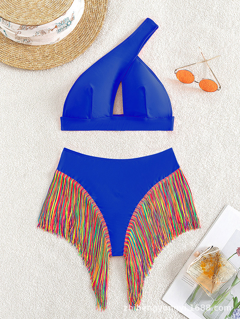 2025 새로운 유럽과 미국의 대외 무역 비키니 섹시 수영복 솔리드 컬러 숄더 술, 높은 허리 BIKINI 수영복 수집