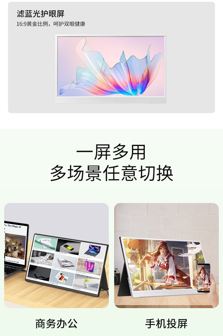 15.6inch 휴대용 모니터 HDR 맞춤형 IPS 스크린 PS4/5SitchSbox 확장 게임 전용스토어 가기