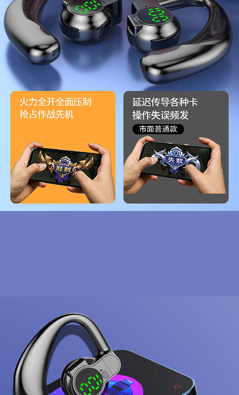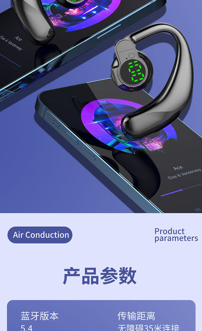 양쪽 귀에 착용 가능, 긴 배터리 수명, 휴대폰에 호환되는 디지털 디스플레이, 회전 가능한 스포츠 블루투스 이어폰, 귀걸이형스토어 가기