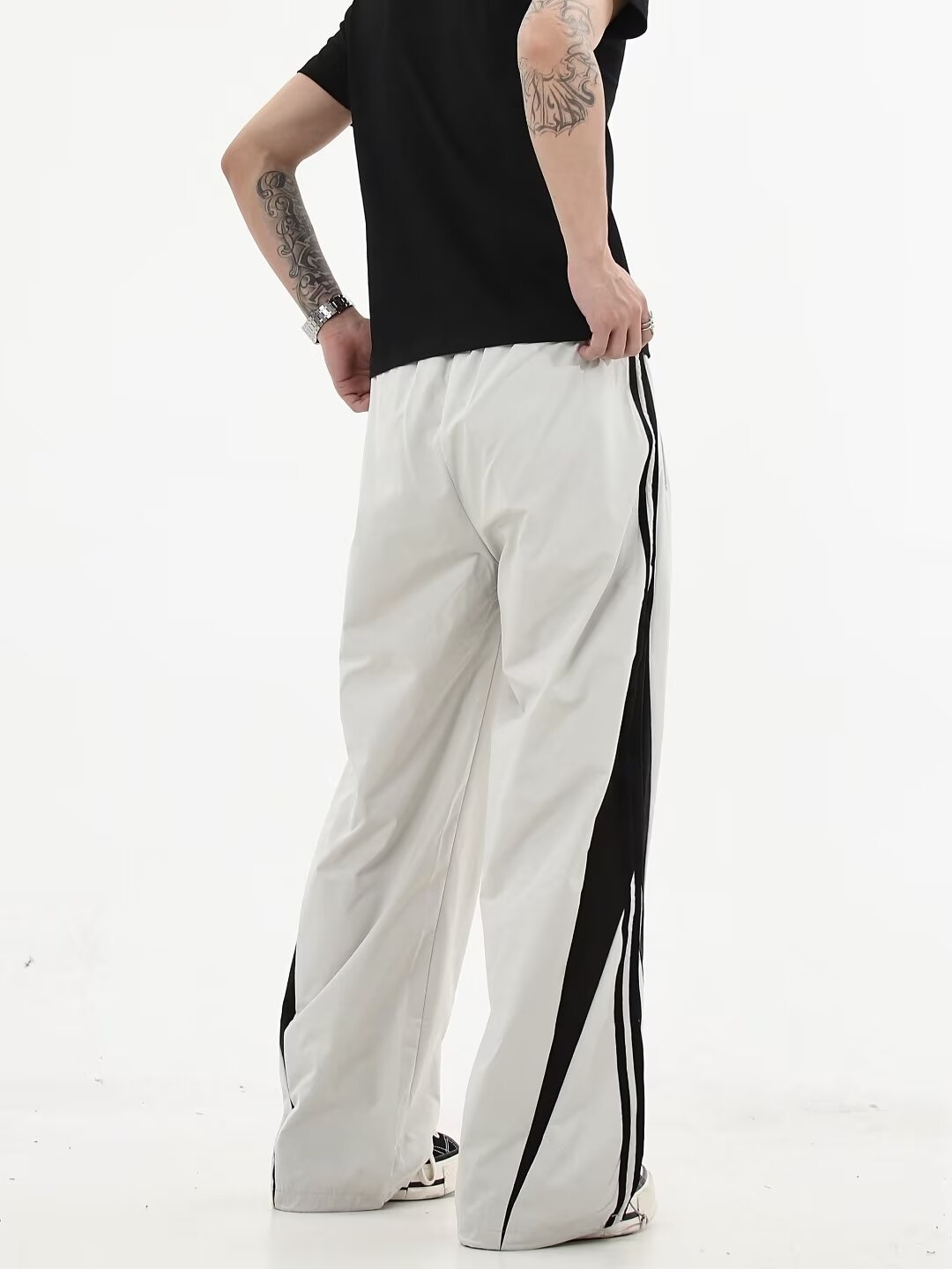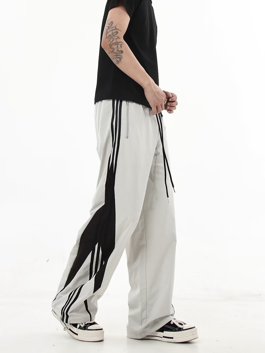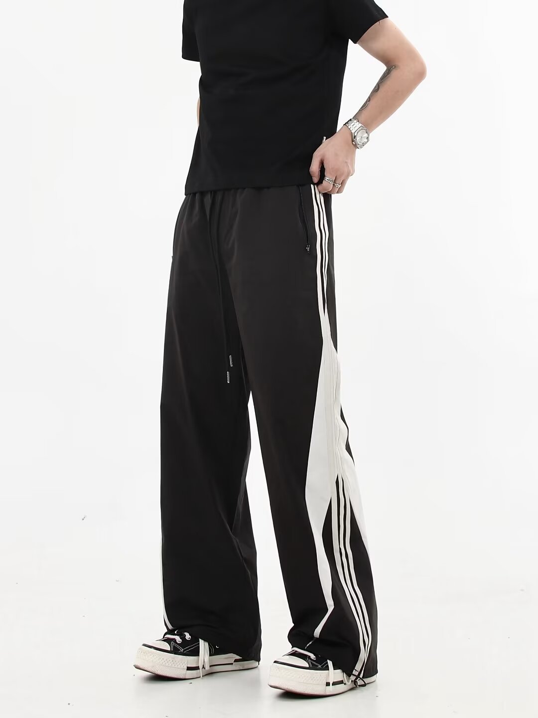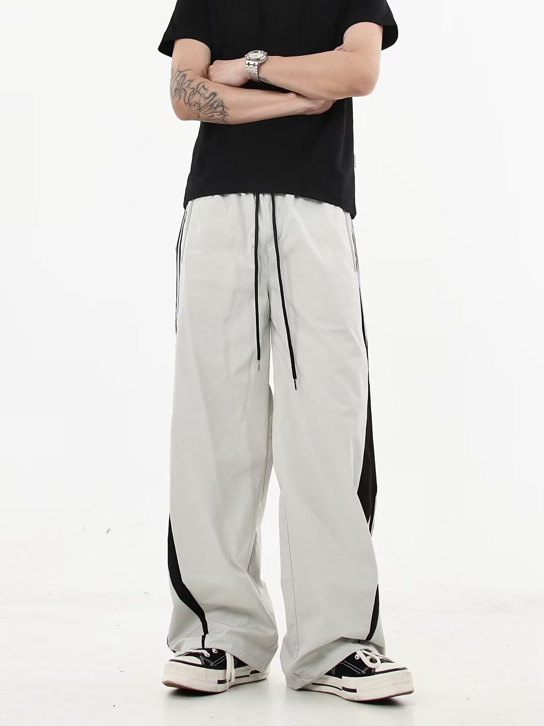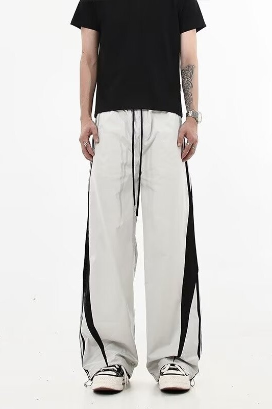 아메리칸 스타일 스티칭 줄무늬 빠른 건조 충전 바지 남성용 봄과 가을 3 바 낙하산 바지 야외 스트레이트 등산 바지스토어 가기