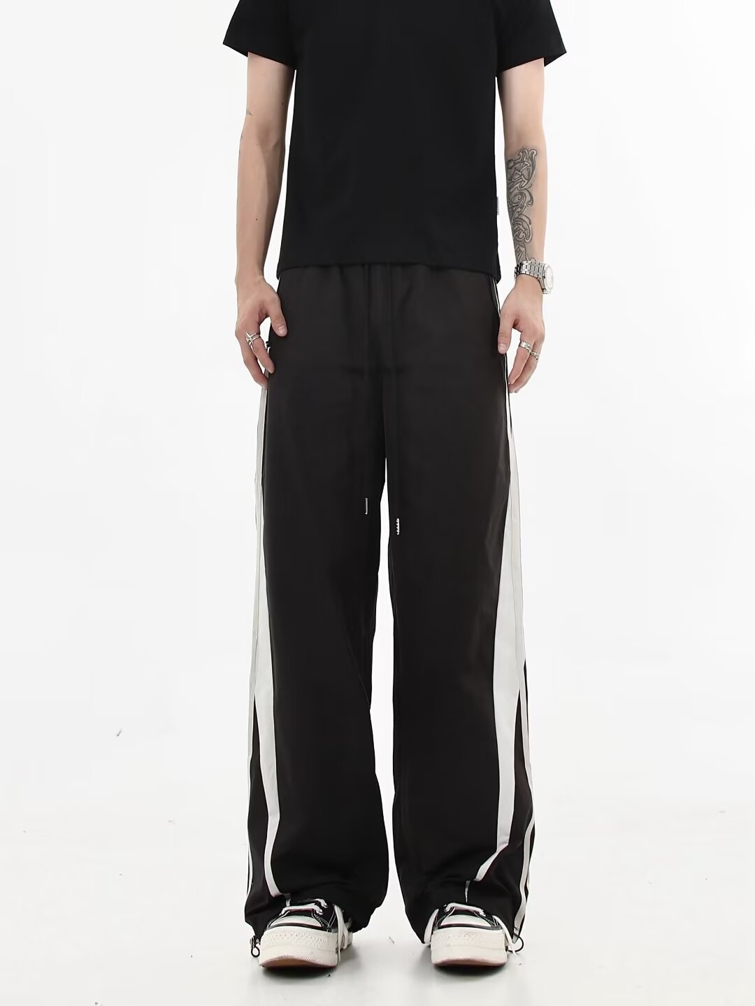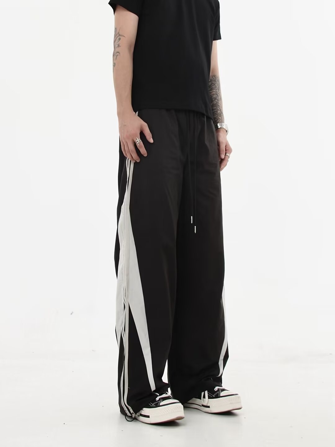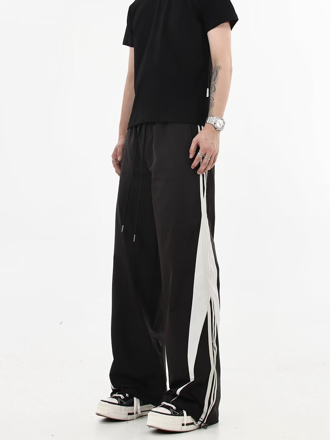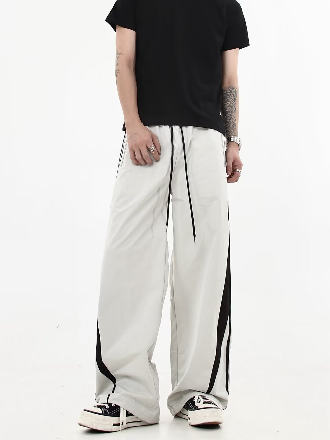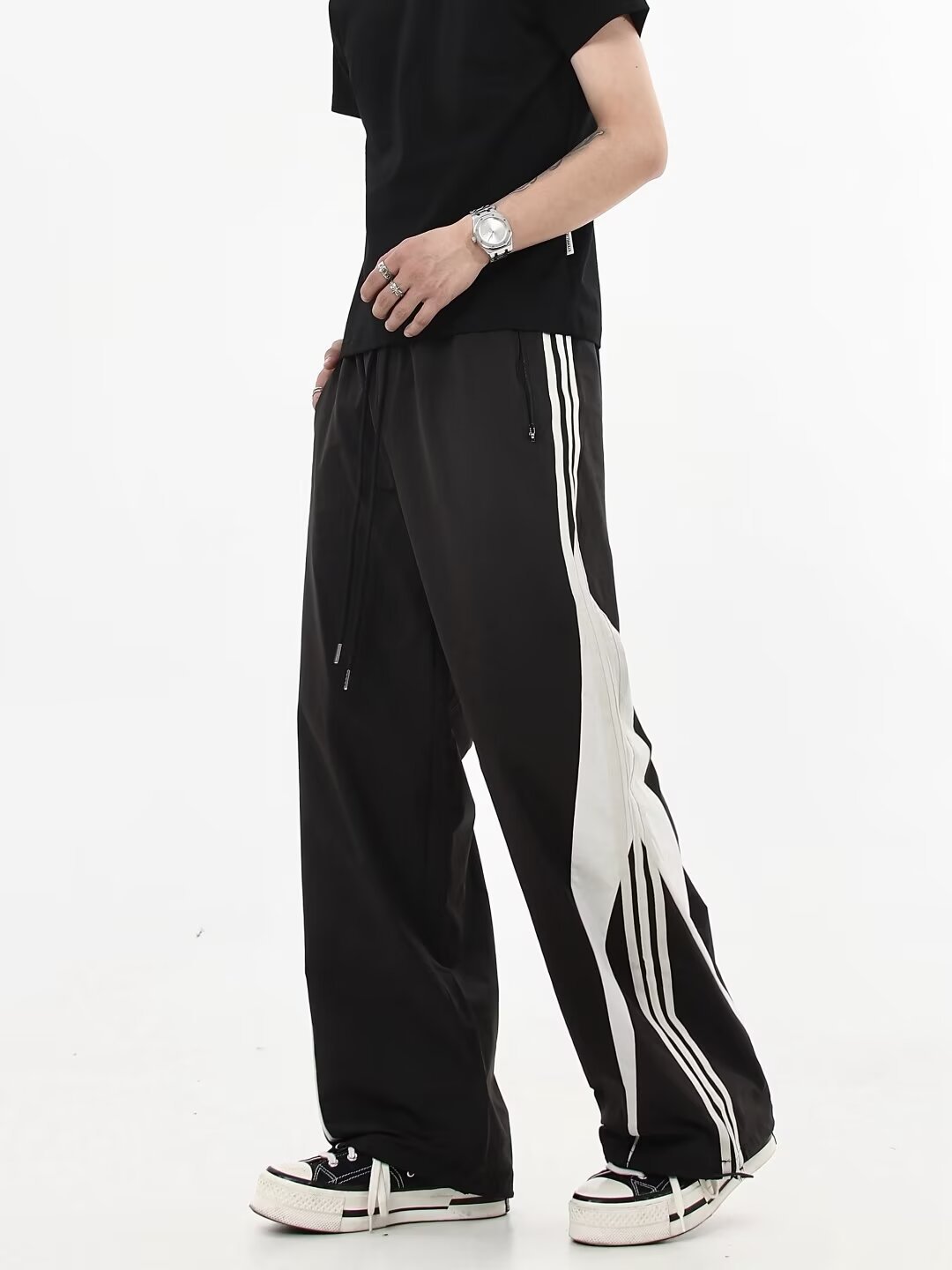 아메리칸 스타일 스티칭 줄무늬 빠른 건조 충전 바지 남성용 봄과 가을 3 바 낙하산 바지 야외 스트레이트 등산 바지스토어 가기