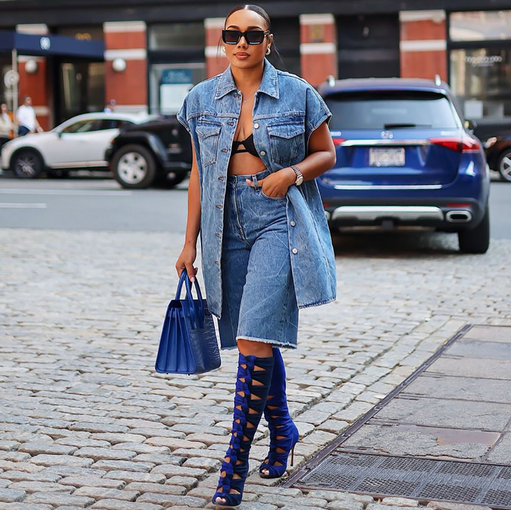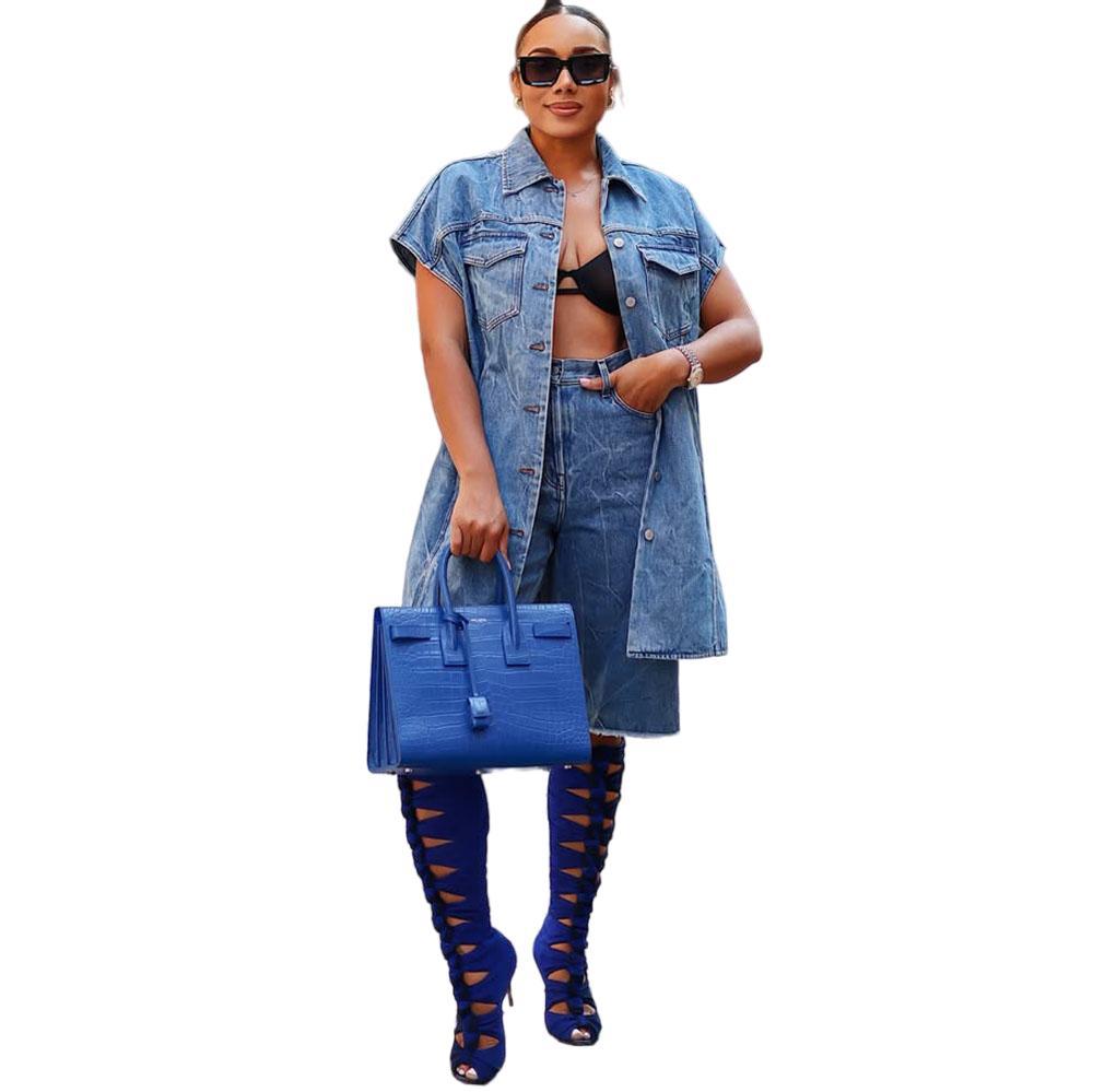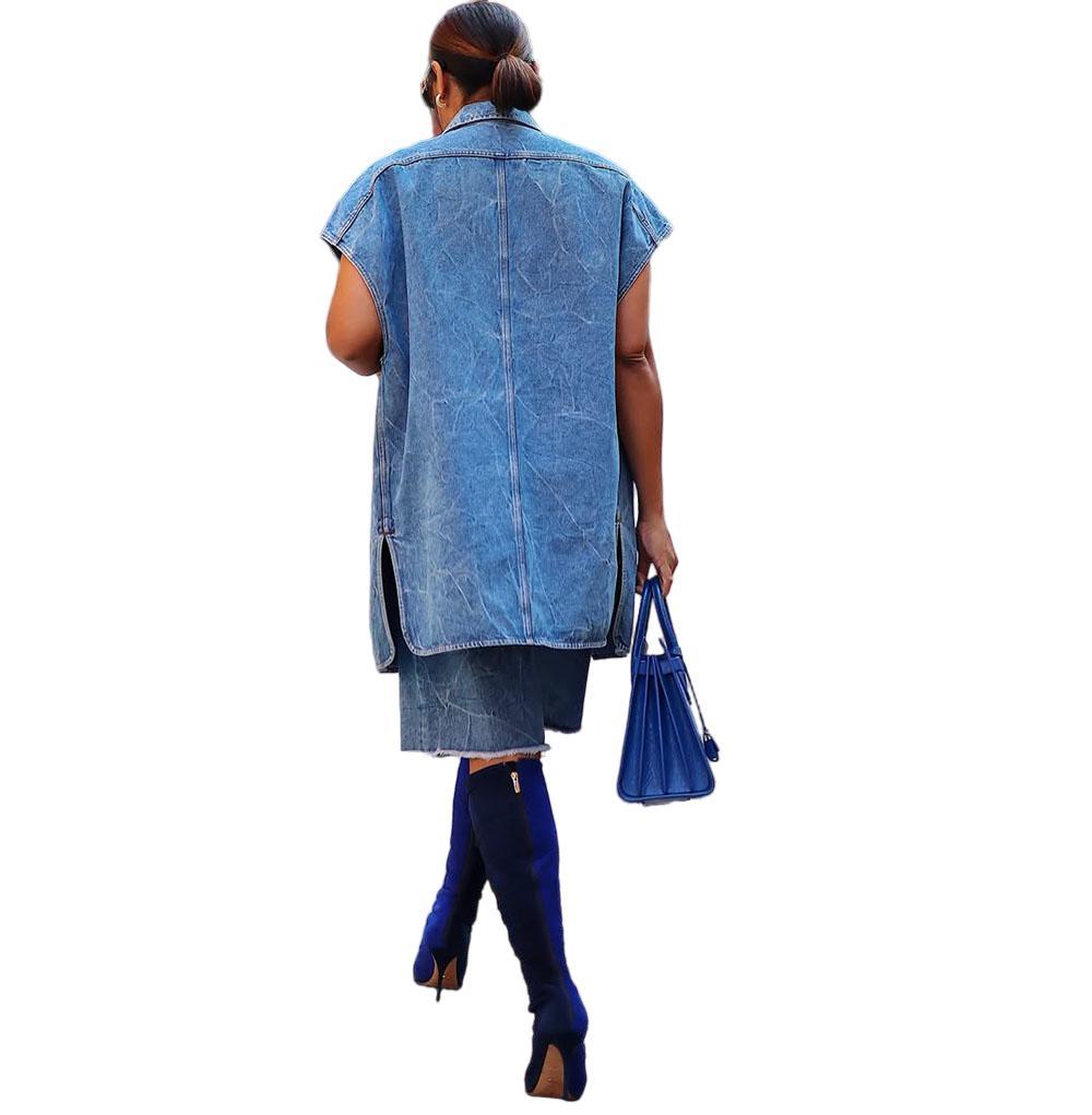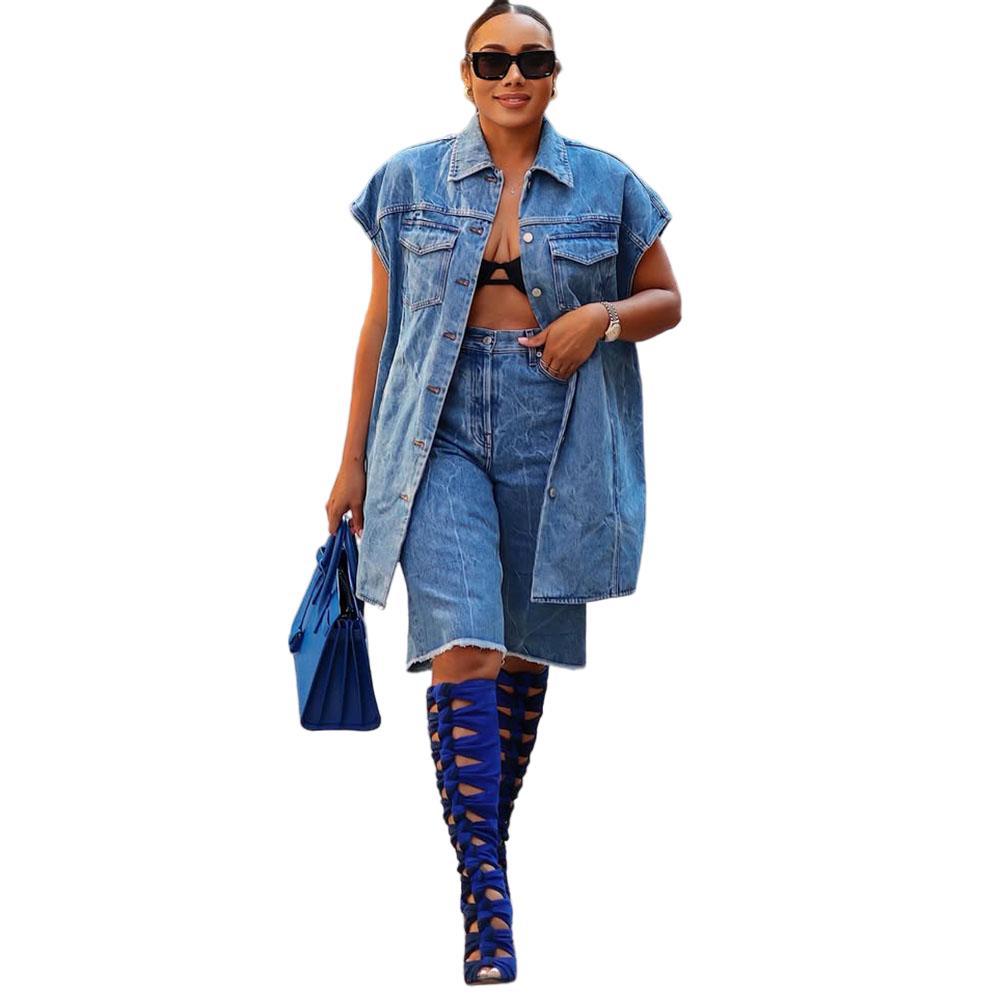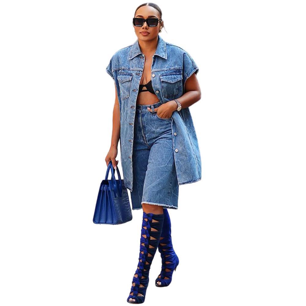 유럽과 미국 여성 캐주얼 데님 코트 아마존 국경 여성 패션 데님 재킷 민소매 양복 조끼