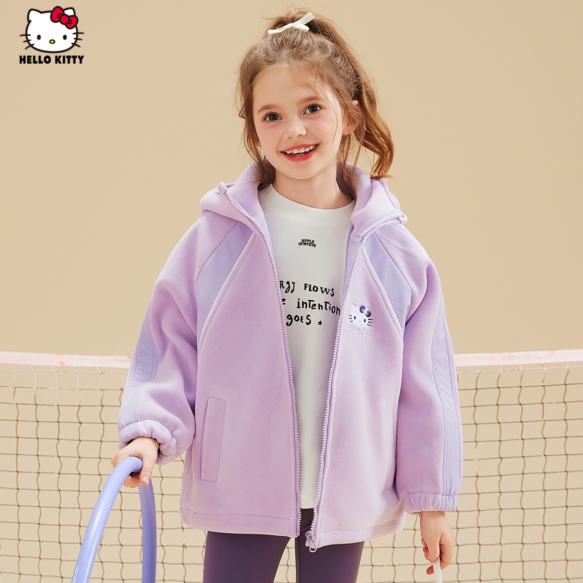 헬로 키티 가을 2024 새로운 코트 대형 아동복 라이트 따뜻한 올리 벨벳 여성 보물 매일 코트스토어 가기