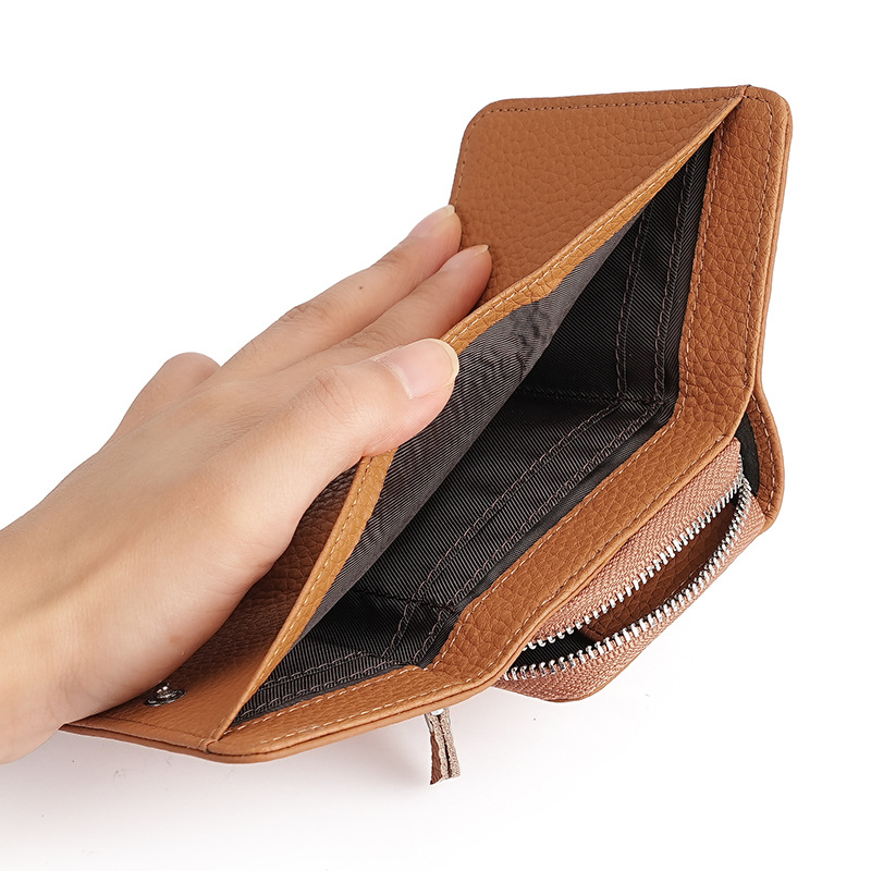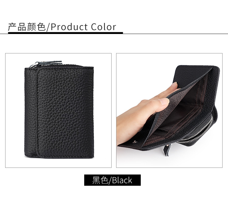 국경 간 일본식 작은 지갑 여성용 정품 가죽 RFID 도난 방지 브러시 도카 비트 여성용 3 배 동전 지갑 지퍼 동전 가방