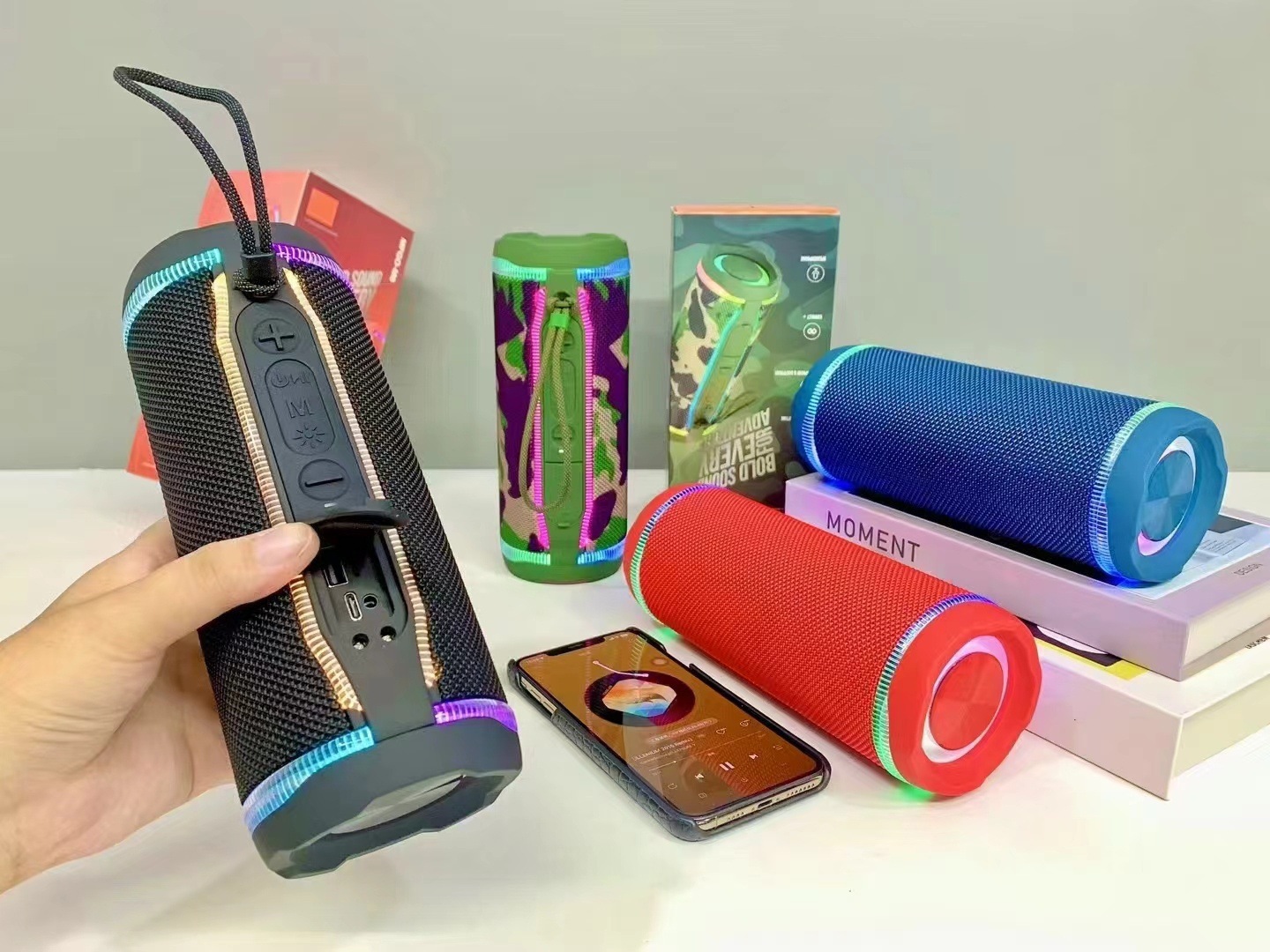 새로운 블루투스 미니 스피커 야외 방수 오디오 사이클링 서브 우퍼 홈 분위기 라이트 카드 플레이어스토어 가기