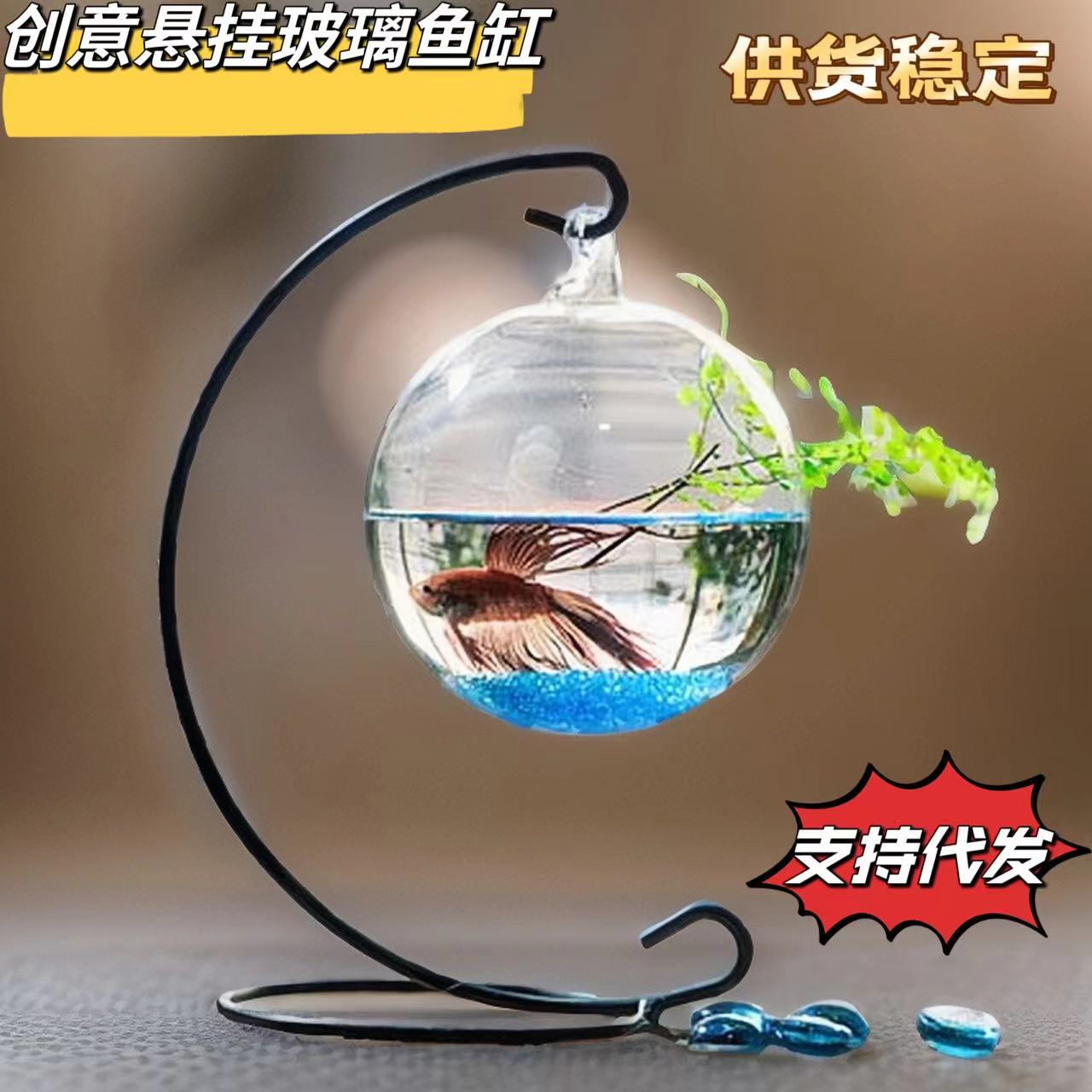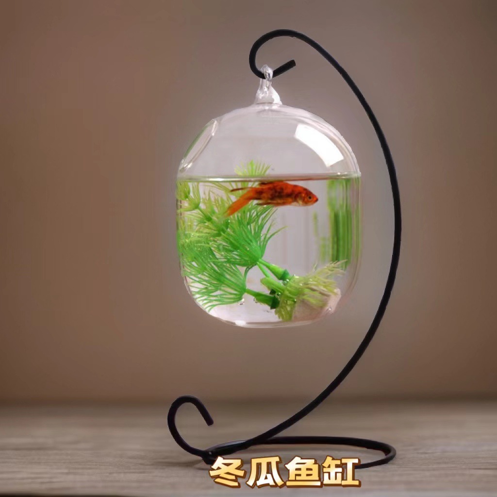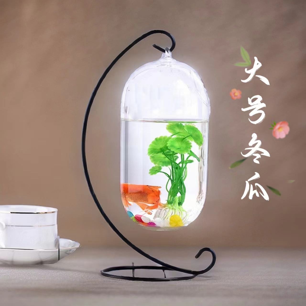 걸이형 유리 어항 거실 탁상용 금붕어 어항 생태 조경 수경재배 게으른 사람용 도미 어항 미니 수족관