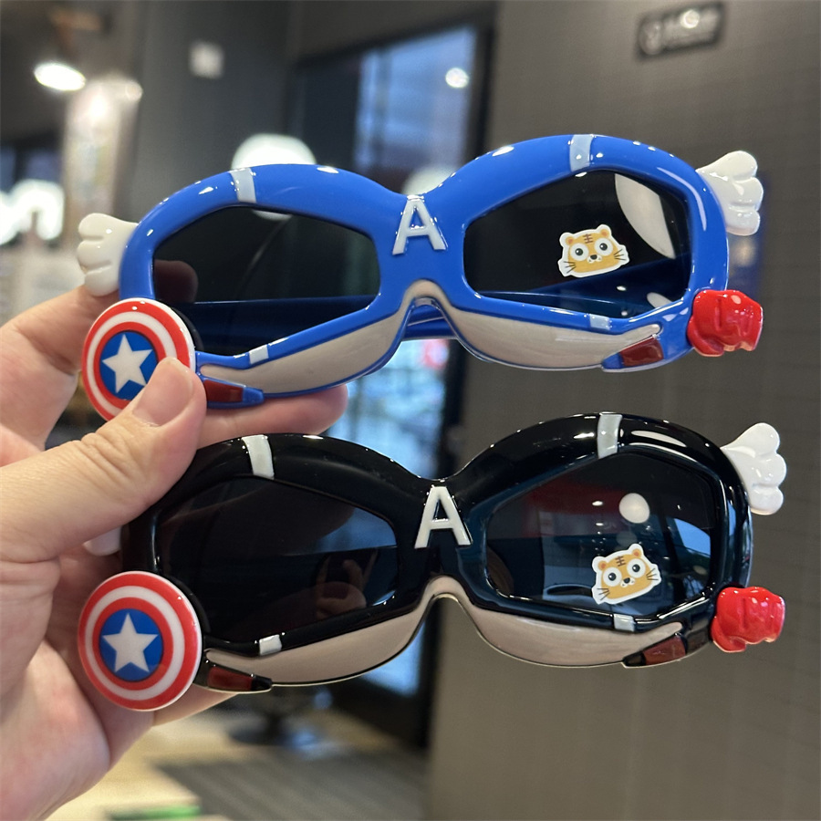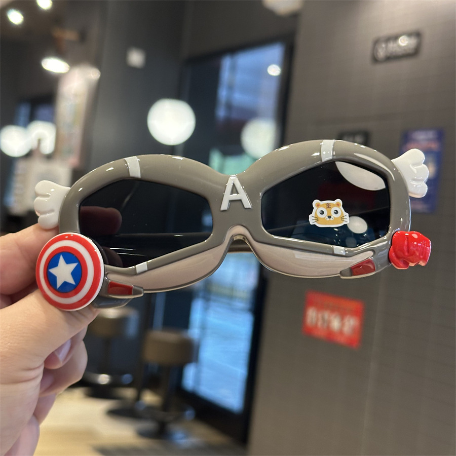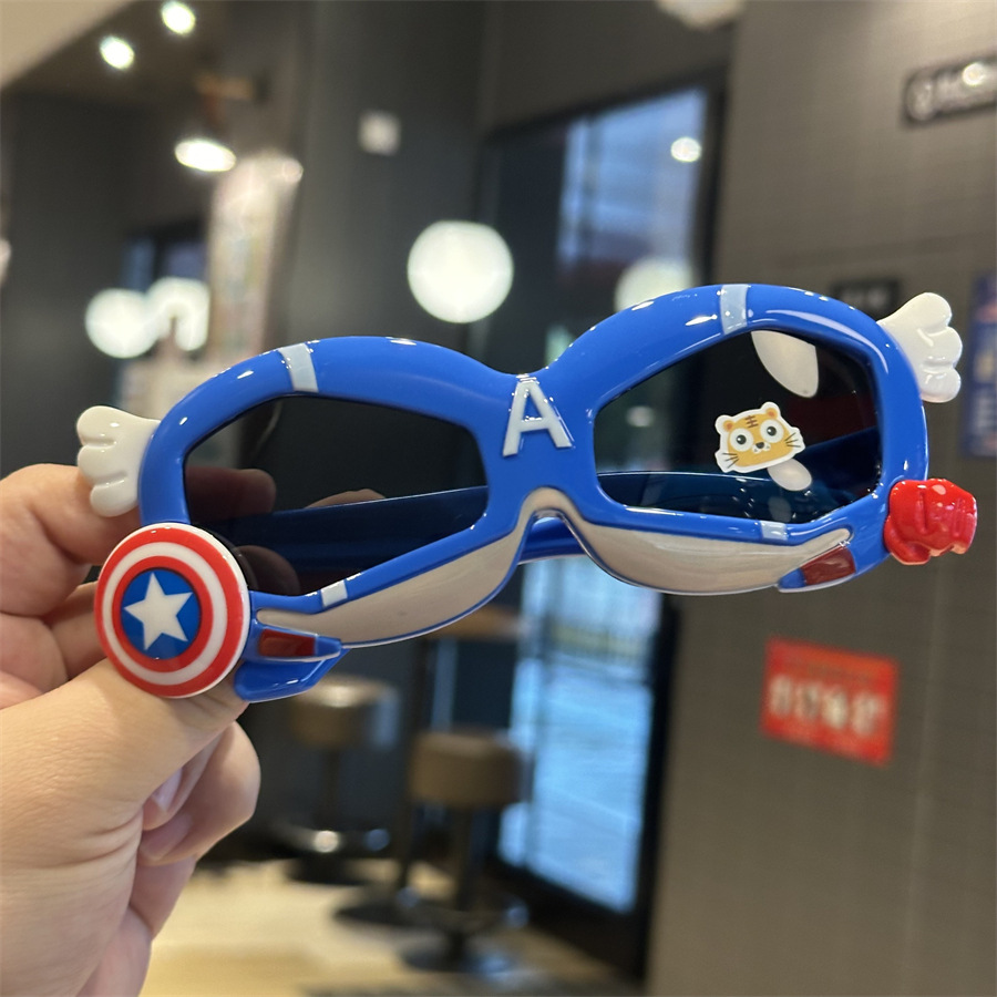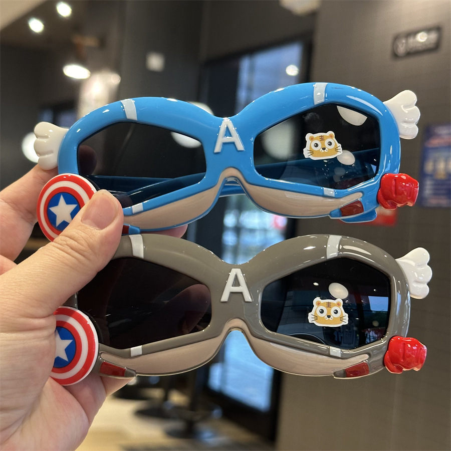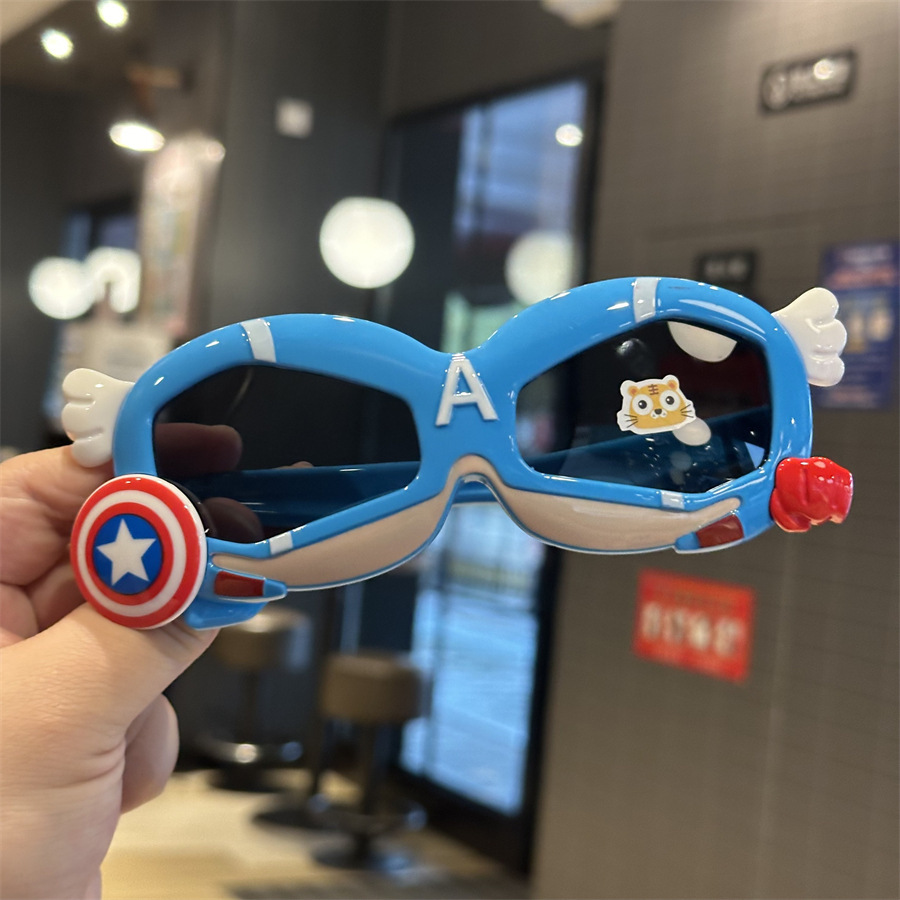 메카 실리콘 어린이 편광 선글라스 캡틴 쉴드 모양 소년 놀이 멋진 차양 선글라스 부드러운 다리 만화 거울스토어 가기