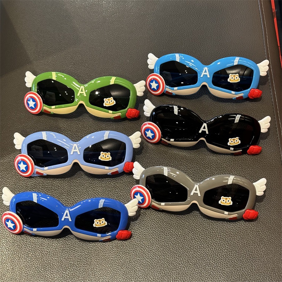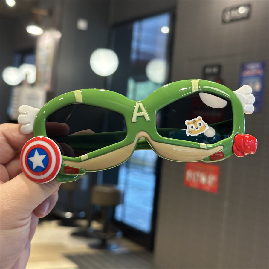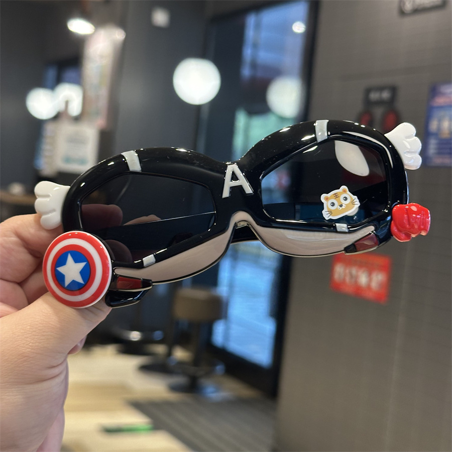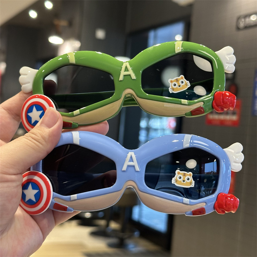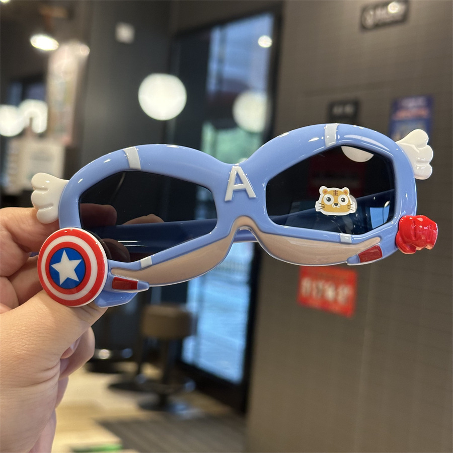 메카 실리콘 어린이 편광 선글라스 캡틴 쉴드 모양 소년 놀이 멋진 차양 선글라스 부드러운 다리 만화 거울스토어 가기