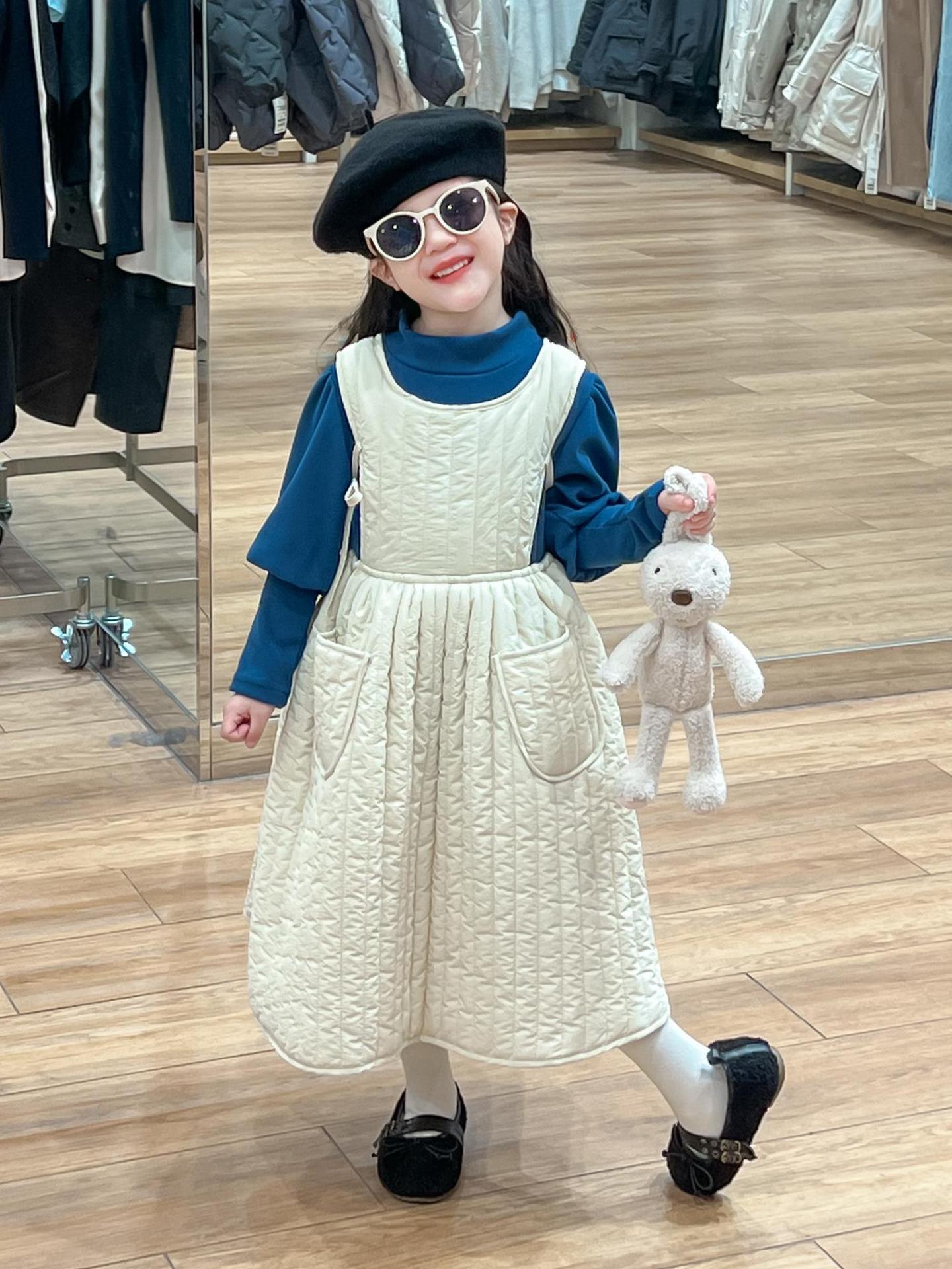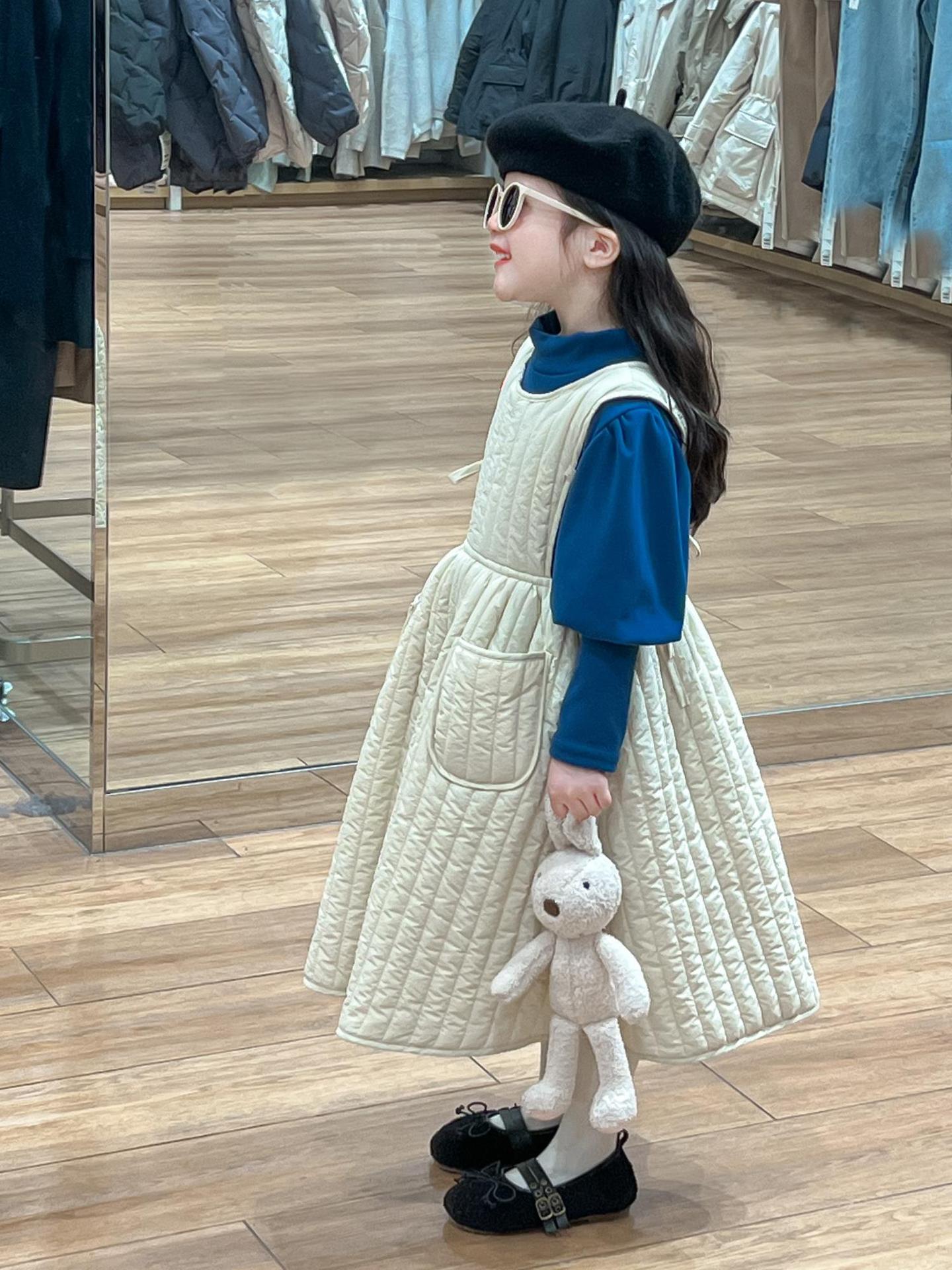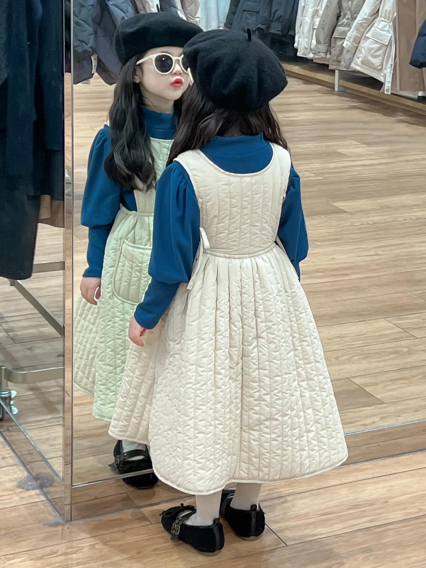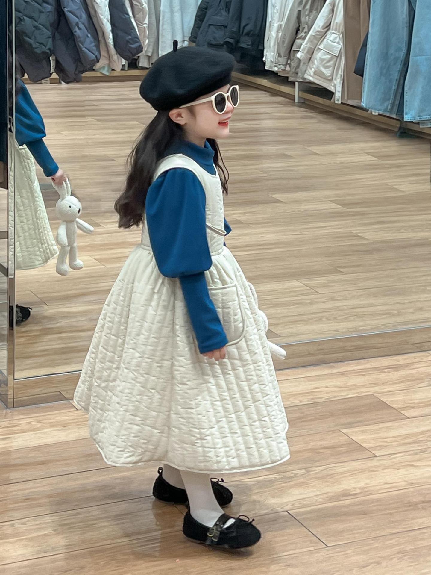 여자 겨울 한국 스타일 긴 두꺼운 퀼트 조끼 원피스 블루 퍼프 소매 높은 목 싱글 비트스토어 가기