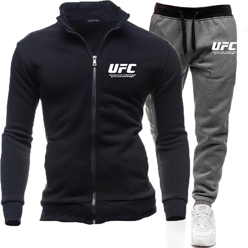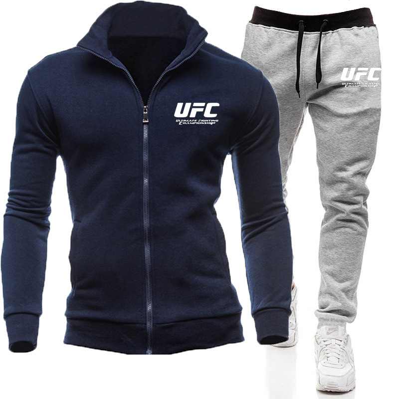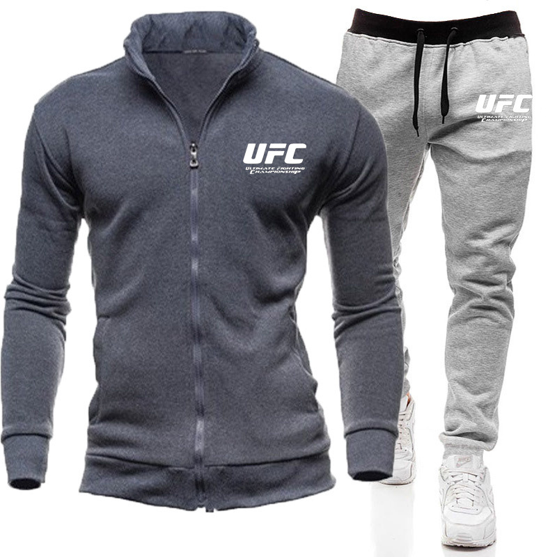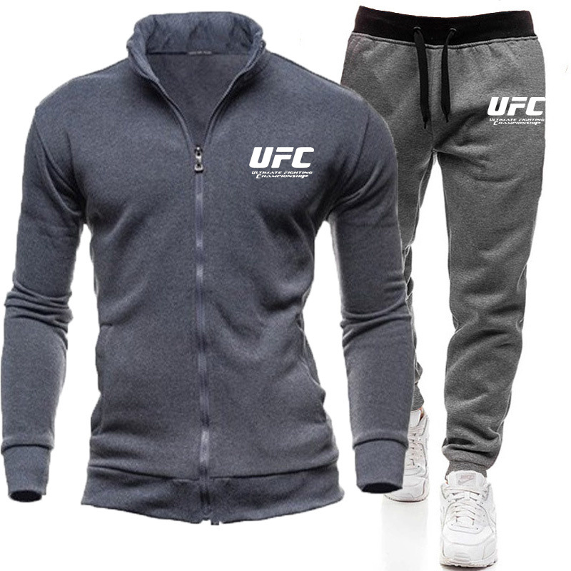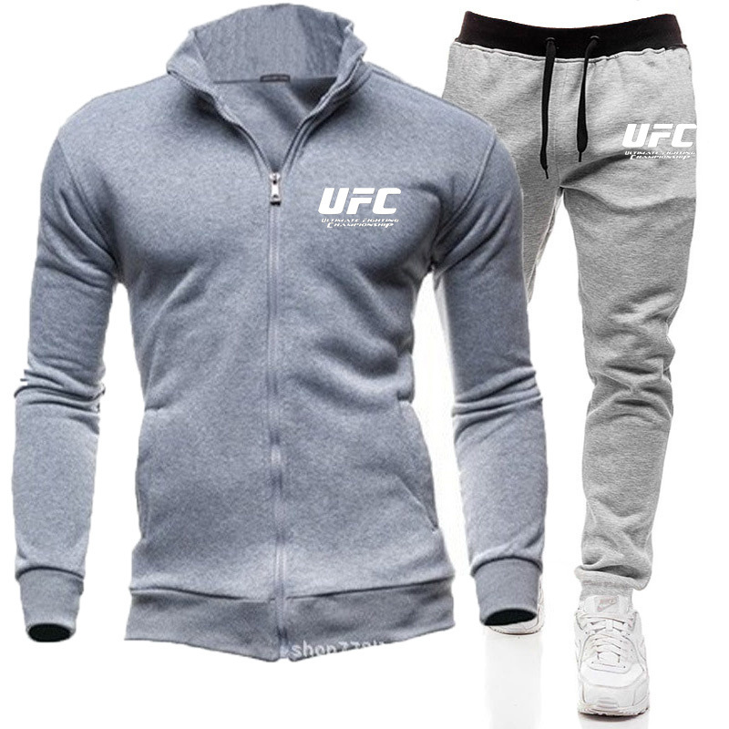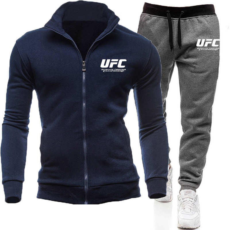 국경 간 새로운 청소년 슬림 핏 지퍼 스탠드 칼라 단색 스웨터 긴팔 스포츠 레저 UFC 인쇄 세트