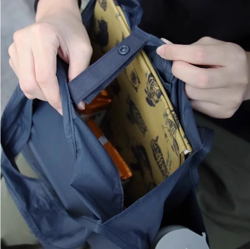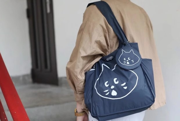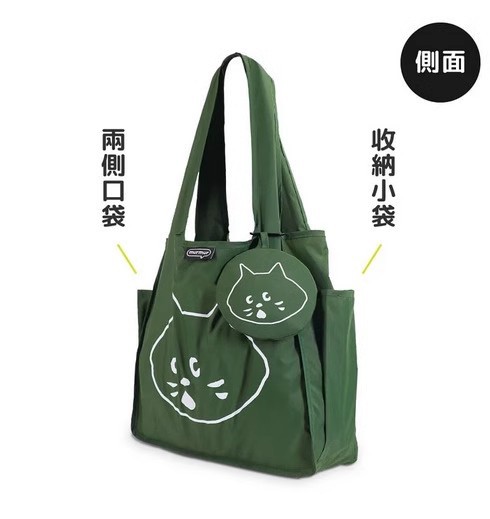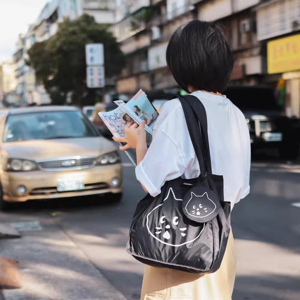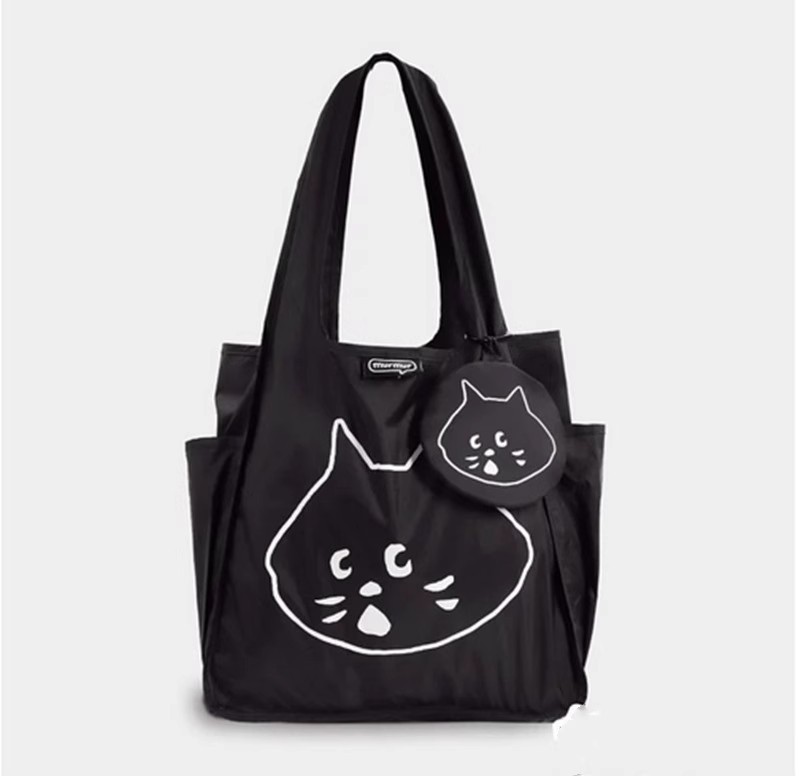 Sundry ne-net Surprise 고양이 귀여운 만화 접이식 대용량 쇼핑백 단일 어깨 변경 어머니 가방 2 피스 세트