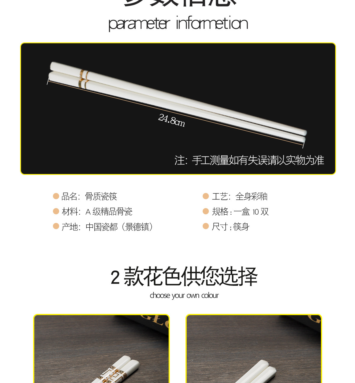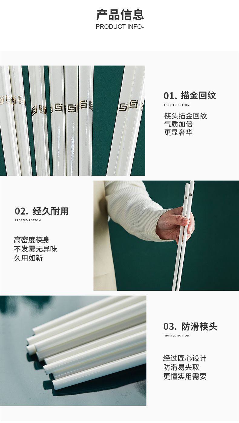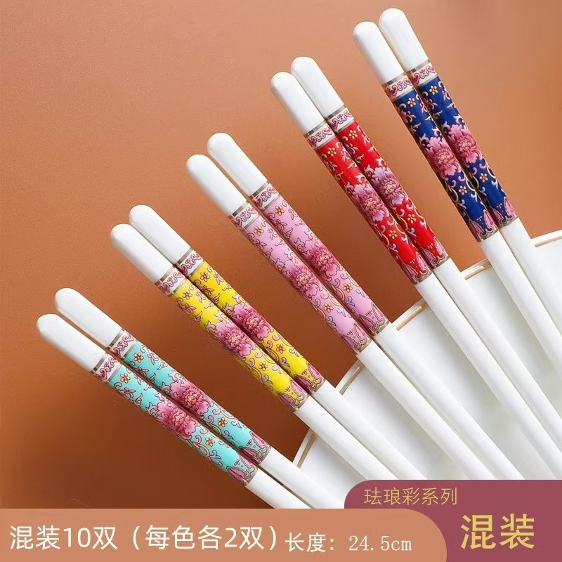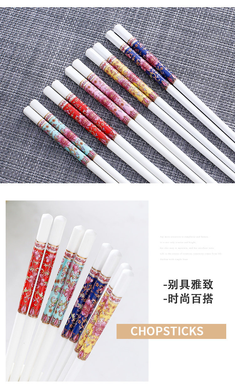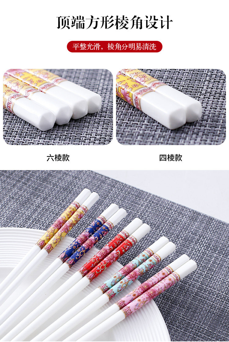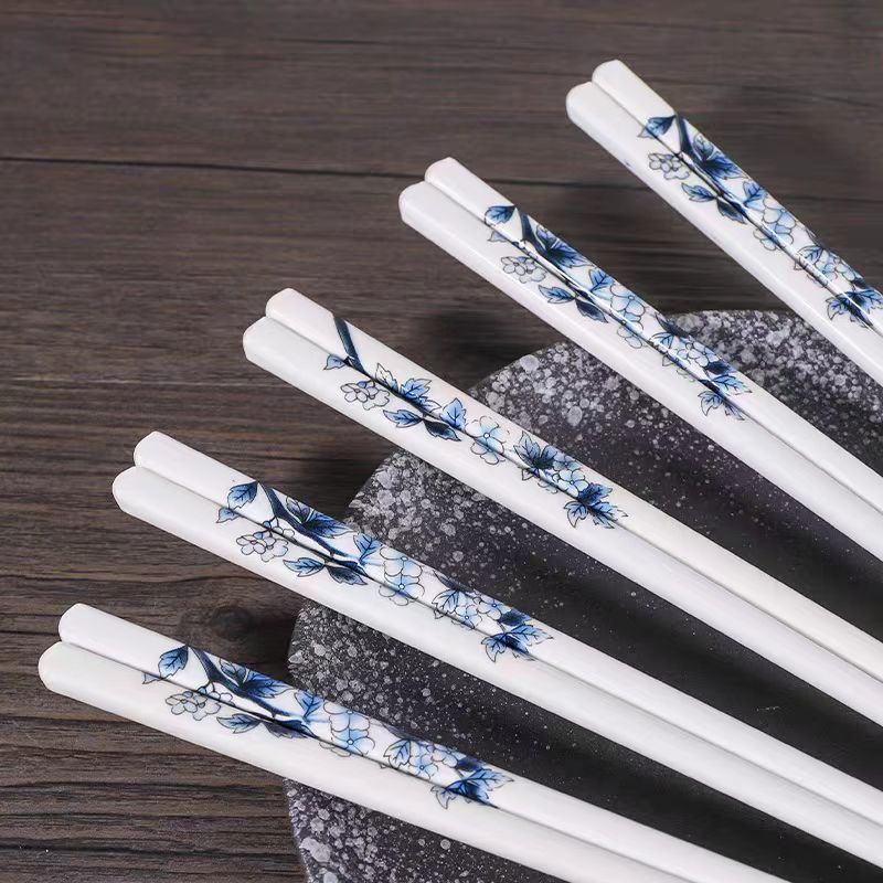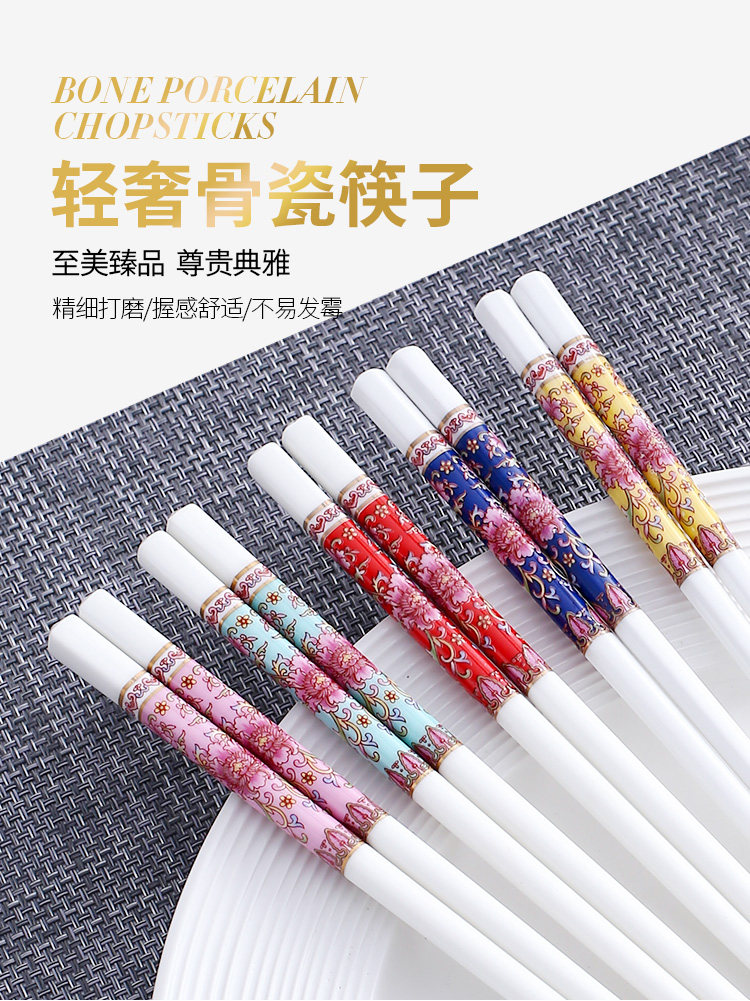 세라믹 뼈 중국 젓가락 항균 곰팡이 방지 미끄럼 방지 Jingdezhen 고급 에나멜 컬러 젓가락 가정용 고온 내성 변형 없음