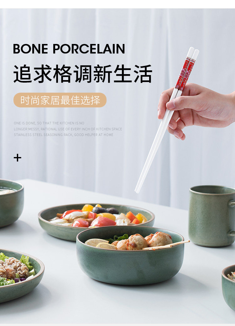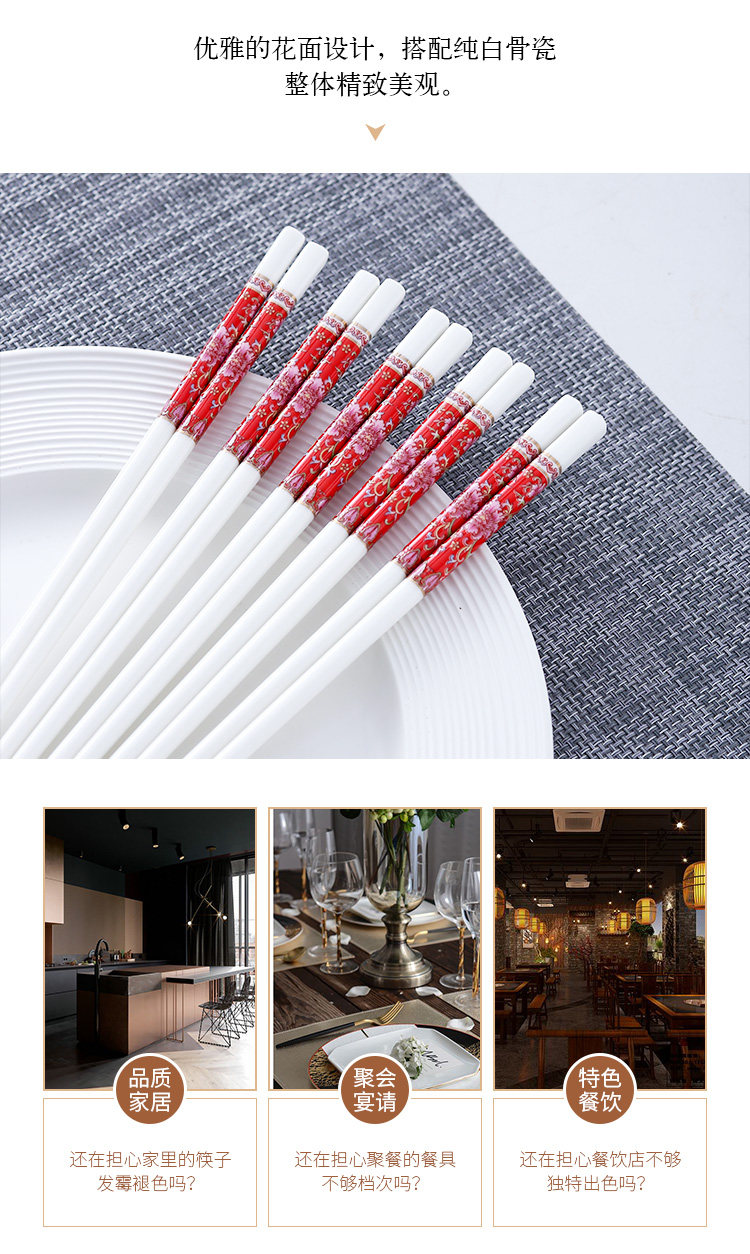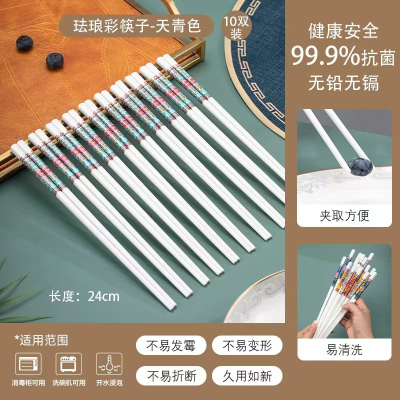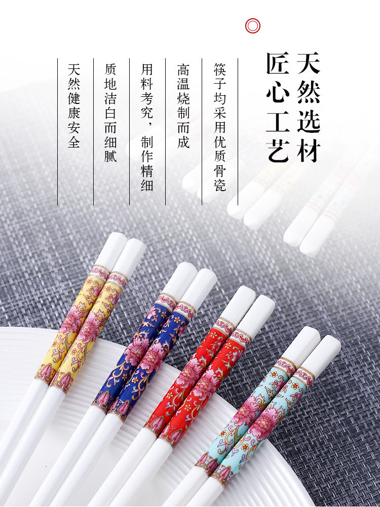세라믹 뼈 중국 젓가락 항균 곰팡이 방지 미끄럼 방지 Jingdezhen 고급 에나멜 컬러 젓가락 가정용 고온 내성 변형 없음스토어 가기