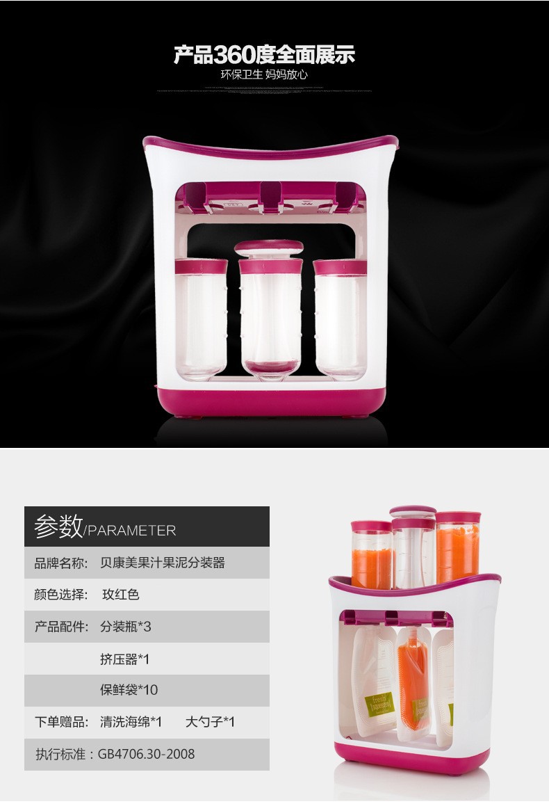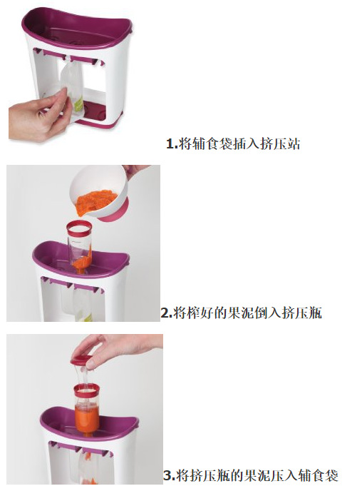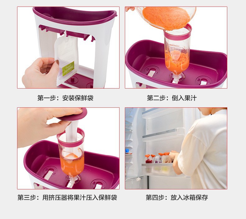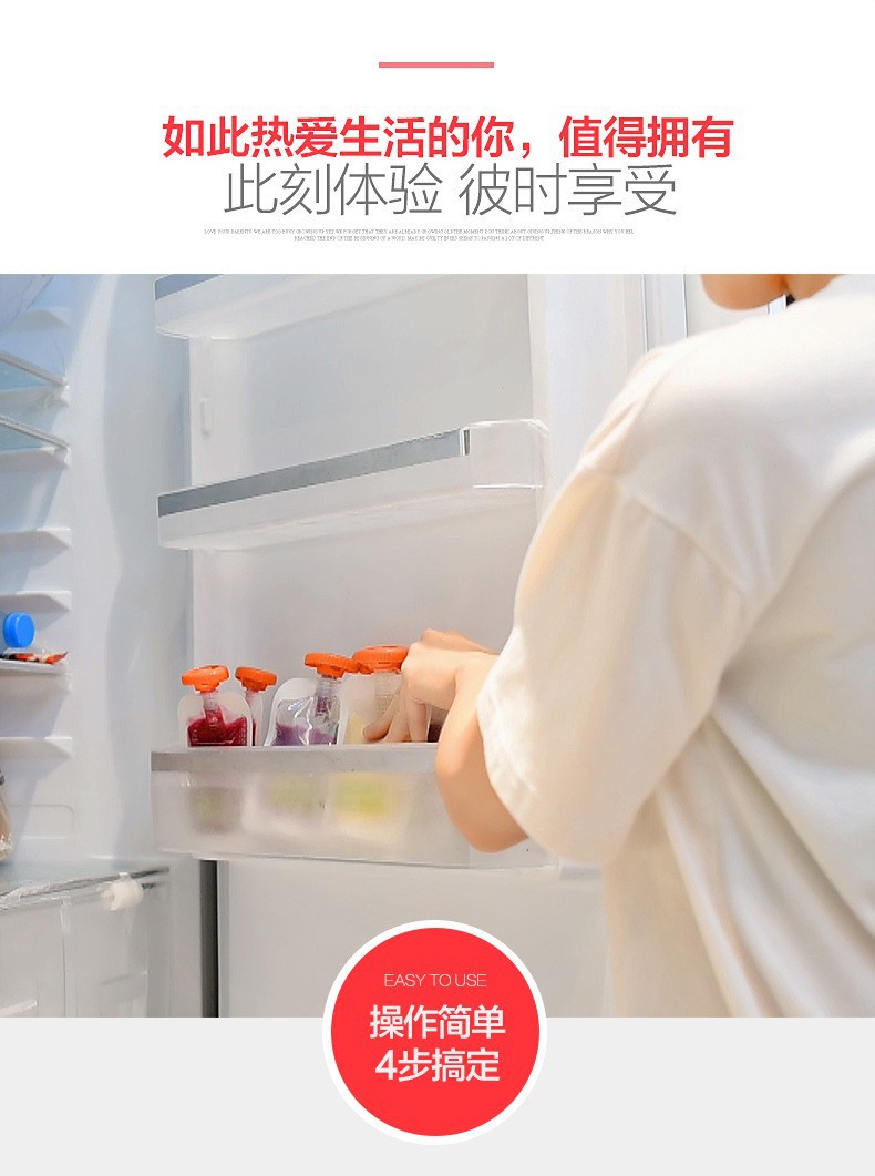 4个简单的步骤即可装好1袋婴儿辅食挤压袋;