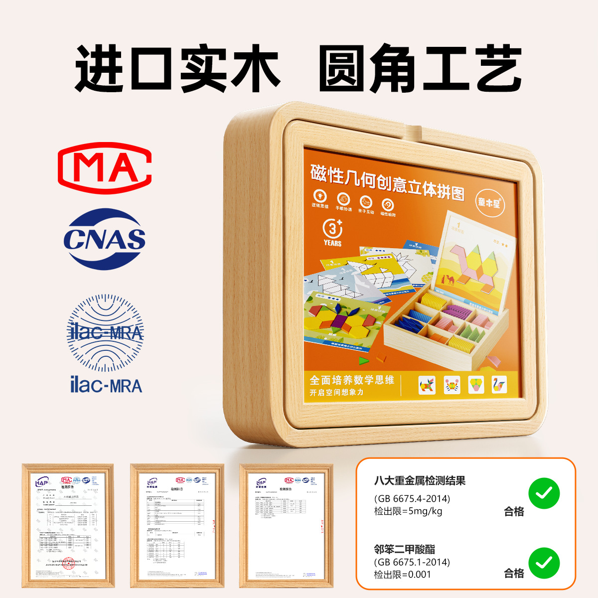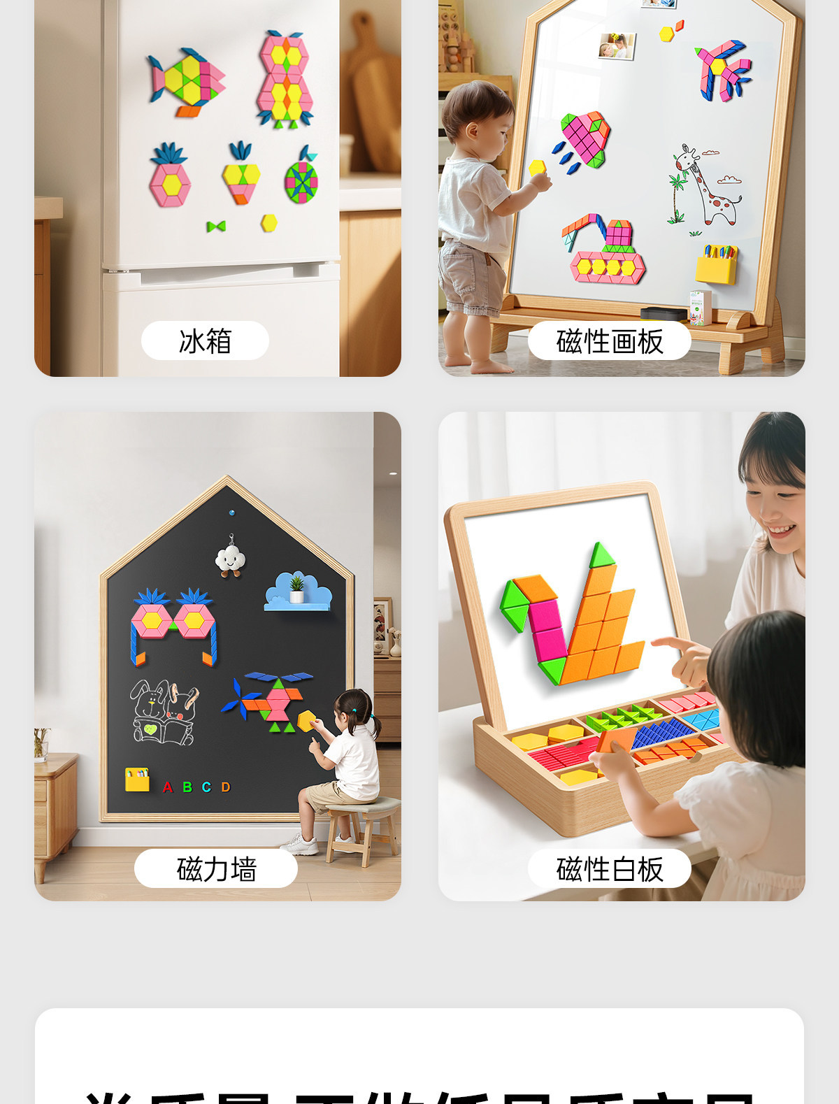 자석 타일 퍼즐 장난감 기하학 자석 블록 유아용 유치원 3~6세 어린이용 나무 교육용 장난감스토어 가기
