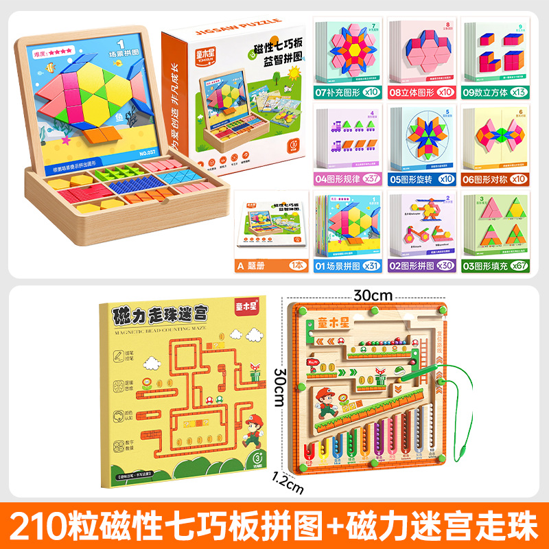 • 자석 칠교놀이 [210개] + 자석 미로구슬 [분류장난감]