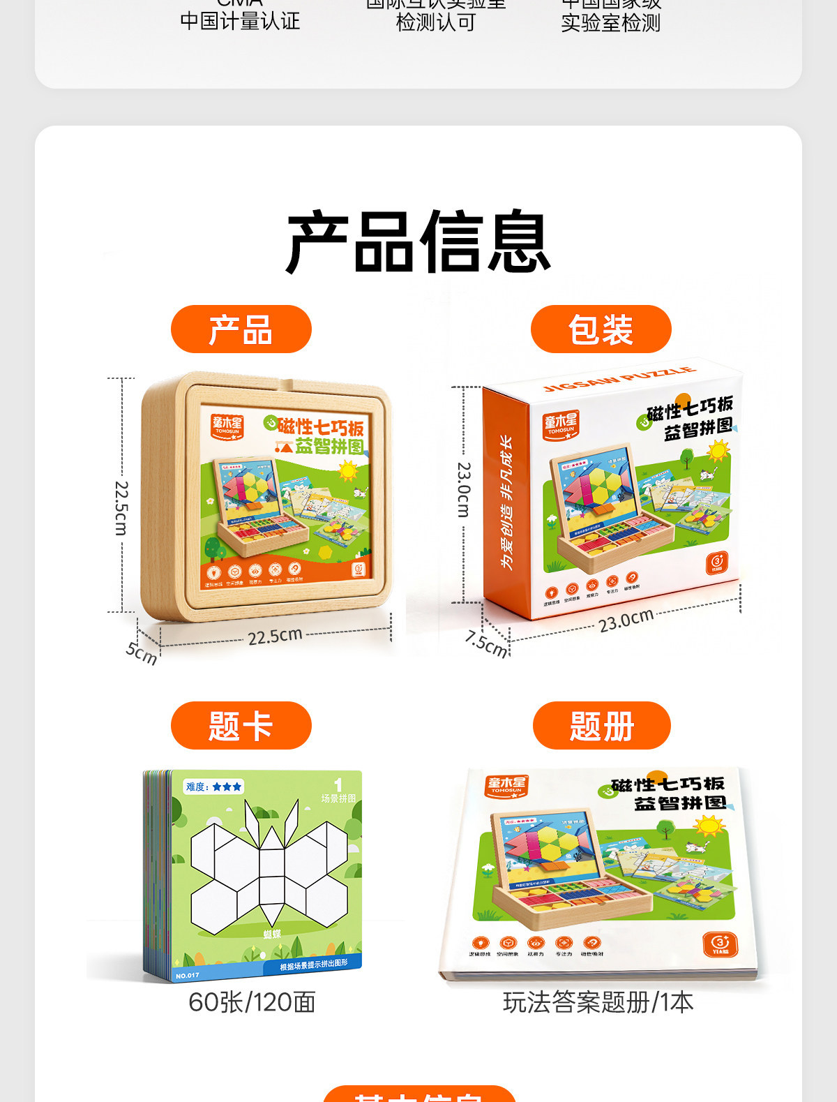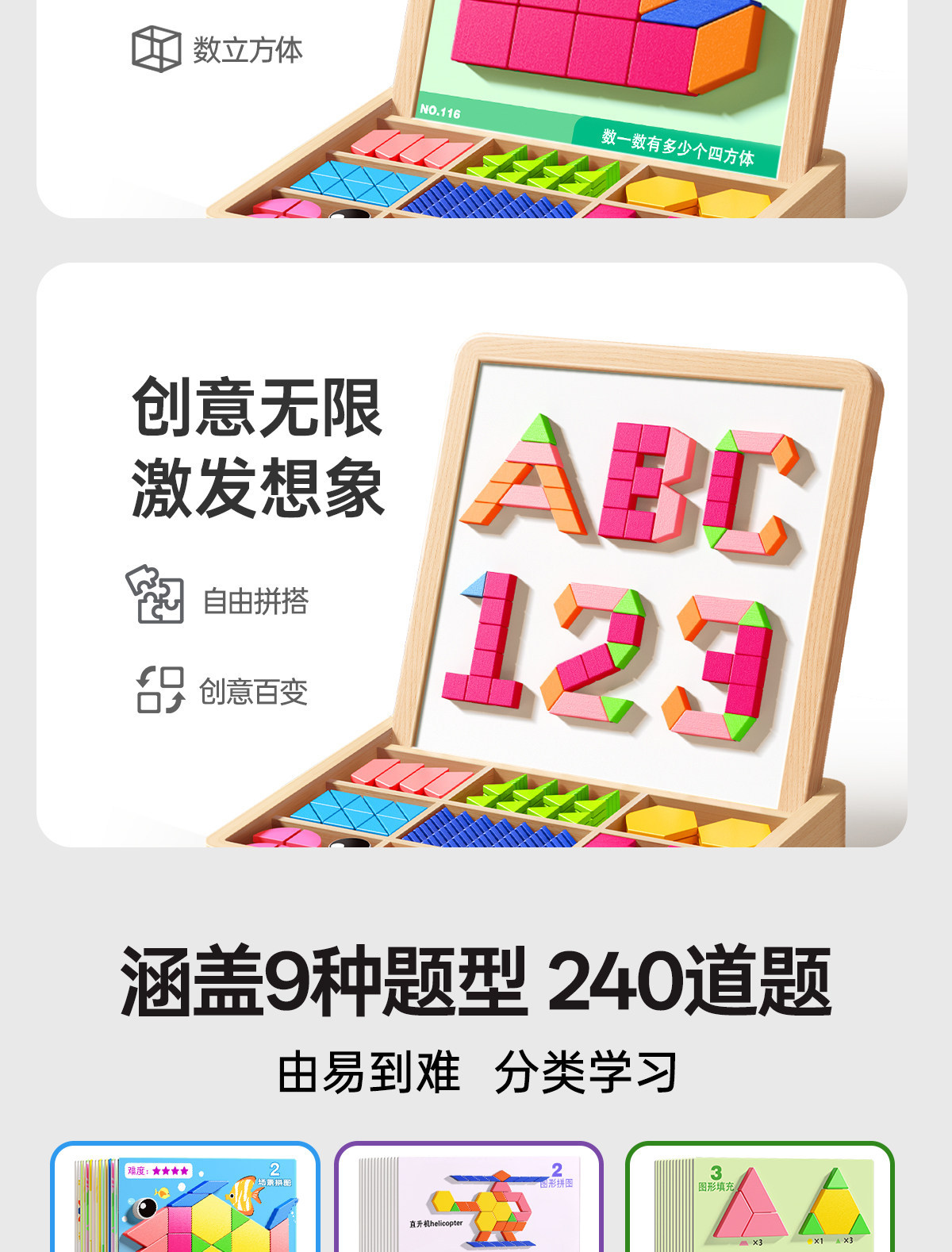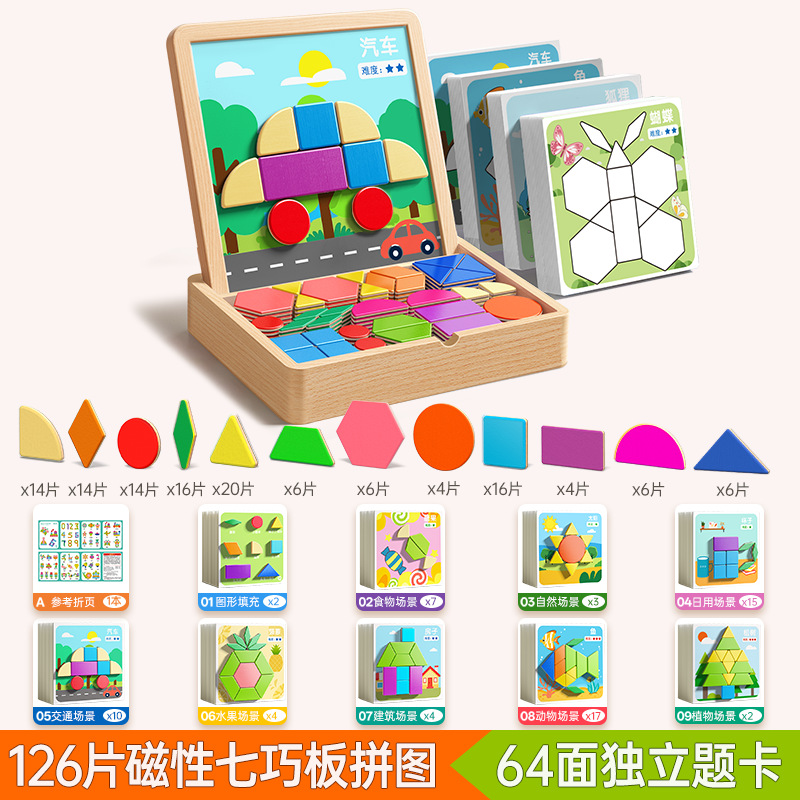 • 【선물 세트】 자석 칠교놀이 퍼즐 【228조각, 6500개 이상의 도형 조립 가능 + 120페이지 문제 카드 + 조립 문제집】