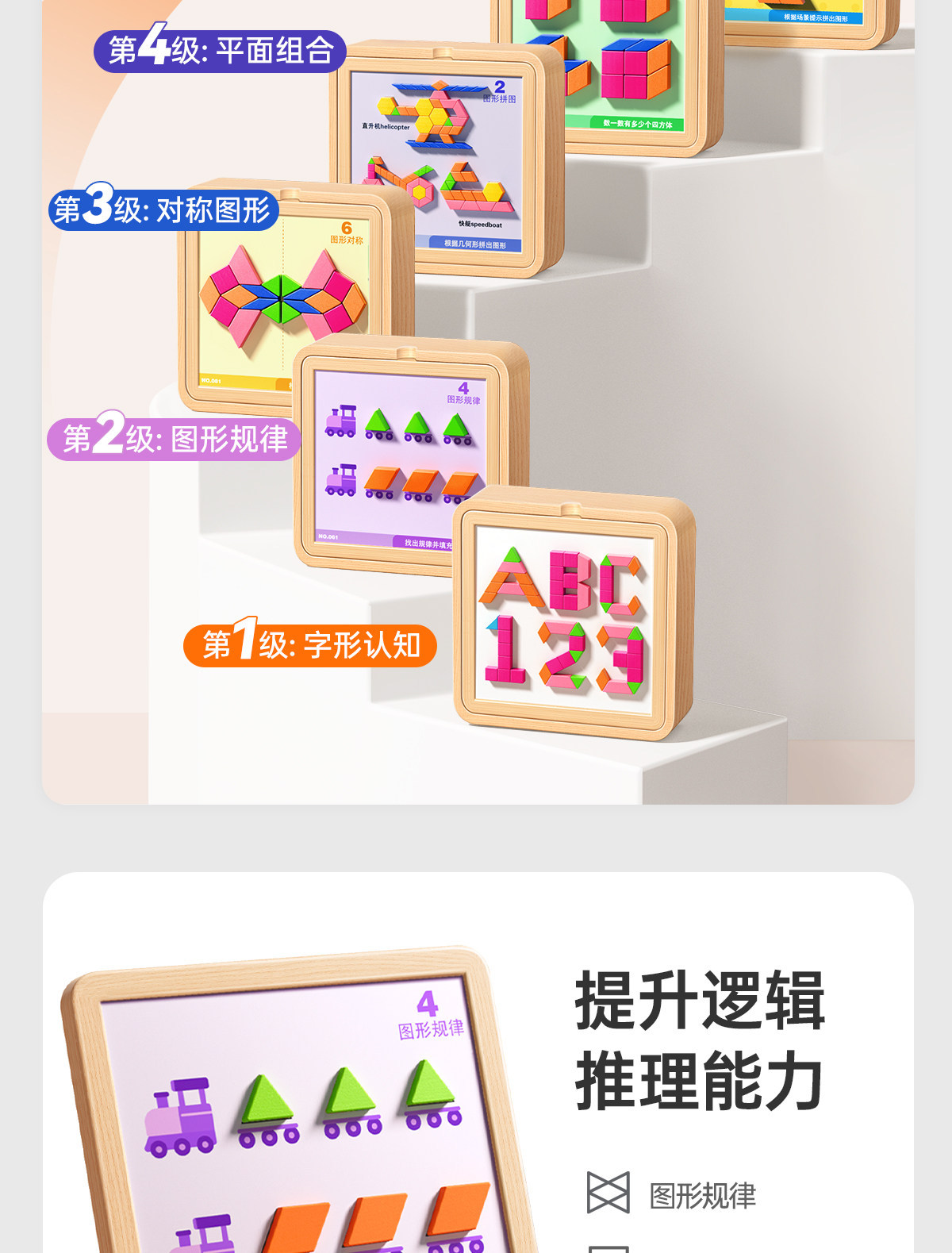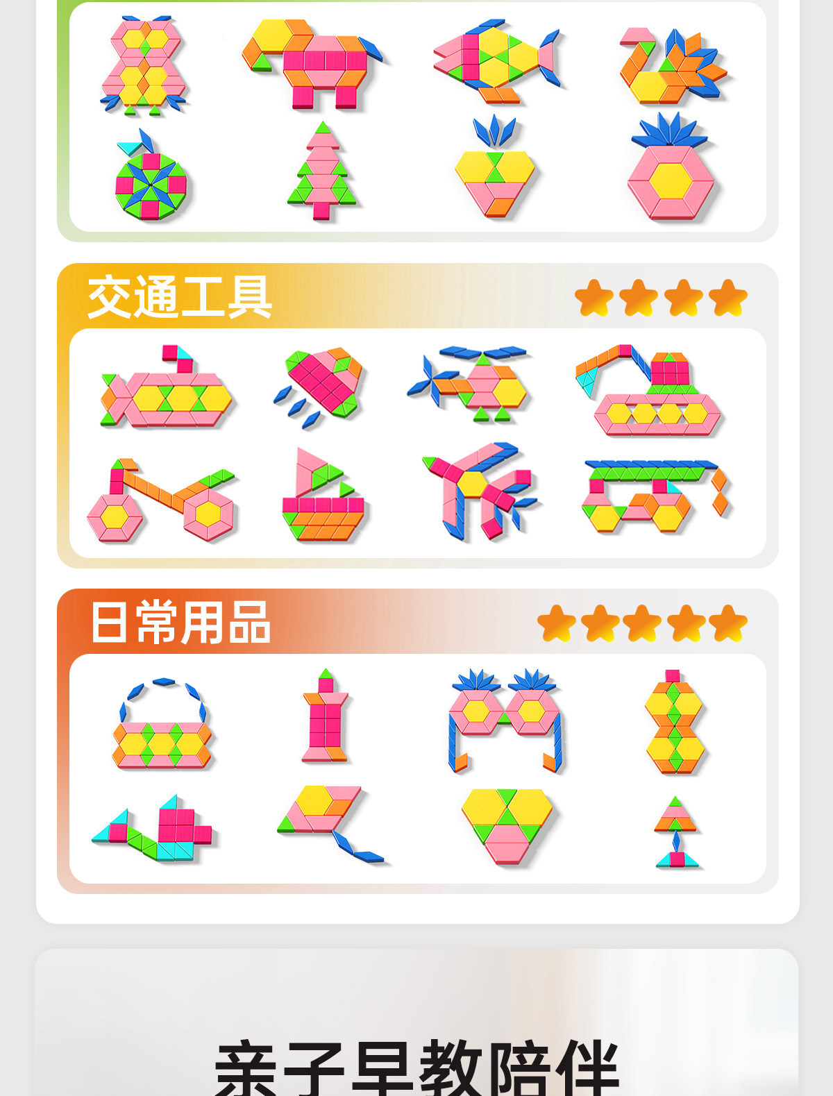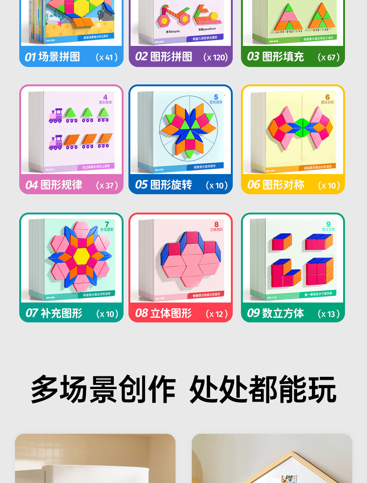 • 【선물 세트】 자석 칠교놀이 퍼즐 【228조각, 6500개 이상의 도형 조립 가능 + 120페이지 문제 카드 + 조립 문제집】