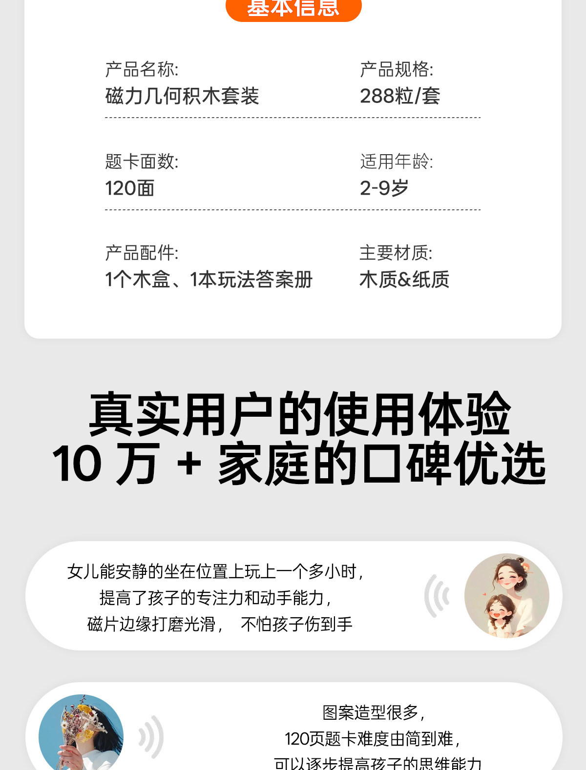 • 【선물 세트 + 선물 가방 포장】 자석 칠교놀이 퍼즐 【288조각, 8000개 이상의 도형 조립 가능 + 120페이지 문제 카드 + 조립 문제집】