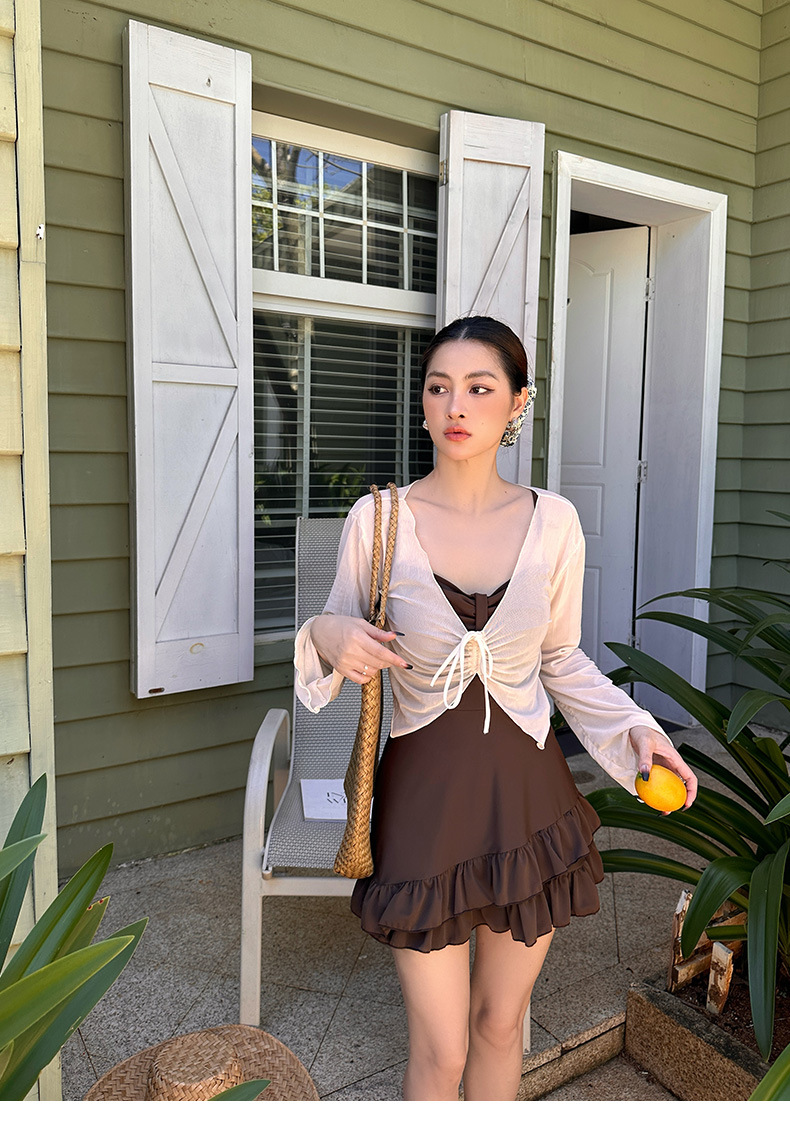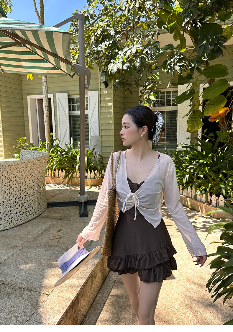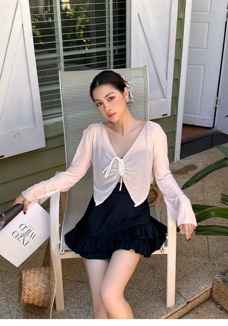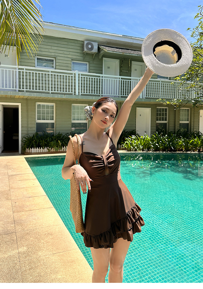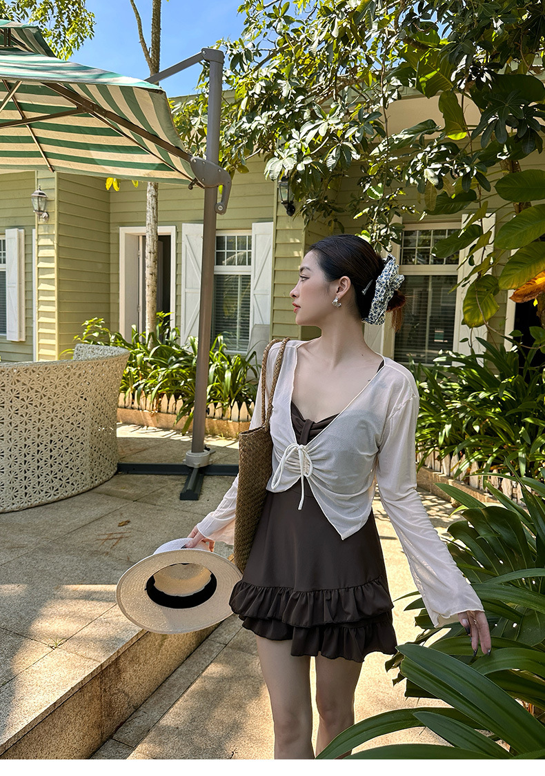 여성용 원피스 블라우스 수영복 2025 새로운 배꼽 덮인 날씬한 보수적 인 약간 뚱뚱한 소녀 고기 덮인 온천 수영복스토어 가기