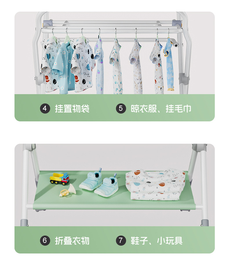 • 더블 레이어 장난감 모델 - 녹색 [⭐업그레이드된 프레임] + 2단 수납바구니 + 빨래건조대 + 수납바구니 + 5단 조절 + 사일런트 유니버설 휠 + 장난감(선물 패키지)
