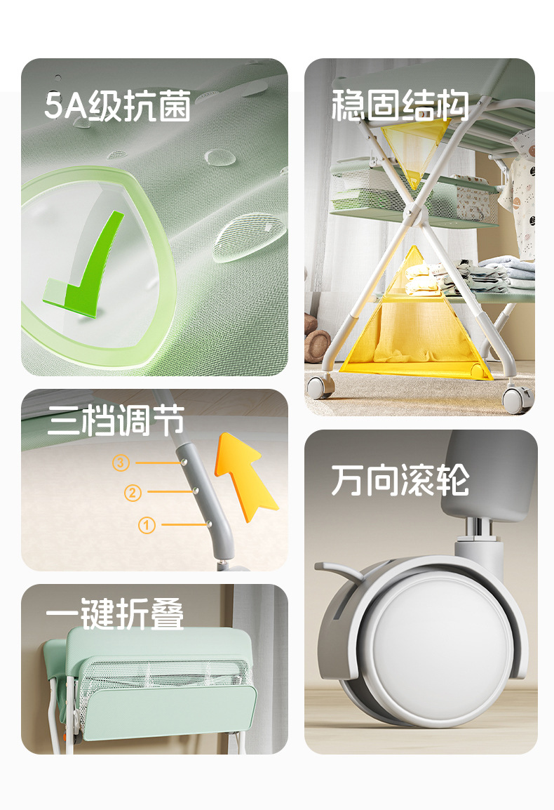 • 더블 레이어 모델 - 녹색 [ ⭐ 업그레이드된 프레임] + 수납바구니 + 빨래건조대 + 수납바구니 + 5단 조절 + 사일런트 유니버셜 휠 + 장난감(선물 패키지)