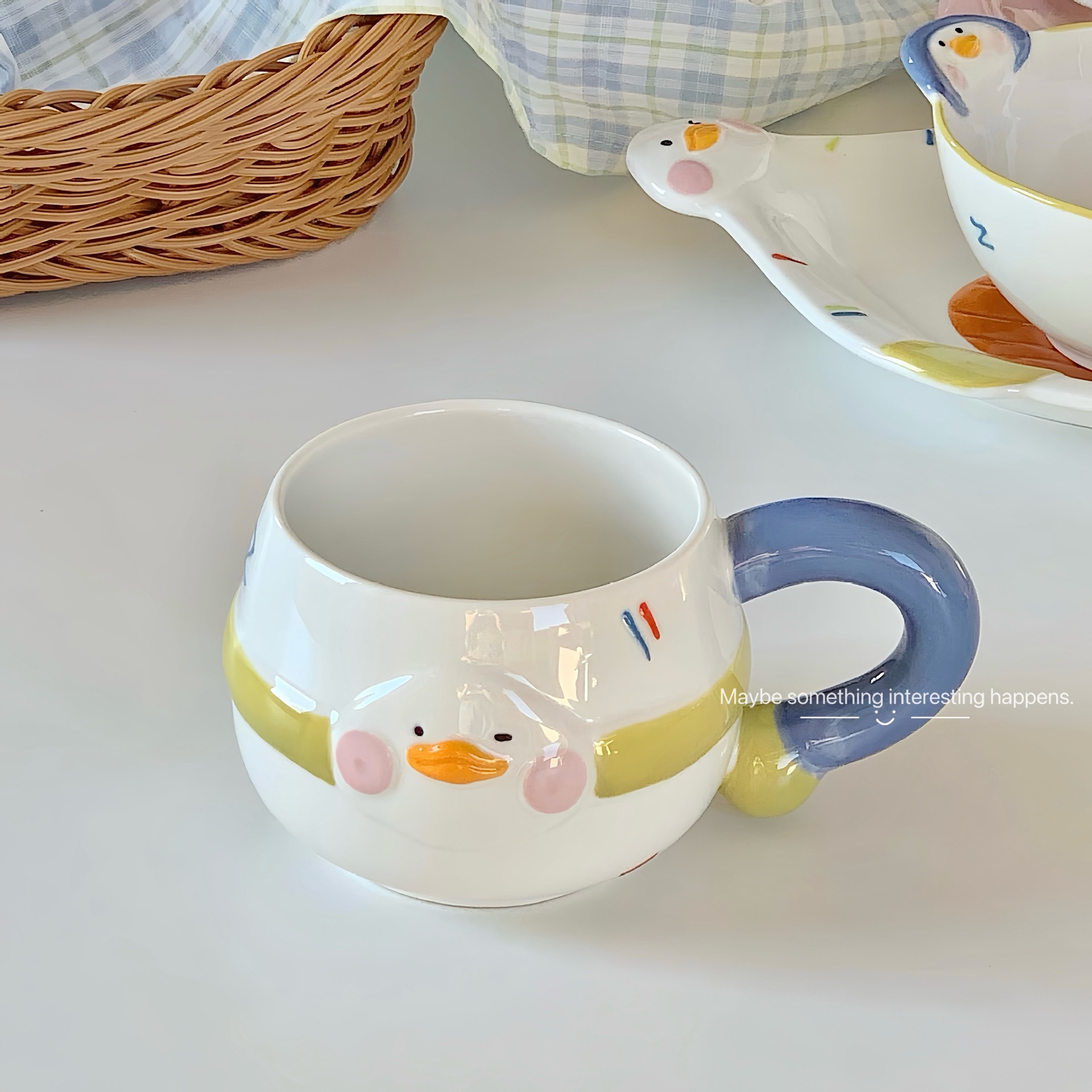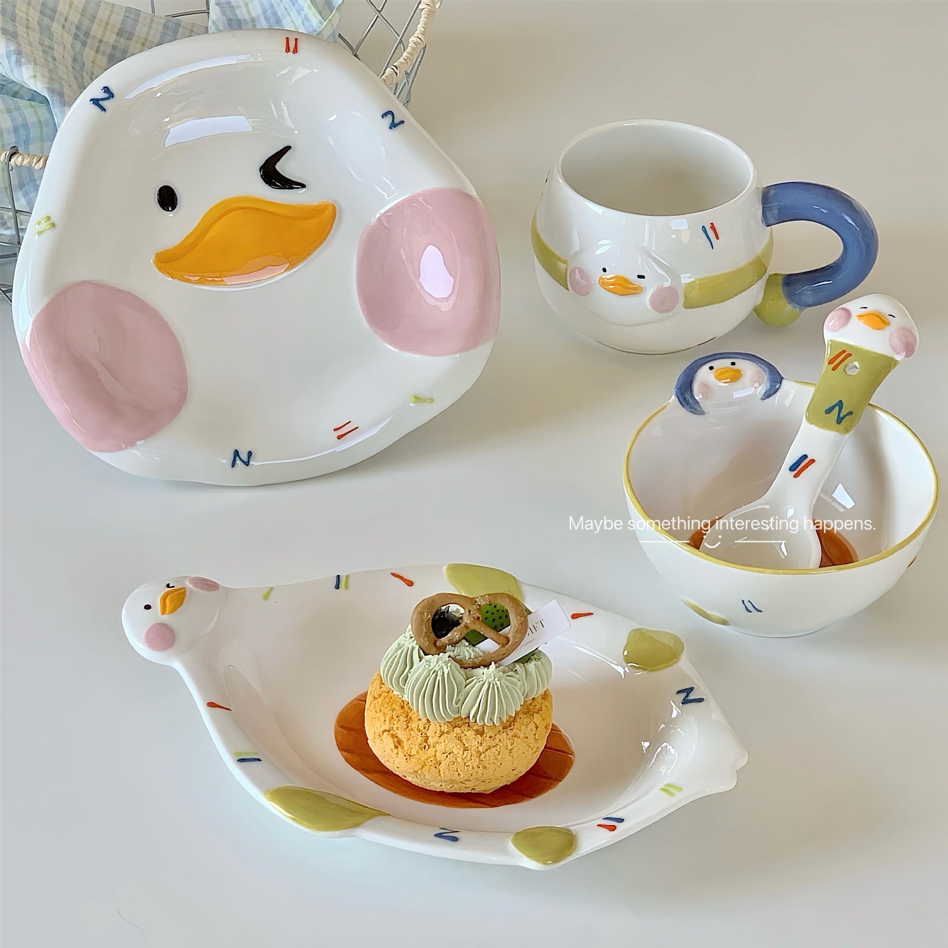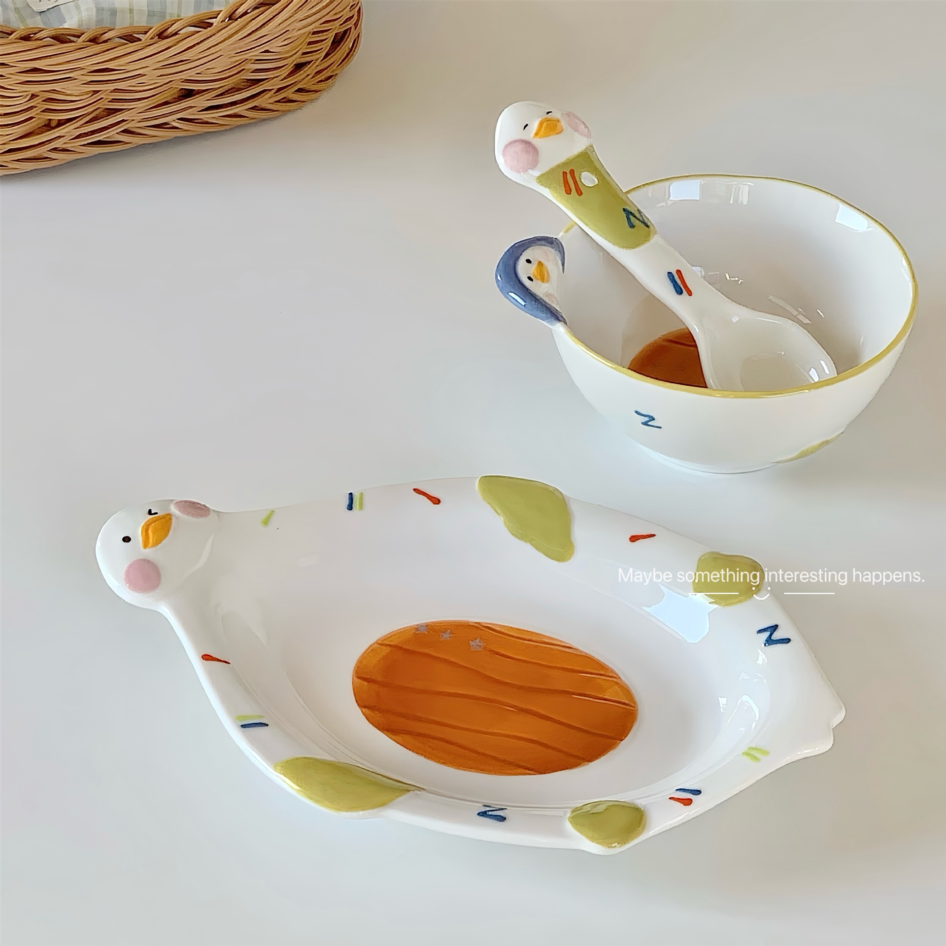 인터넷 유명 인사 귀여운 거짓말 플랫 오리 식기 세트 가정용 세라믹 밥 그릇 스타일 높은 뷰티 가치 수프 그릇 요구르트 그릇스토어 가기
