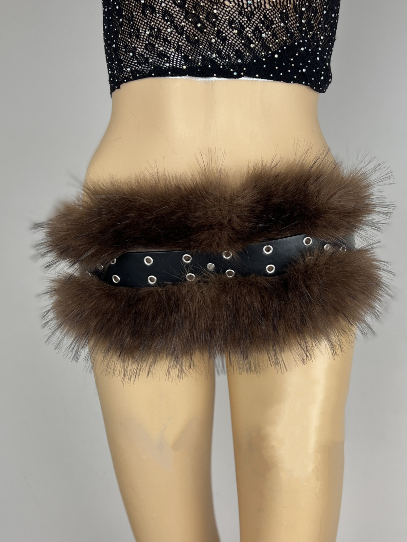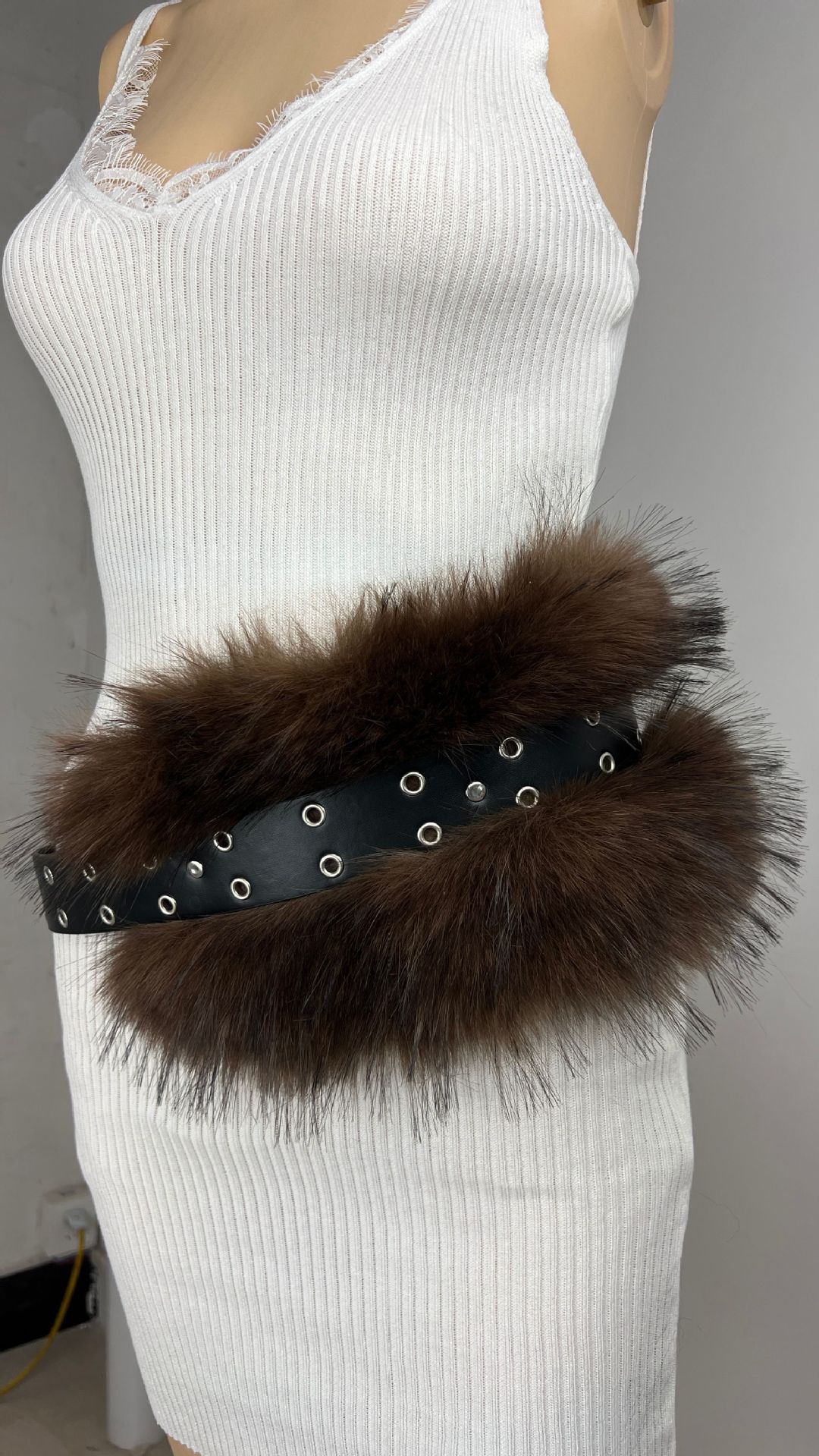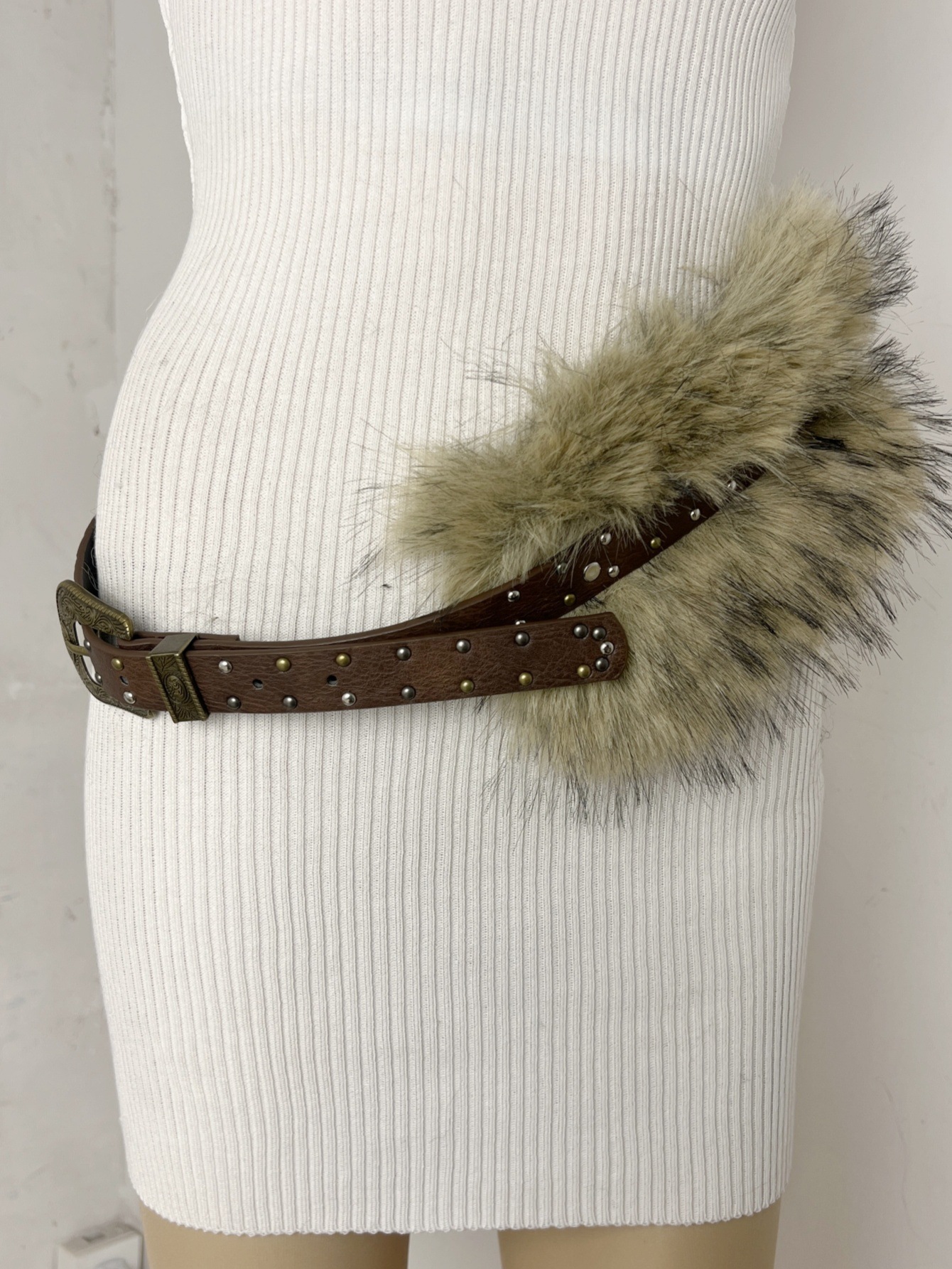 • 인조 모피 브라운 모피 블랙 팁 벨트