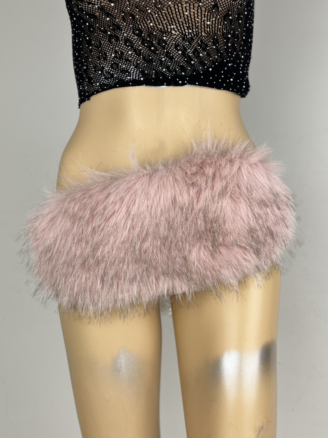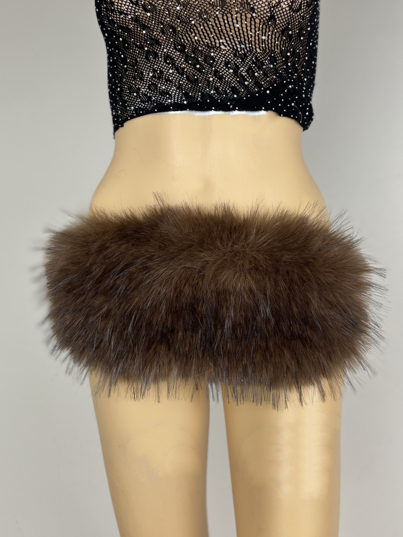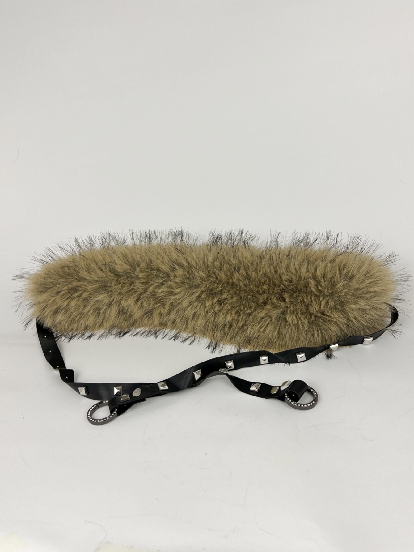• 인조 모피 브라운 모피 블랙 팁 벨트