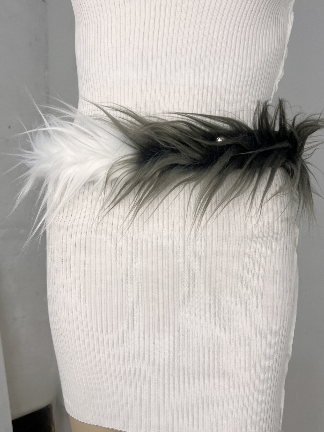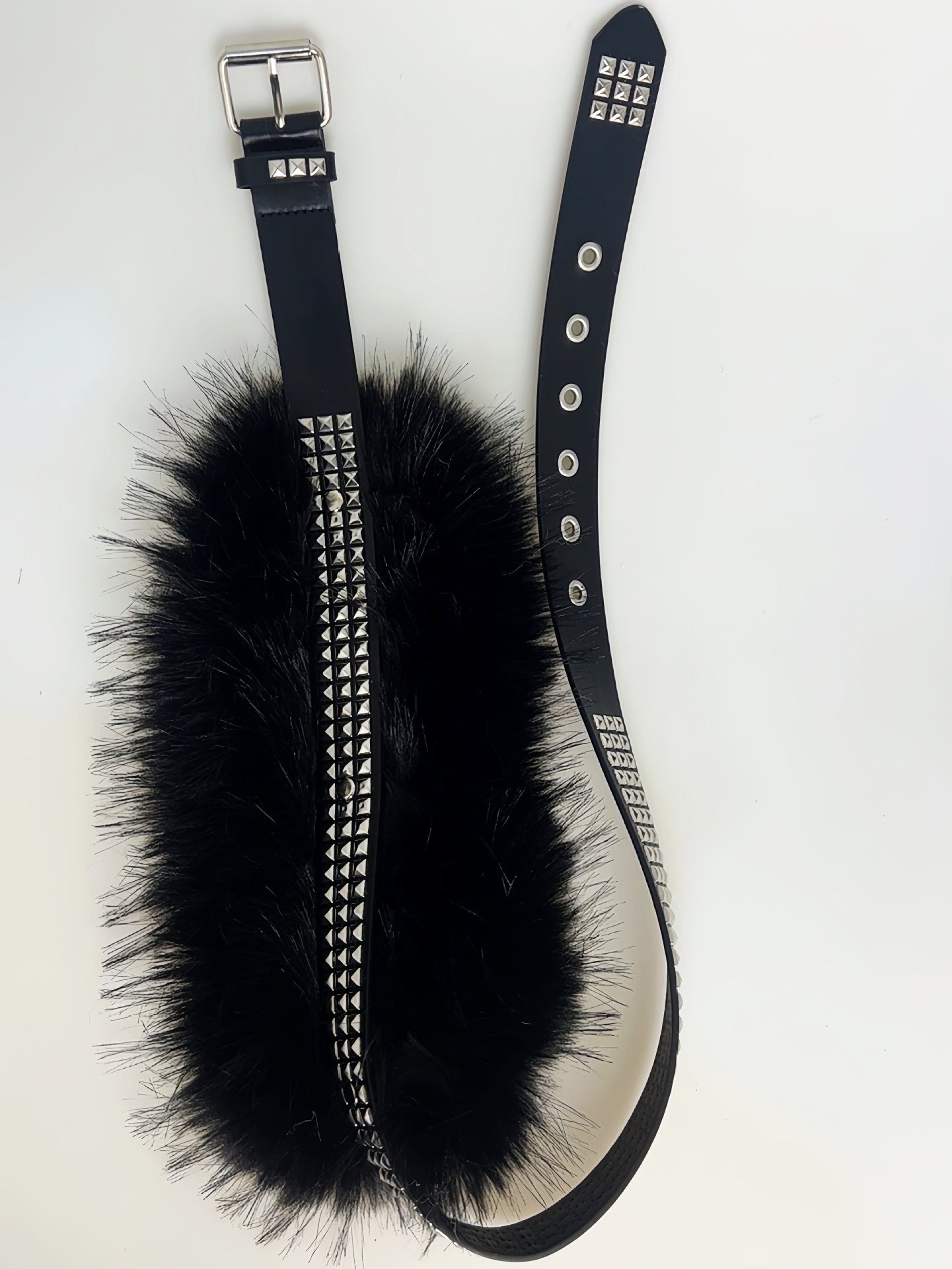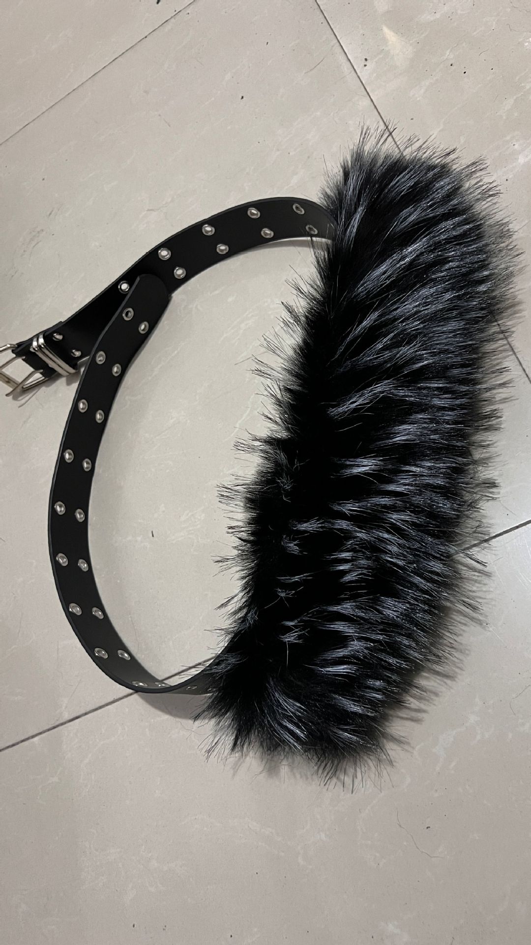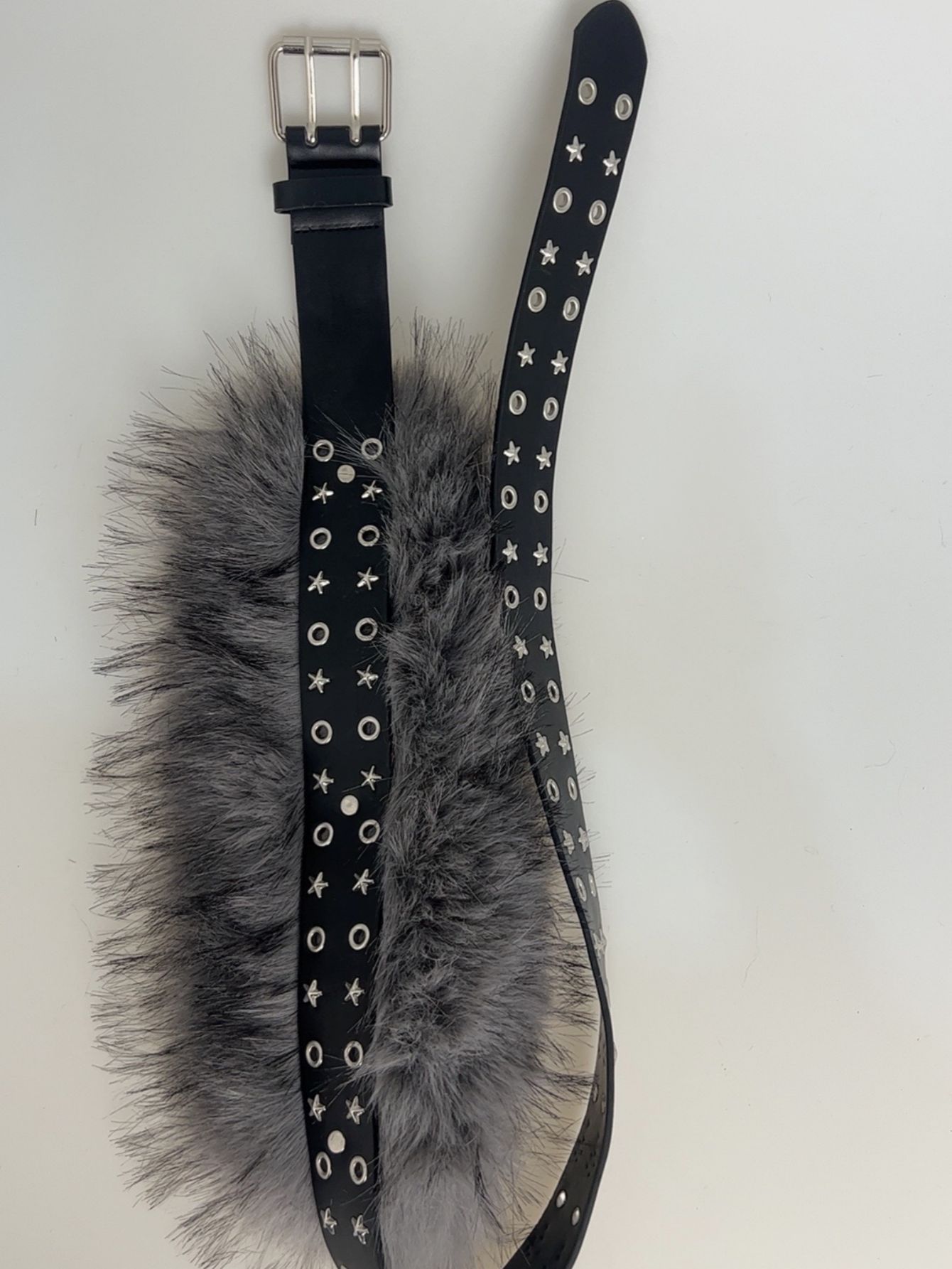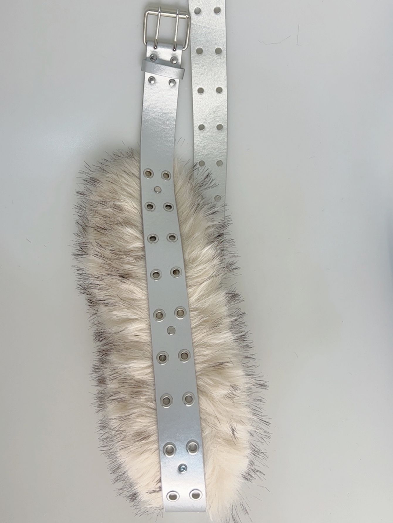 • 인조 모피 오프 화이트 블랙 뾰족한 모피 벨트