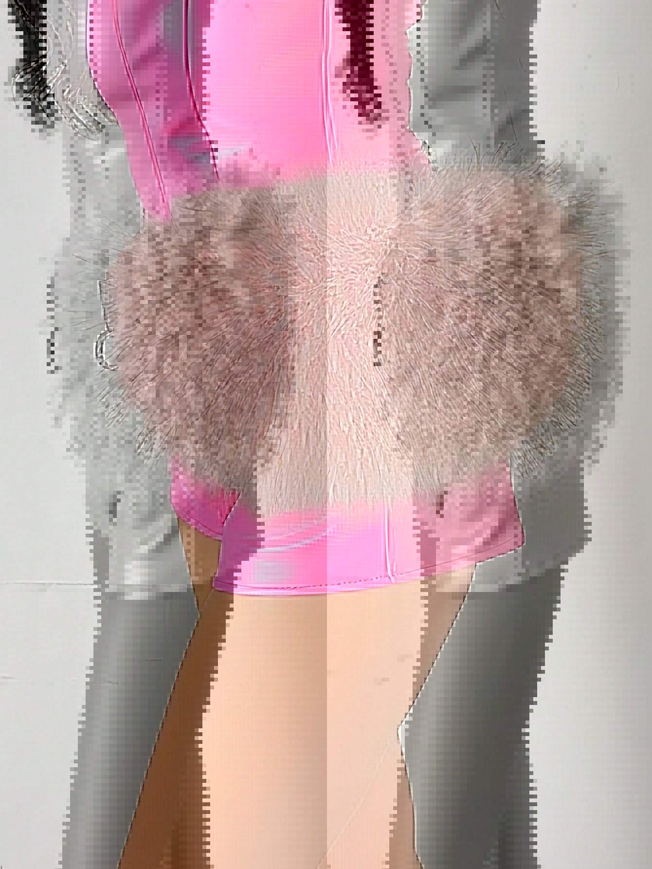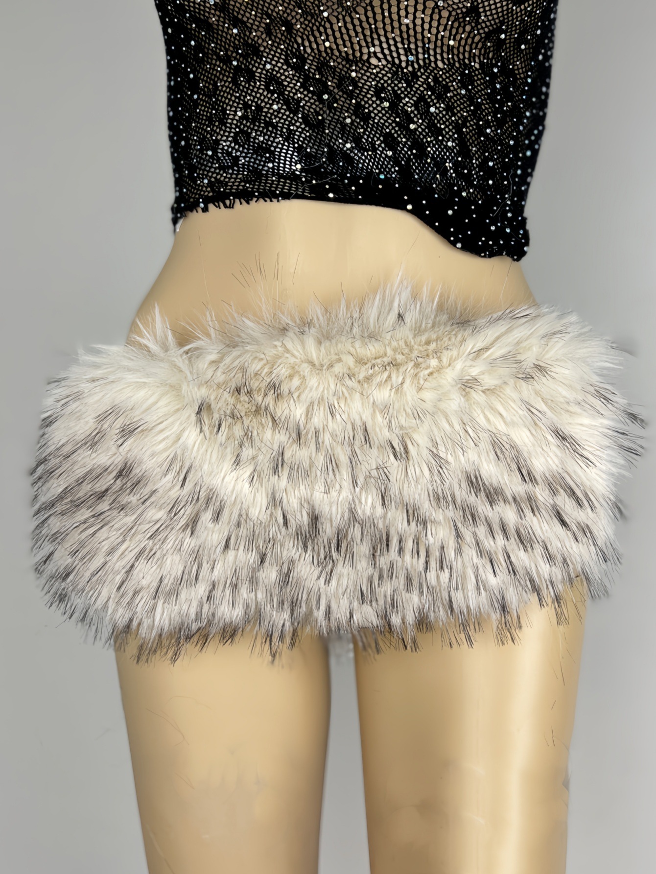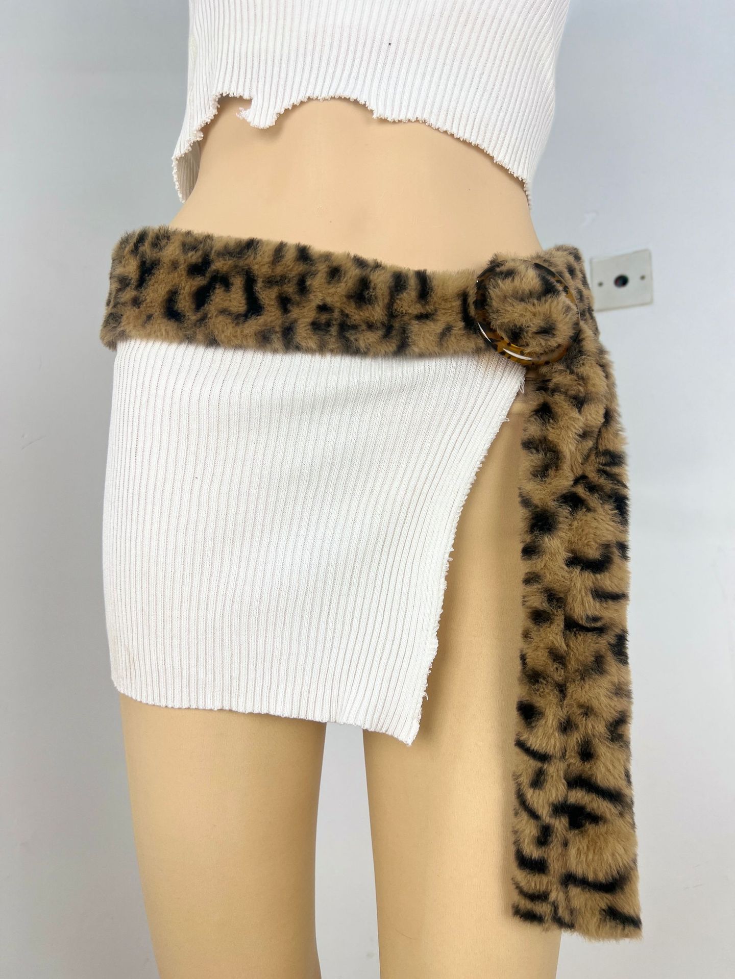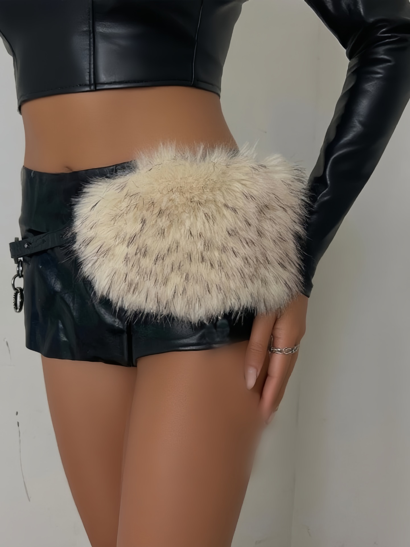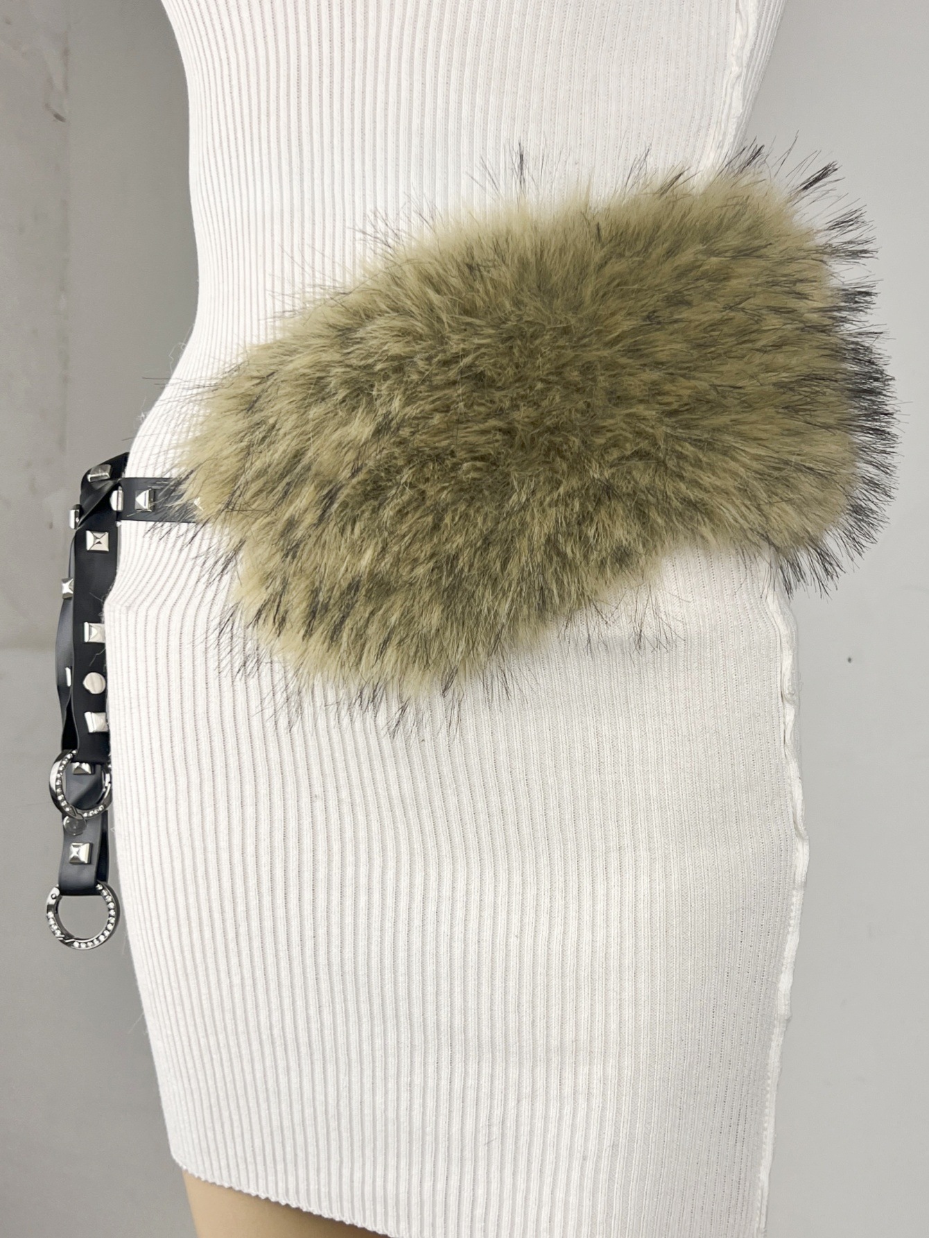 • 인조 모피 오프 화이트 블랙 뾰족한 모피 벨트