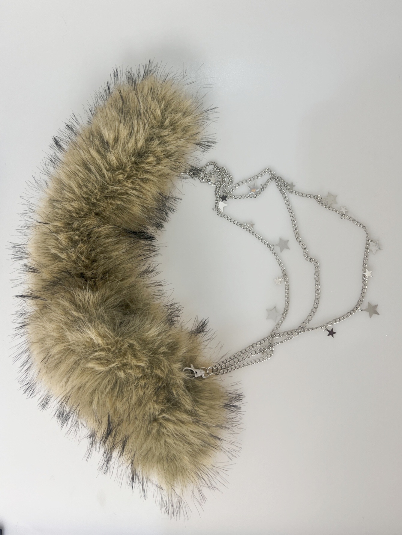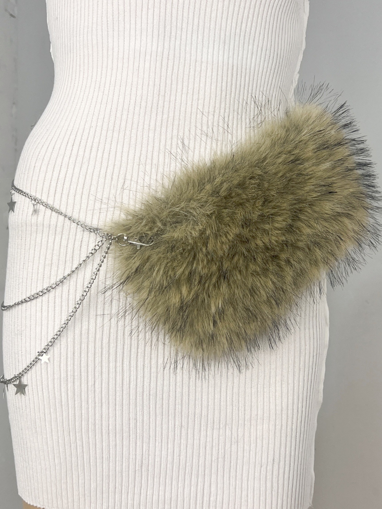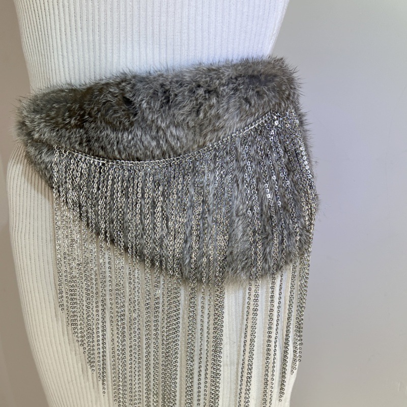 • 회색과 흰색 그라데이션 모피 허리 체인 라인스톤 버클
