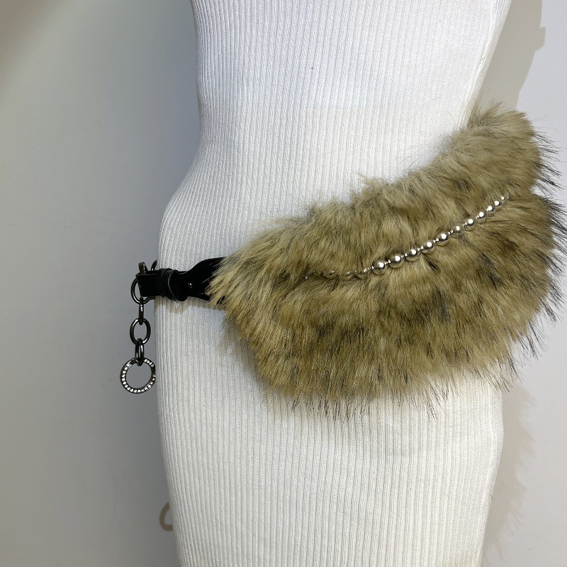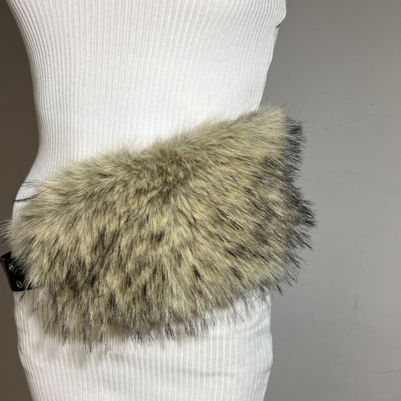 • 인조 모피 브라운 모피 블랙 포인티드 아이 벨트